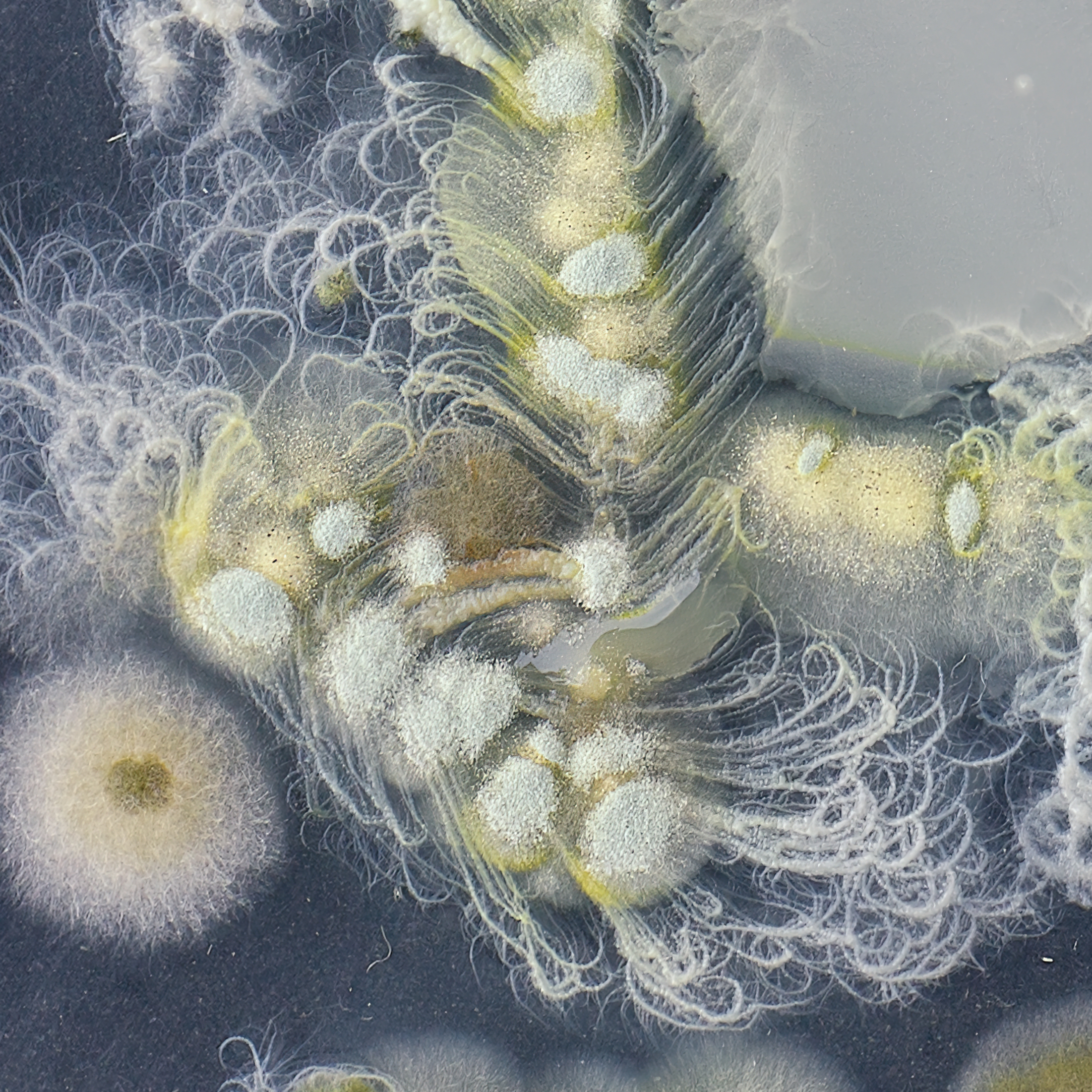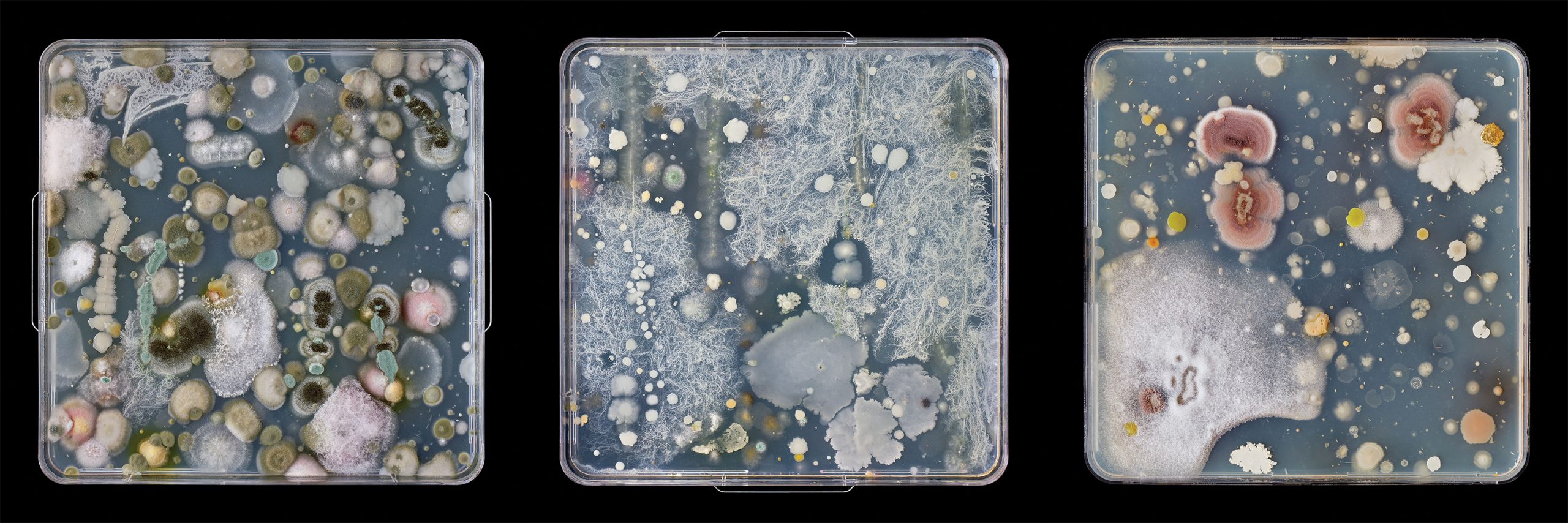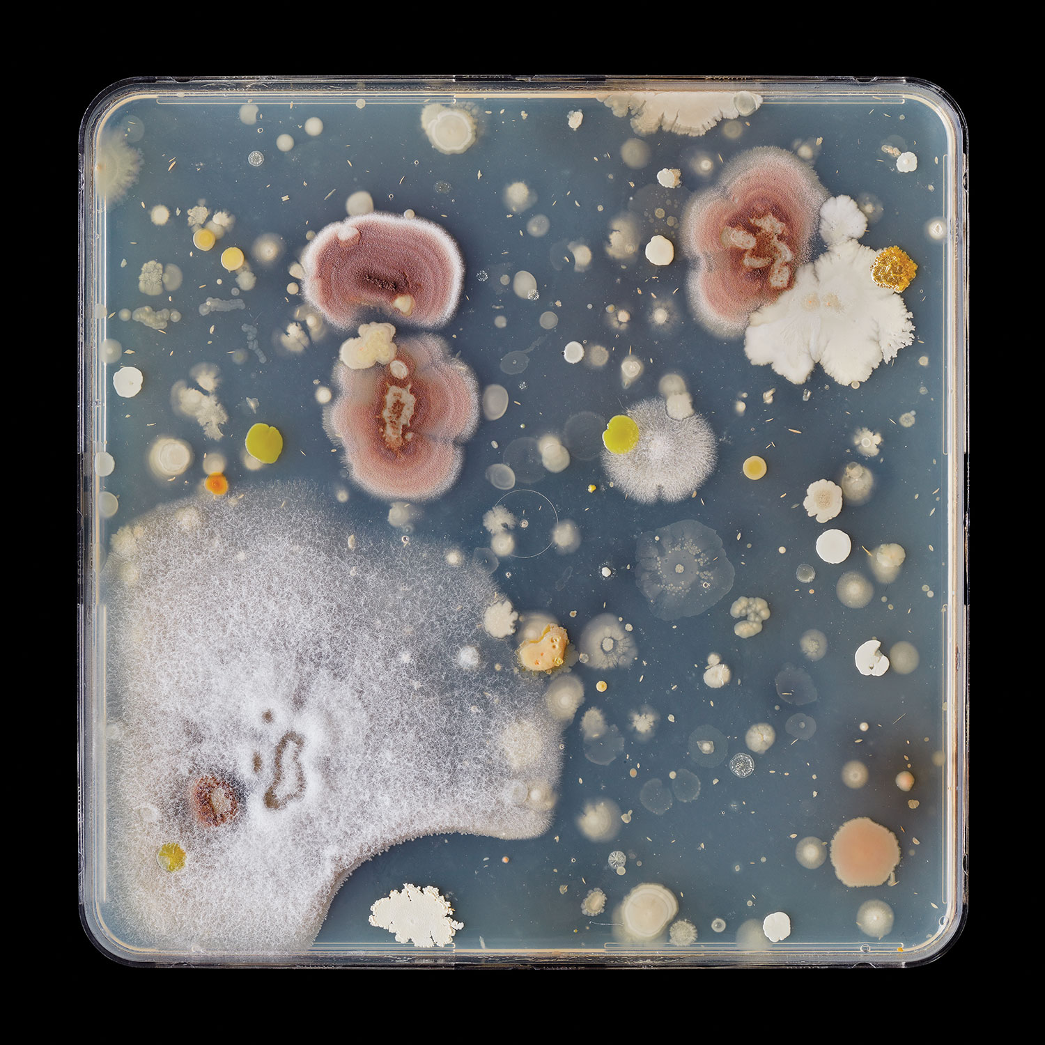 Jon Sasaki: Homage is a suite of photographs depicting petri dishes with bloomed bacterial cultures derived from swabs of the palettes and brushes used by members of the Group of Seven and Tom Thomson, objects held in the archives of the McMichael Canadian Art Collection. These large-scale works are monumental in scale yet they reveal microscopic detail, affirming a playful reverence towards the Group’s legacy while reframing the genre of landscape painting through the lens of photography. Through these glowing bacterial landscapes Sasaki has generated a new sublime, a counterpoint to the quotidian nature of what lies beneath. The artifacts from which the microscopic organisms were gathered will be exhibited in dialogue with the photographs, presenting a poignant entanglement of past and present-day artists in the story of Canadian art.