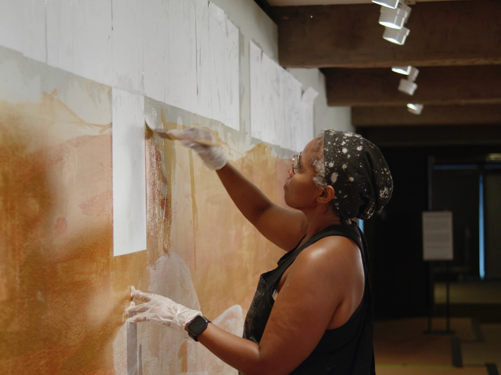 This year, we were delighted to reunite with Hartman to capture Sandra Brewster’s month-long creation of a new site-specific installation on the McMichael’s gallery walls.