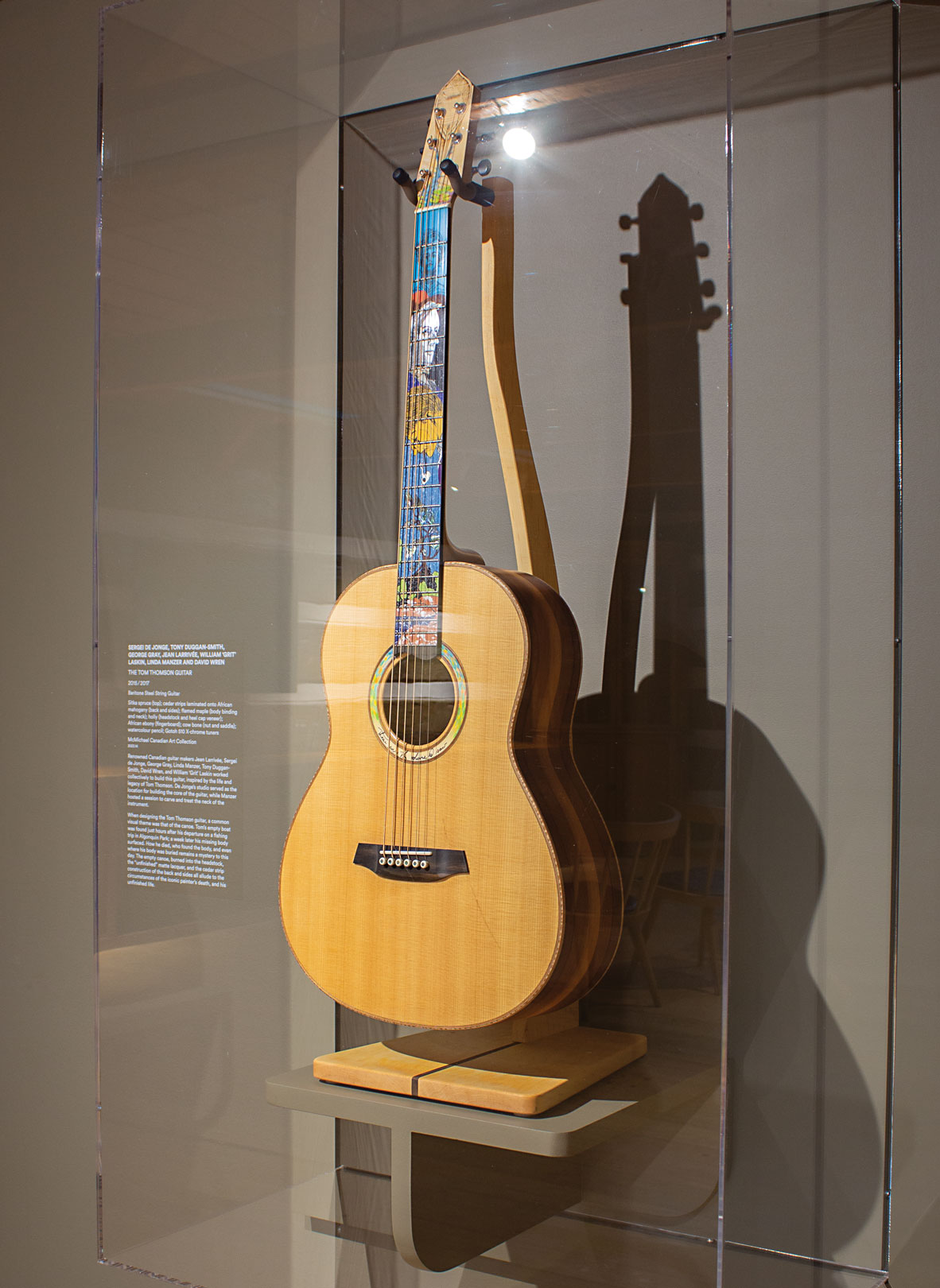 The Tom Thomson Guitar, the culmination of the McMichael’s 2017 Group of Seven Guitar Project, has finally entered the McMichael’s permanent collection. Created through an artistic collaboration of all seven luthiers involved in the 2017 project, this baritone guitar is a peerless musical instrument and an exquisite fine art object. We are delighted to have six of the luthiers join us for a conversation about the genesis of Tom Thomson Guitar, followed by a performance by the duo Twin Flames in which the instrument will be played.