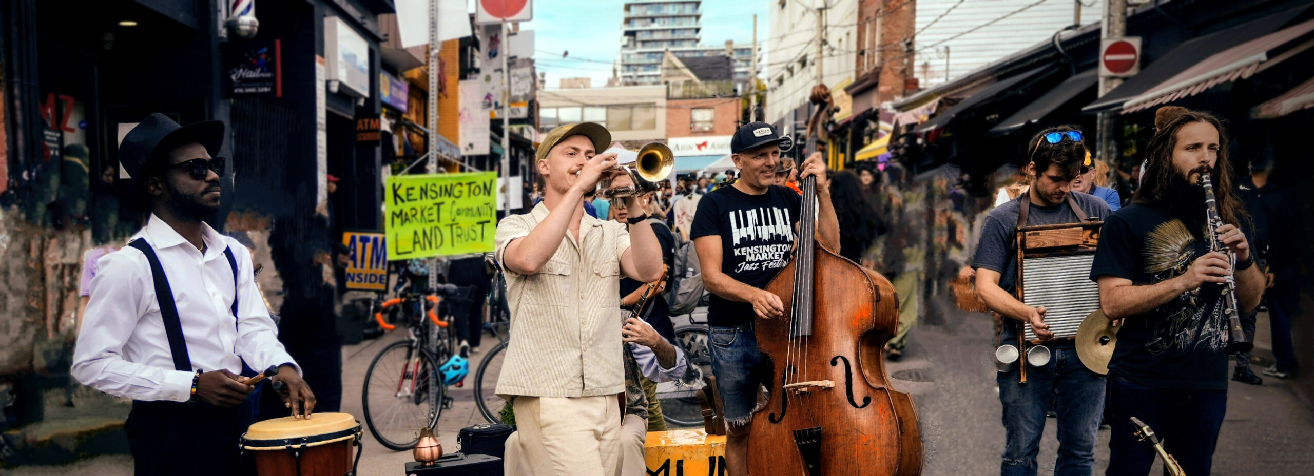 An all-ages favourite, All Angels Jazz Band is a Toronto-based traditional jazz band formed by six musicians who were volunteering their time performing at the St. Micheal and All Angels Church food bank at the height of the pandemic. The band embraces the traditional sounds of 1930s New Orleans and offers interactive performances influenced by the music of Louis Armstrong, Duke Ellington, Nat King Cole, and other early jazz legends. The band plays in full New Orleans style with horn/vocalists, banjo, upright bass and, drumroll please, the washboard!