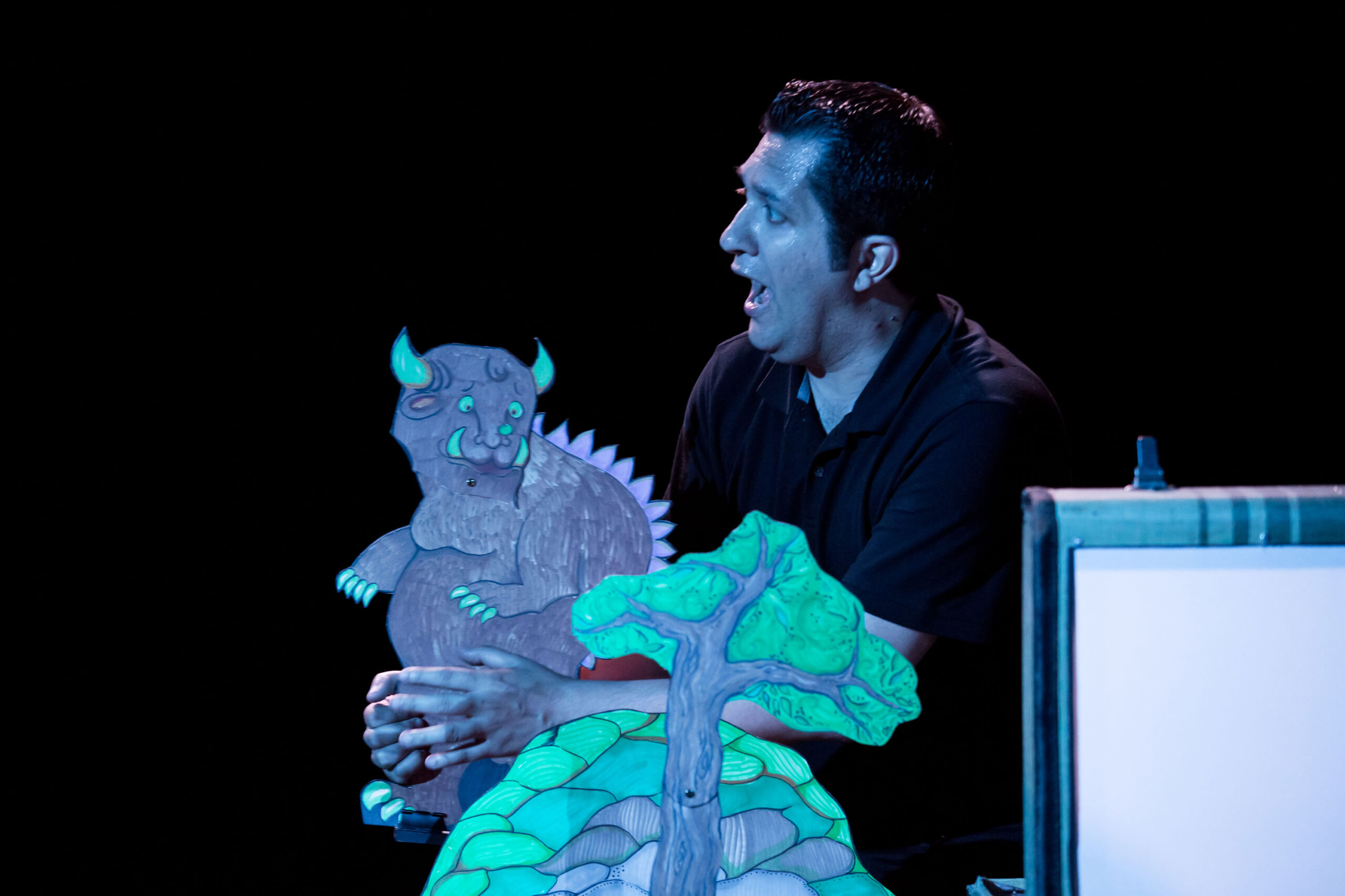 Discover the inspirational tale of how one little mouse outwits a host of dangerous animals with her imaginative takes of a mysterious monster: the Gruffalo! Based on a Chinese folk tale, adapted into a beloved book by Julia Donaldson, this play blends puppetry traditions from around the world into a delightful shadow theatre performance. Each performance will be followed by an artist-led paper puppetry workshop.