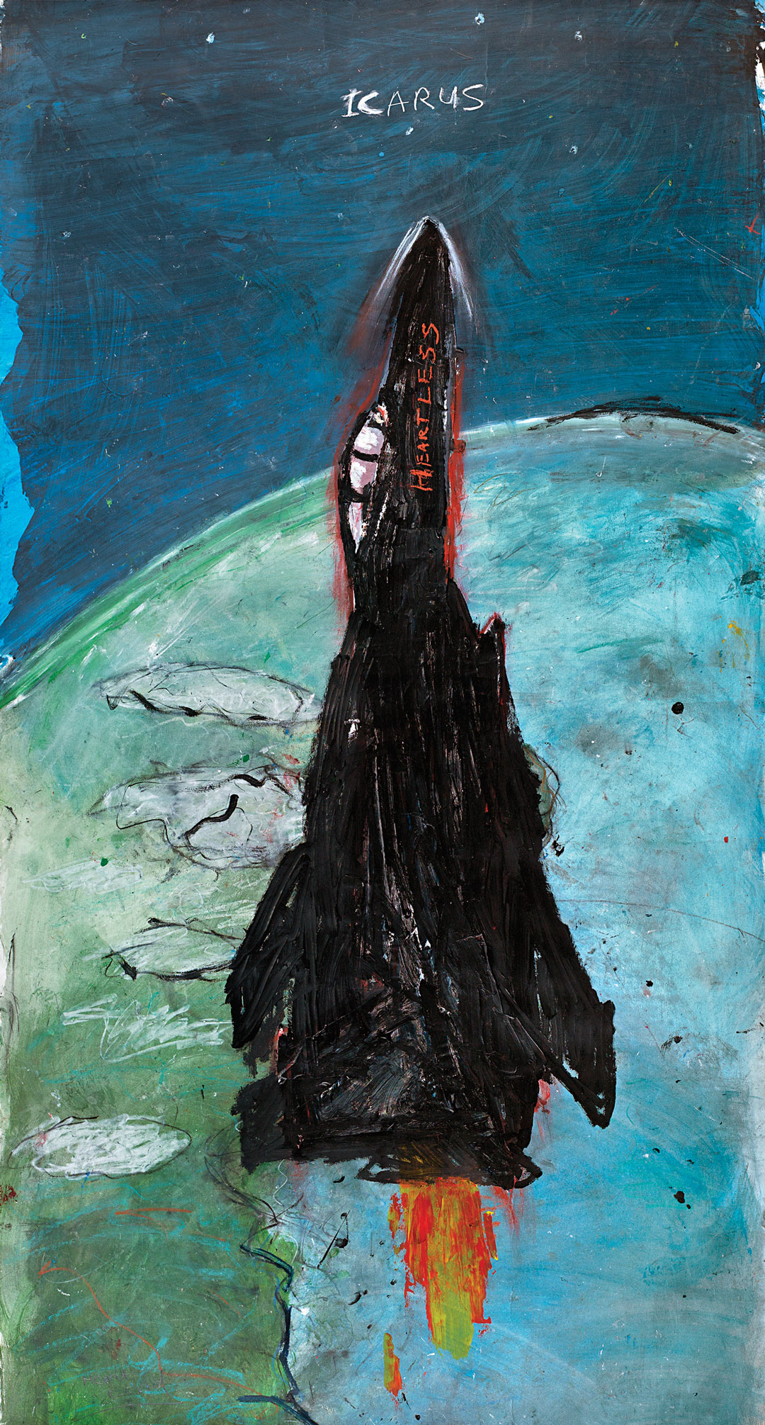 L’accent est mis sur les œuvres inspirées par l’imagerie des machines, les conflits, la violence et la surveillance. Ayant grandi dans les années 1950 et 1960 près de la frontière canado-américaine à Windsor (Ontario), Scott a été fortement imprégné par la politique et le militarisme des États-Unis. Il a utilisé des représentations de bombardiers furtifs, d’armes à feu et de chars d’assaut pour évoquer la vulnérabilité de l’être humain et la menace nucléaire, la violence ainsi que le spectre de la tyrannie – tous des sujets exprimés dans un style graphique cru et impérieux.