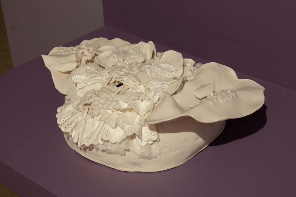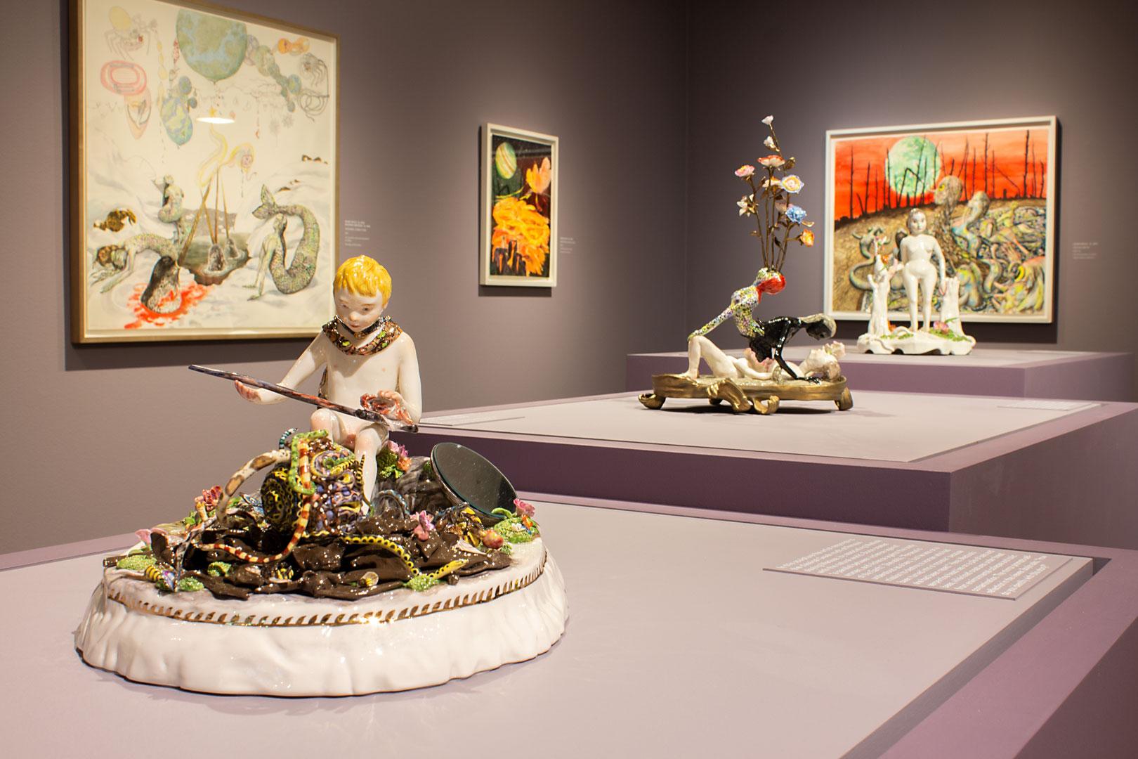 The Uses of Enchantment: Art & Environmentalism, a group exhibition on view to October 29, 2023, at the McMichael Canadian Art Collection in Kleinburg, Ontario, holds up a magic mirror to the most threatening monster currently in our midst: the climate crisis. In drawings, paintings, sculpture, performance, and audio, artists Shary Boyle, Carrie Allison, Shuvinai Ashoona, Qavavau Manumie, Bill Burns, Sara Angelucci, and Winnie Truong use folk-tale strategies to grapple with anxieties on a planetary scale. Fairy tales encourage children to use their imaginations to resolve fears and inner conflicts, according to Austrian American psychologist Bruno Bettelheim, whose 1977 book on the subject lends this exhibition its name.