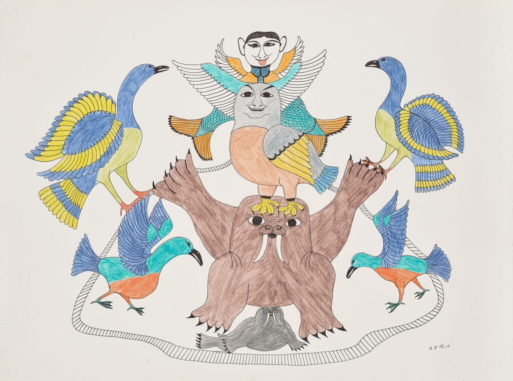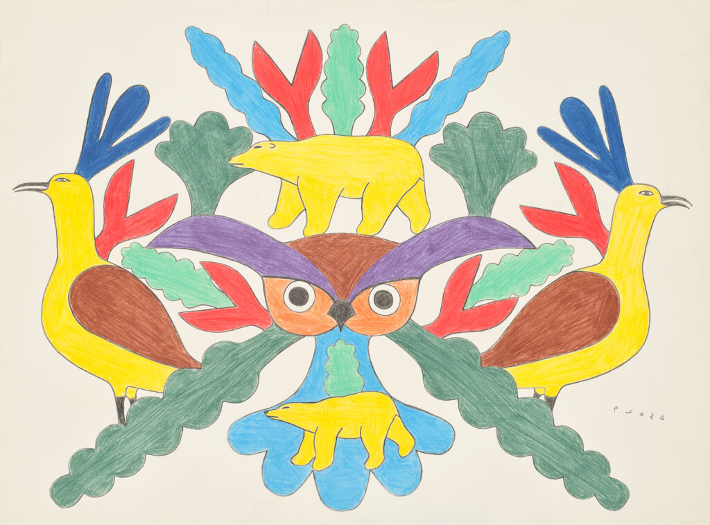Kenojuak Ashevak (1927–2013), Untitled, 1966-76. Ashevak’s earlier drawings included multiple figures of people and animals spread out across the picture plane compared to the bold single animals that made her famous.
