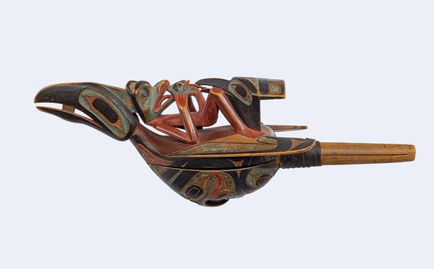 Today, museums increasingly exhibit their Canadian and Indigenous art in installations that mix the two (and often mix historic and contemporary too). Still, in its early days, the McMichael did distinguish Indigenous from non-Indigenous: Alongside the works by the Group of Seven that constitute its most prominent displays, the museum also holds an impressive but less well-known collection of historic Northwest Coast artifacts including masks, spoons and rattles.