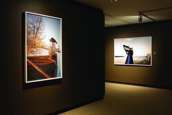 To create her dramatic large-scale photographs, the Ottawa artist Meryl McMaster researches Indigenous history and family stories, builds elaborate garments, headdresses and props that draw on her mixed Cree-European heritage, and poses herself in the Saskatchewan landscapes from where her paternal relatives sprang. In this rich consideration of identity, references abound – to stories as well known as the residential schools or as personal as an ancestor who used to flatten pennies by leaving them on the railway track. In one image, McMaster is hidden behind a raven headdress and a Campbell tartan shawl as she rings a pair of school bells; in another, the artist, carrying a photograph of her Cree and Métis grandmothers, appears with a red line drawn down the middle of her face. Entitled Bloodline, the exhibition includes these recent photographs, as well as earlier work and two films, a new departure for McMaster. At the McMichael Canadian Art Collection in Kleinburg, Ont. to May 28.