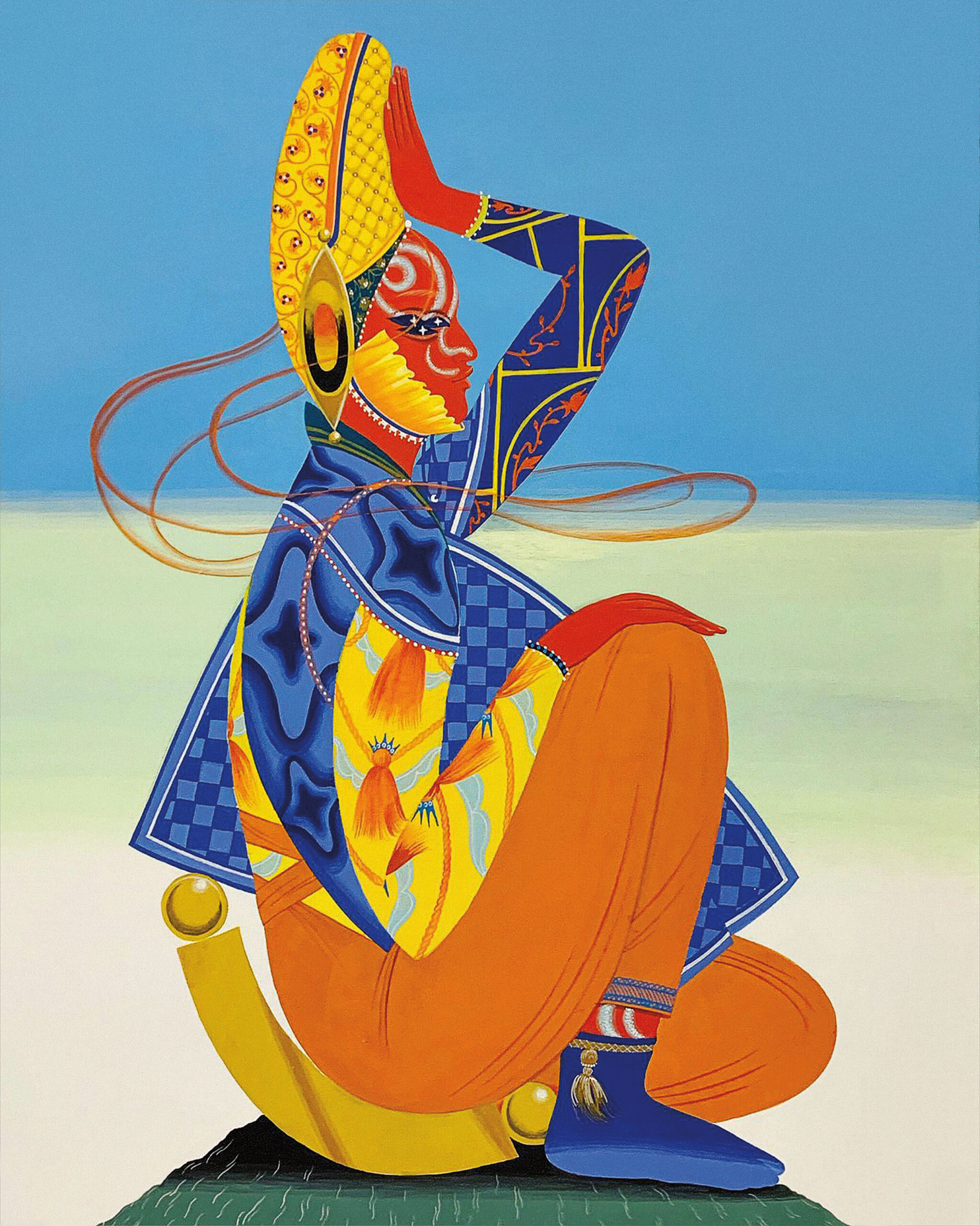 Yeah, totally. You could say that my Traveller series is the first departure point — the first time that I began to address these things — and it started with me painting the first one, which was this heavily armoured sort of mixed-textile-wearing, mutated figure. As I was painting, I was starting to realize that this is a great way for me to address immigrant issues — diasporic theory through the lens of science fiction. And of course, the climate refugee is the future of the immigrating population.