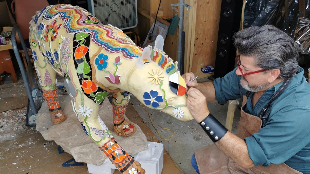 Dumont’s finished Regalia Bear was shown at his first solo exhibition at aceartinc. in Winnipeg last month. (Courtesy of Michel Dumont)