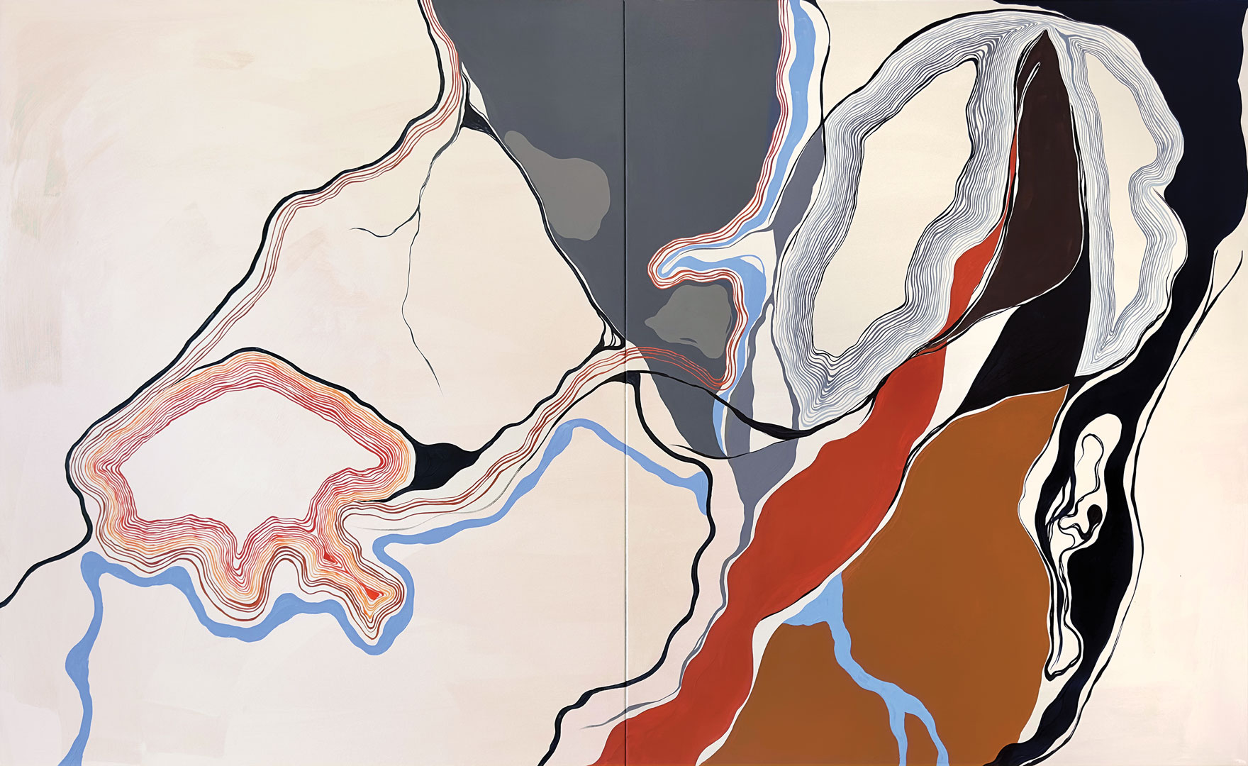 The season begins with a pair of exhibitions that explore how the mining industry shapes communities and landscapes. Montreal-based artist Moridja Kitenge Banza’s (b. 1980) bold use of contours and colours in large-format paintings invite us to consider the environmental and social impact of intensive resource extraction on communities around the world. Opening November 18, 2023, Moridja Kitenge Banza: Topographies considers resource exploitation in both the artist’s home country of the Democratic Republic of Congo, as well as his new home in Canada.