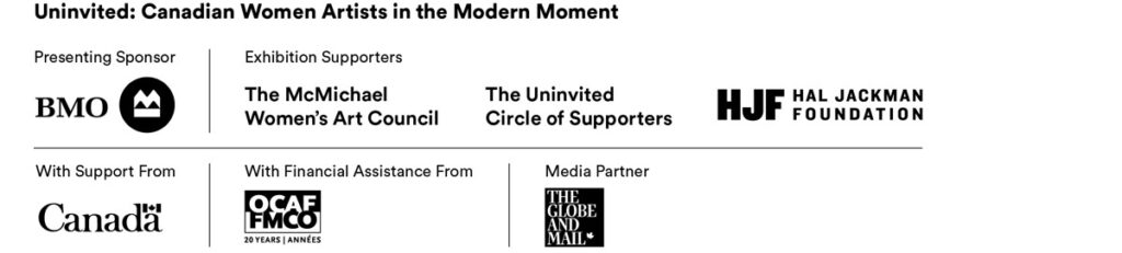Uninvited: Canadian Women Artists in the Modern Moment is made possible with the generous support of presenting sponsor BMO, the McMichael Women’s Art Council, and a group of enlightened private donors.