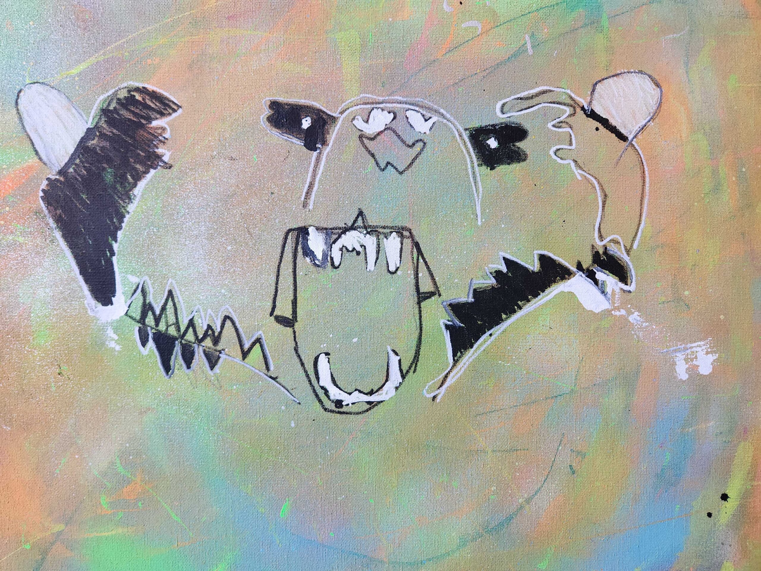 The reason why I chose a paw was because it was the easiest to do because I’m not an artist and this the only thing I could really draw. I did a cross because I’m pretty religious and I feel like I have a good connection to God and then I did some things like the sun flowers and a butterfly and a rainbow. The materials I used to create this art piece were spray paint, paint, pencil and Sharpie paint markers. The elements of art I used were line colour and shape.