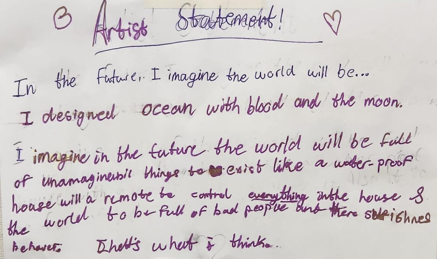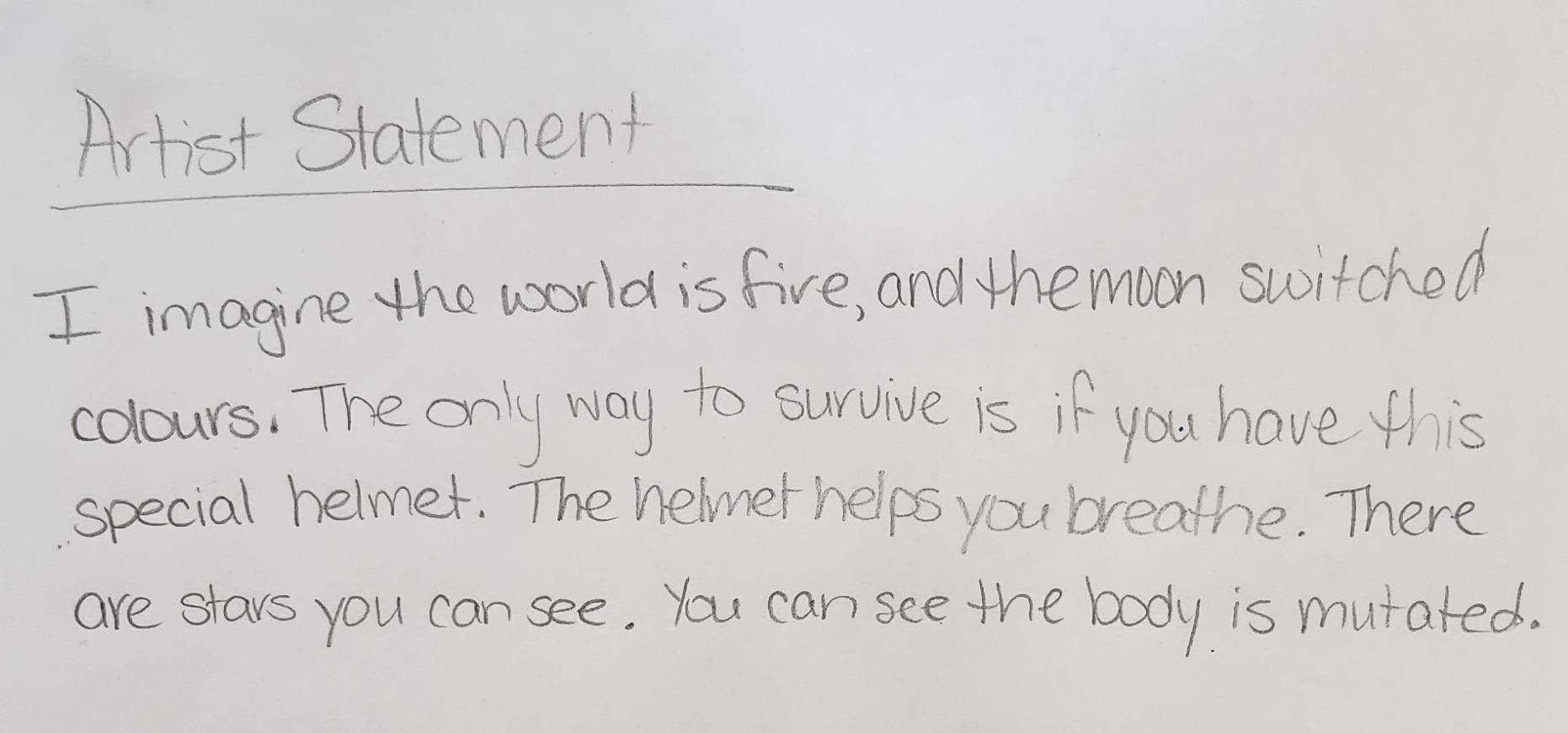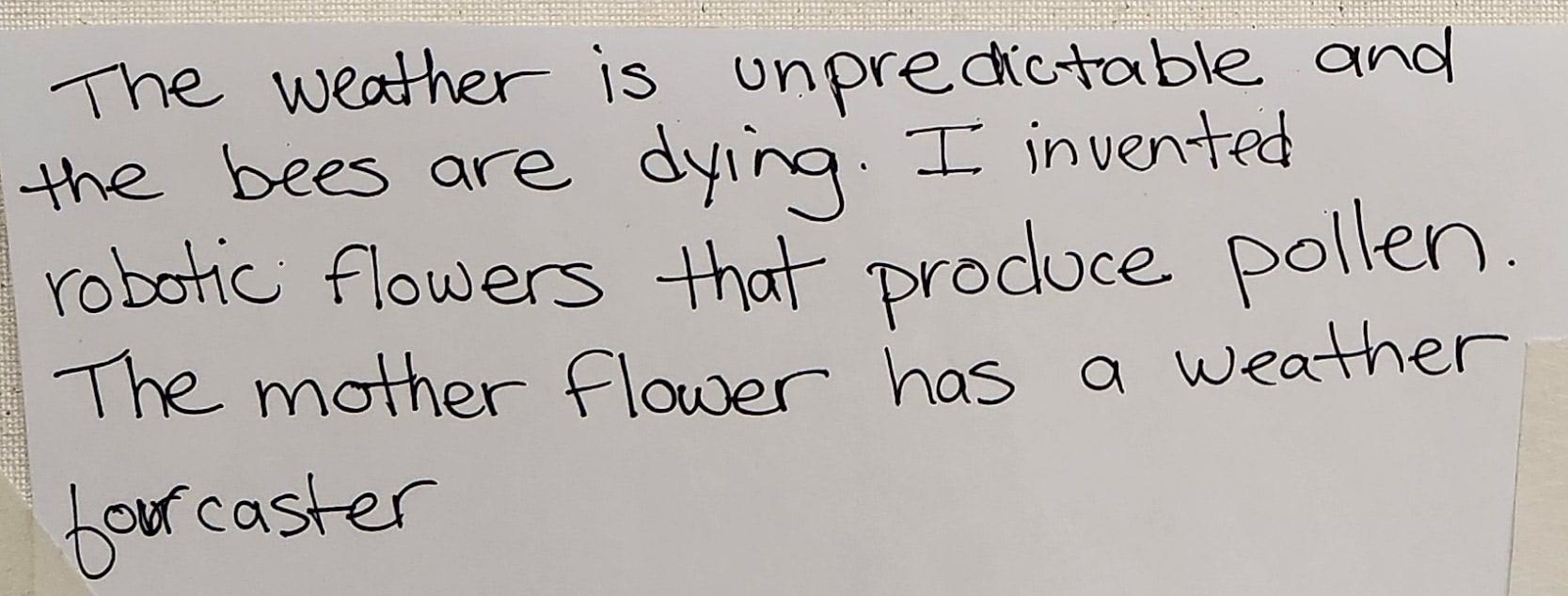 Artwork created by the V.O.I.C.E.S. participants can be seen below. The project encouraged students to look closely at the artwork of contemporary artist Rajni Perera and reflect on her visions of imagined futures. Students were asked to create a device that could help humanity thrive in a future or place facing environmental challenges. Some students have included an artist’s statement to accompany their work, guiding the viewer to a greater understanding of the process behind their creation.