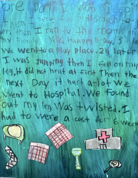 My artwork is about when one time I chipped a bone in my foot. My intention for viewers who see this art piece is that people want be careful.