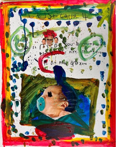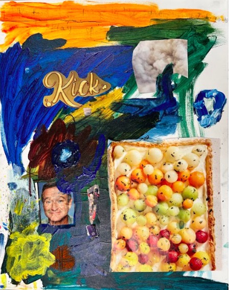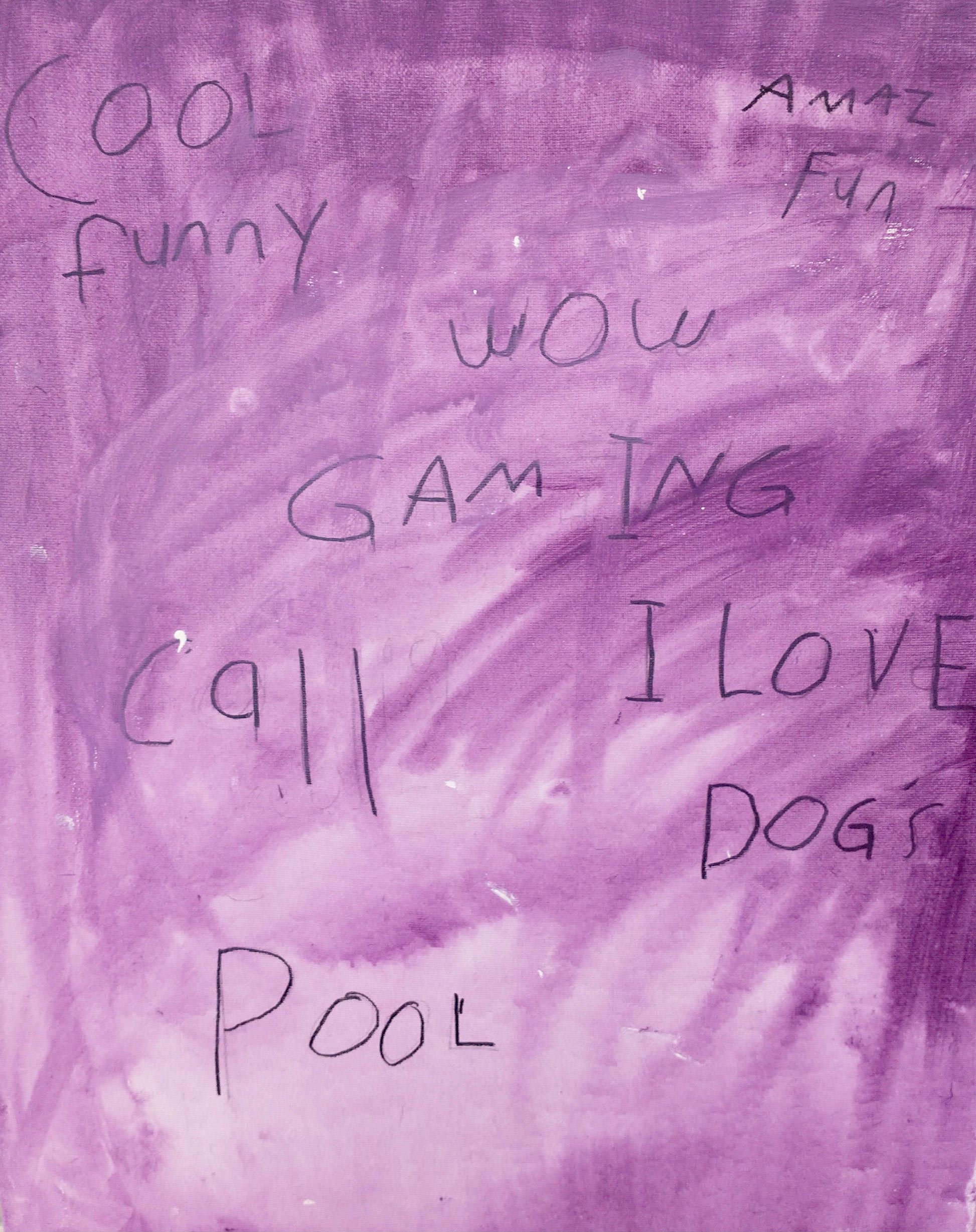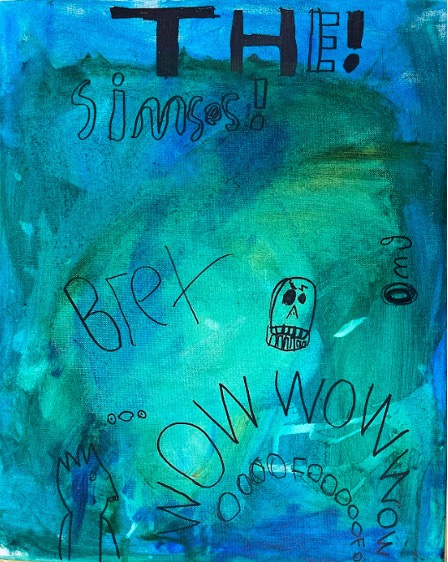 I was just fooling around because I thought it would look good. I thought the pictures would look good that I included as well. I really love just because 4 so I wrote it in my painting. I want people to see who I really am, a funny guy. When I was doing my painting, my friend and I were looking at each other more than we thought it would look good so when we were fooling around we started painting and putting pictures on it.