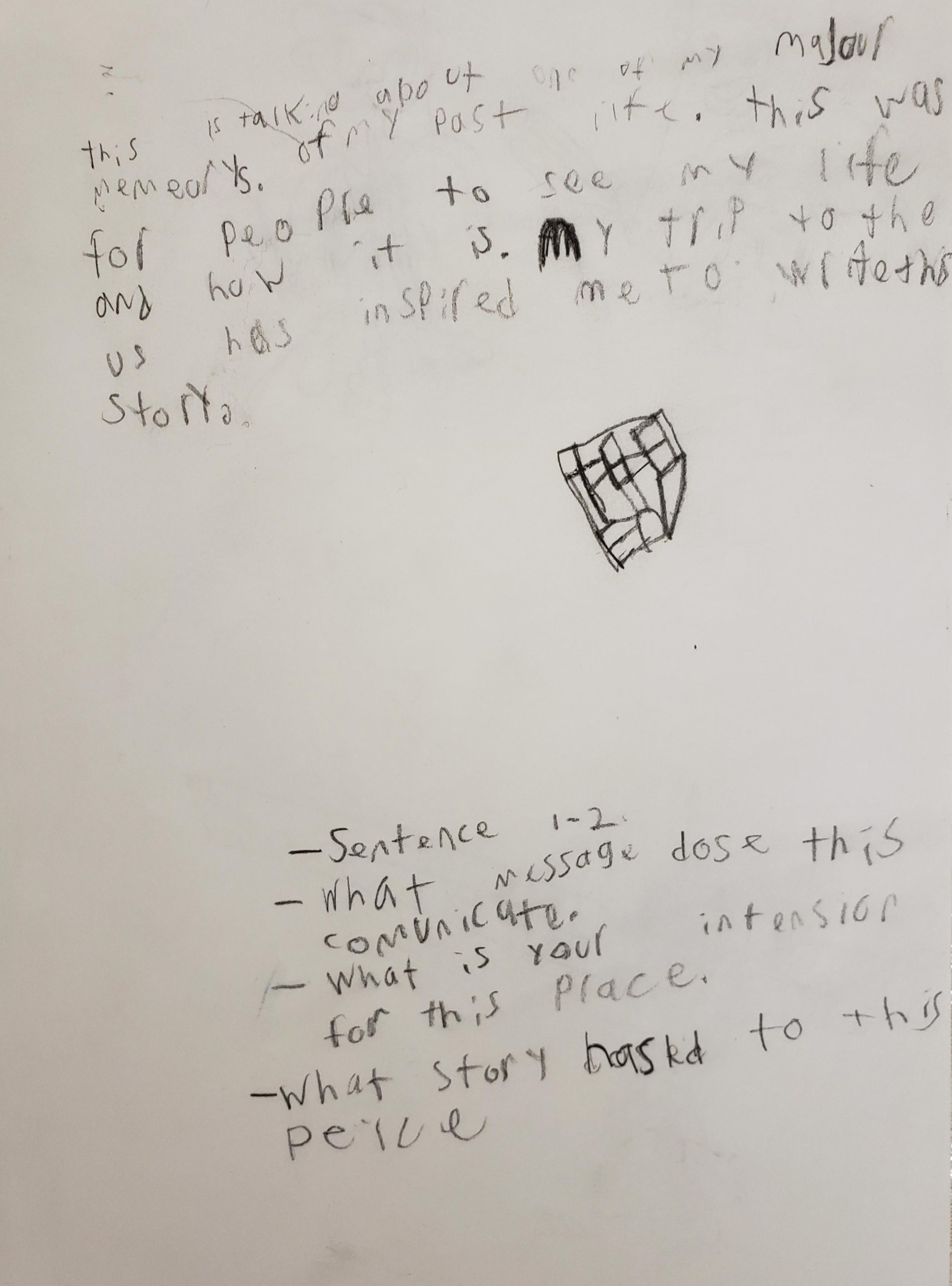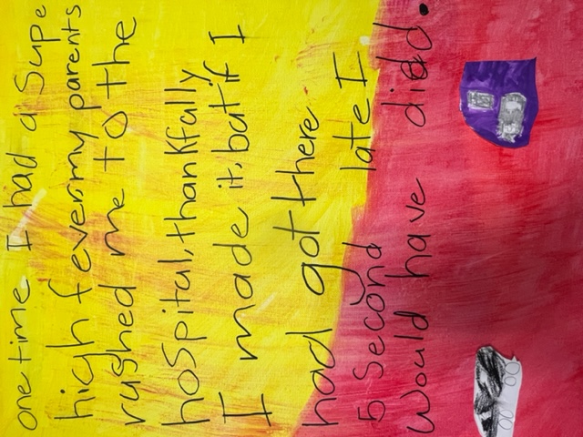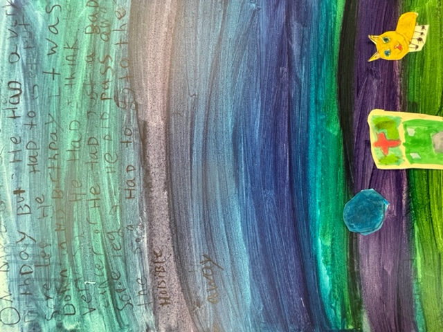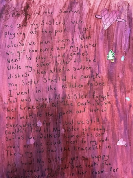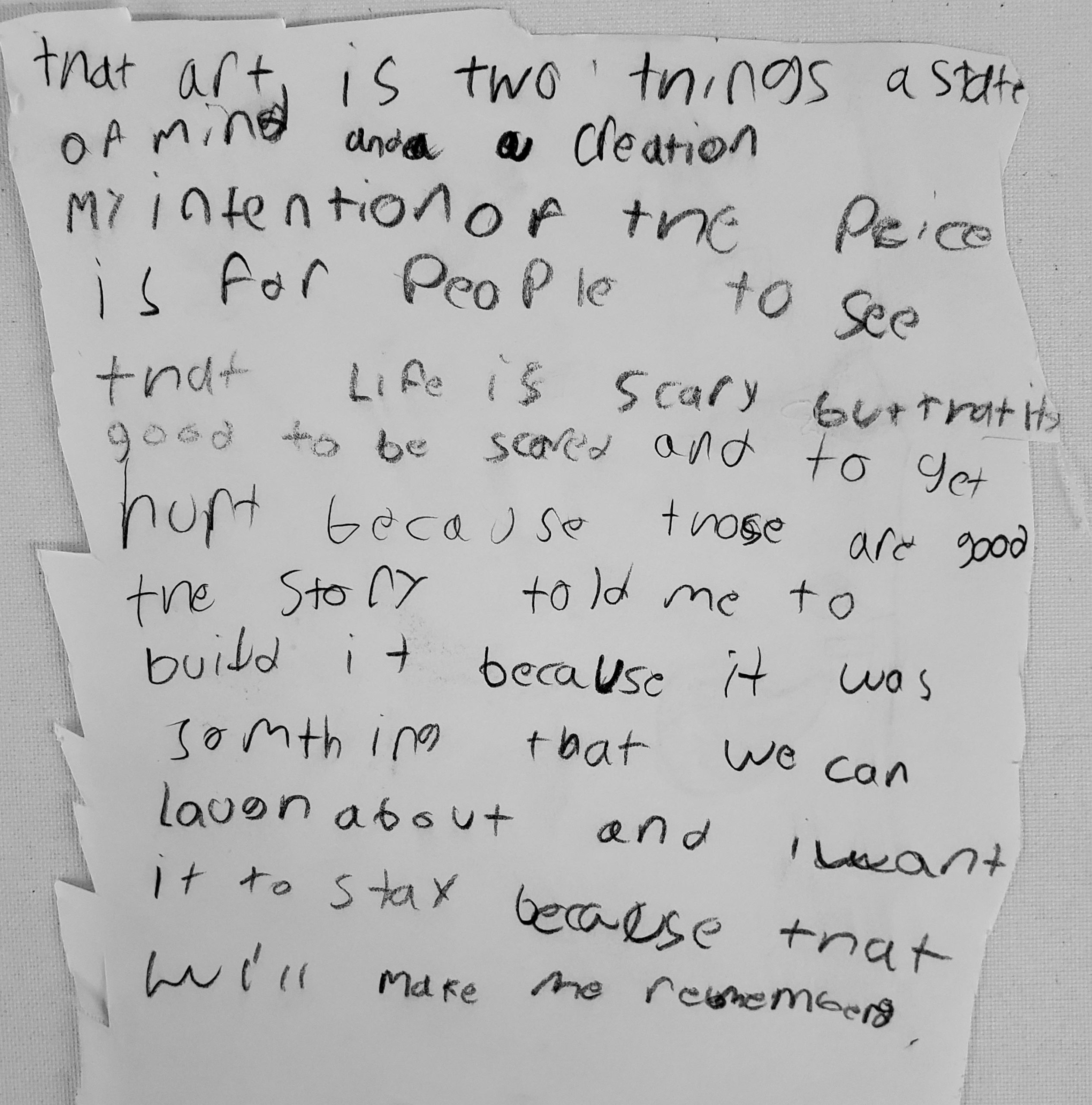 My art piece is a memory of when my sister lost a special item. My intention was for it to be an art piece that shows fear but also kindness.