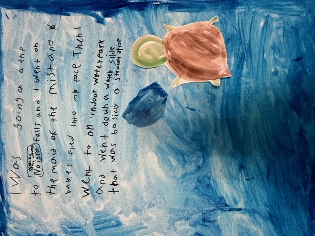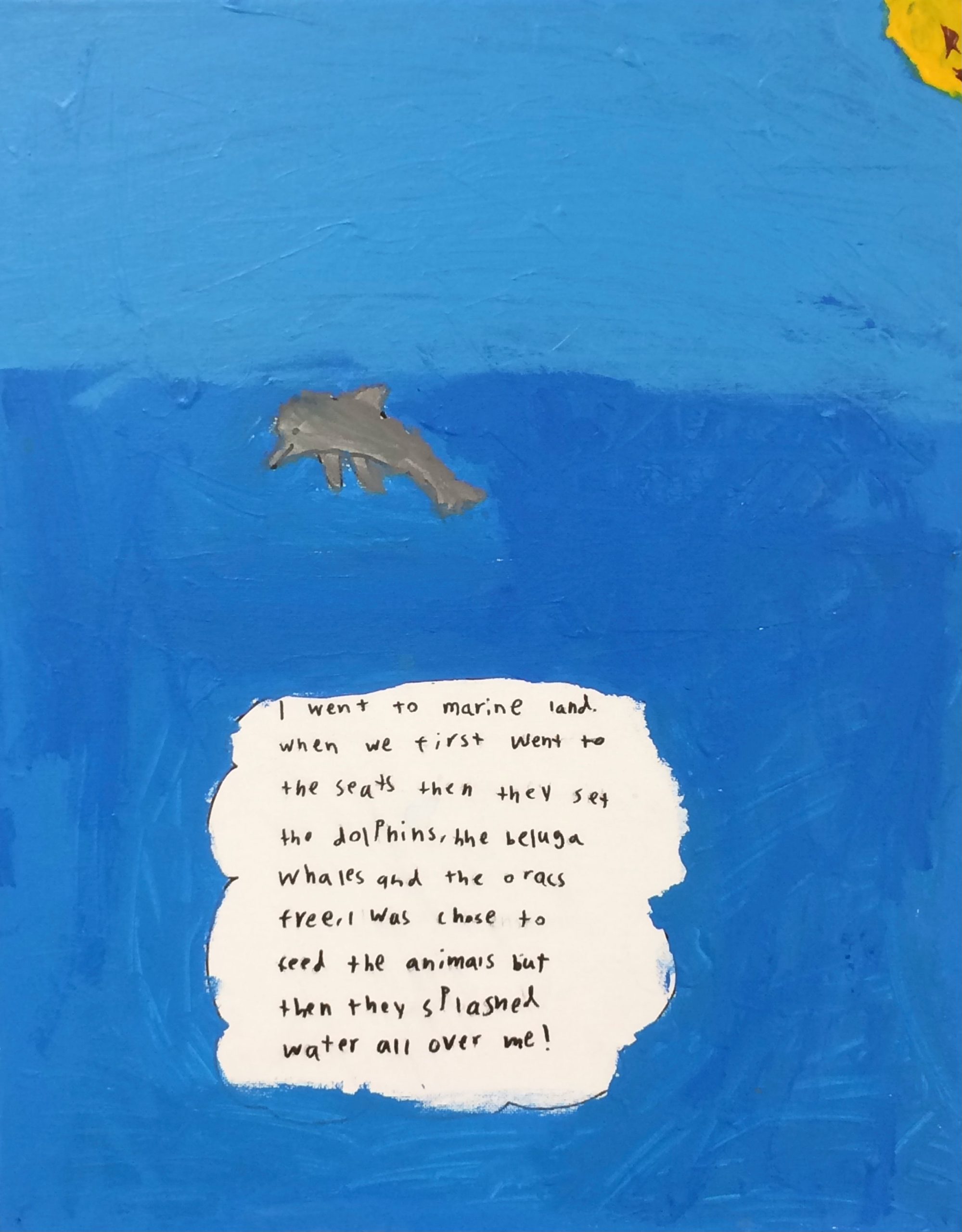 My painting is about the time I went to Niagara Falls and saw dolphins. I want the people who see my artwork to feel happy.