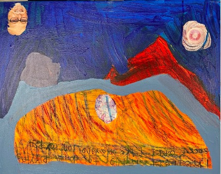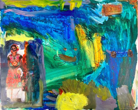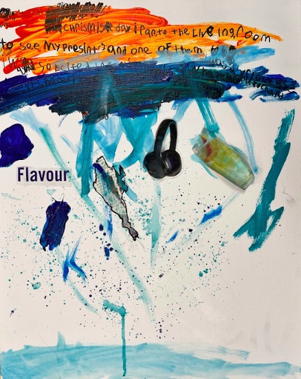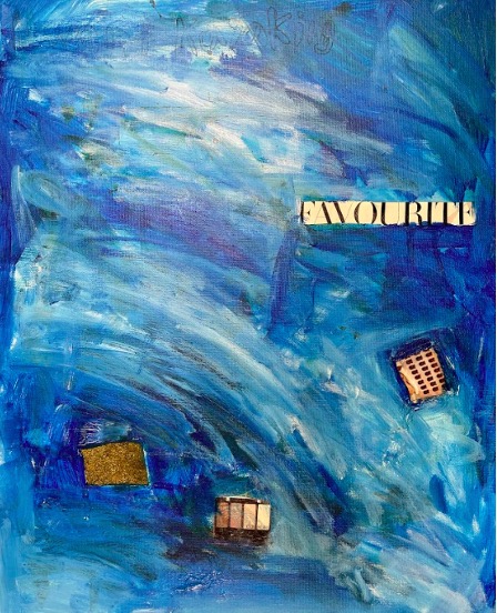 I want people to know that my art is based on current events like corona/covid with the curtains on the sides. I chose this because my vacation to Cuba was canceled. The colours were just colours I made with the paint I had.