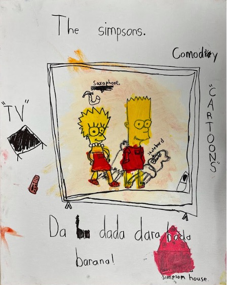 I drew the Simpsons because the Simpsons is my favourite tv show and I made a mistake and I thought that it kind of looks like the Simpsons and I worked up from there. My intention of what I want the viewers to see of my art is to feel young again because the Simpsons is for youngsters. I want people to notice that if you make a mistake try to try again.