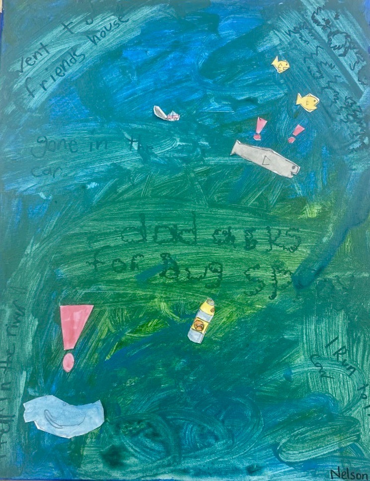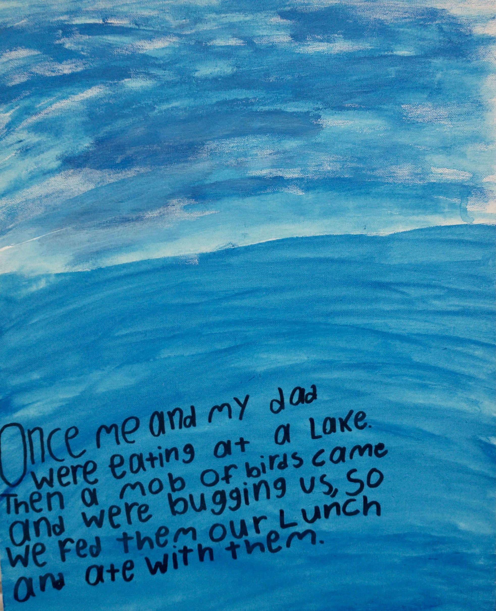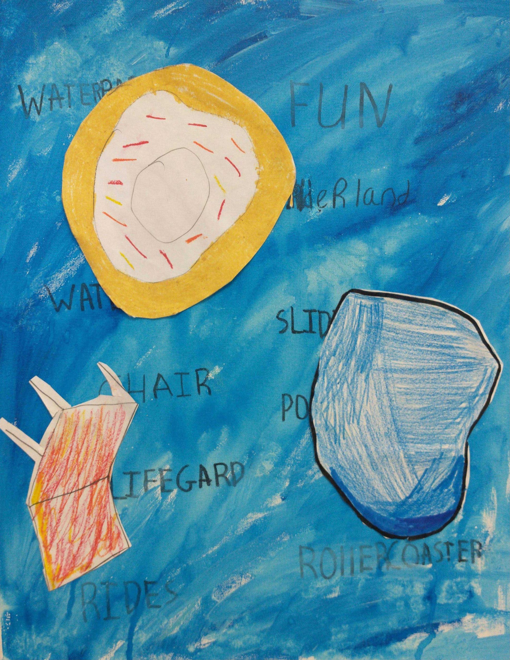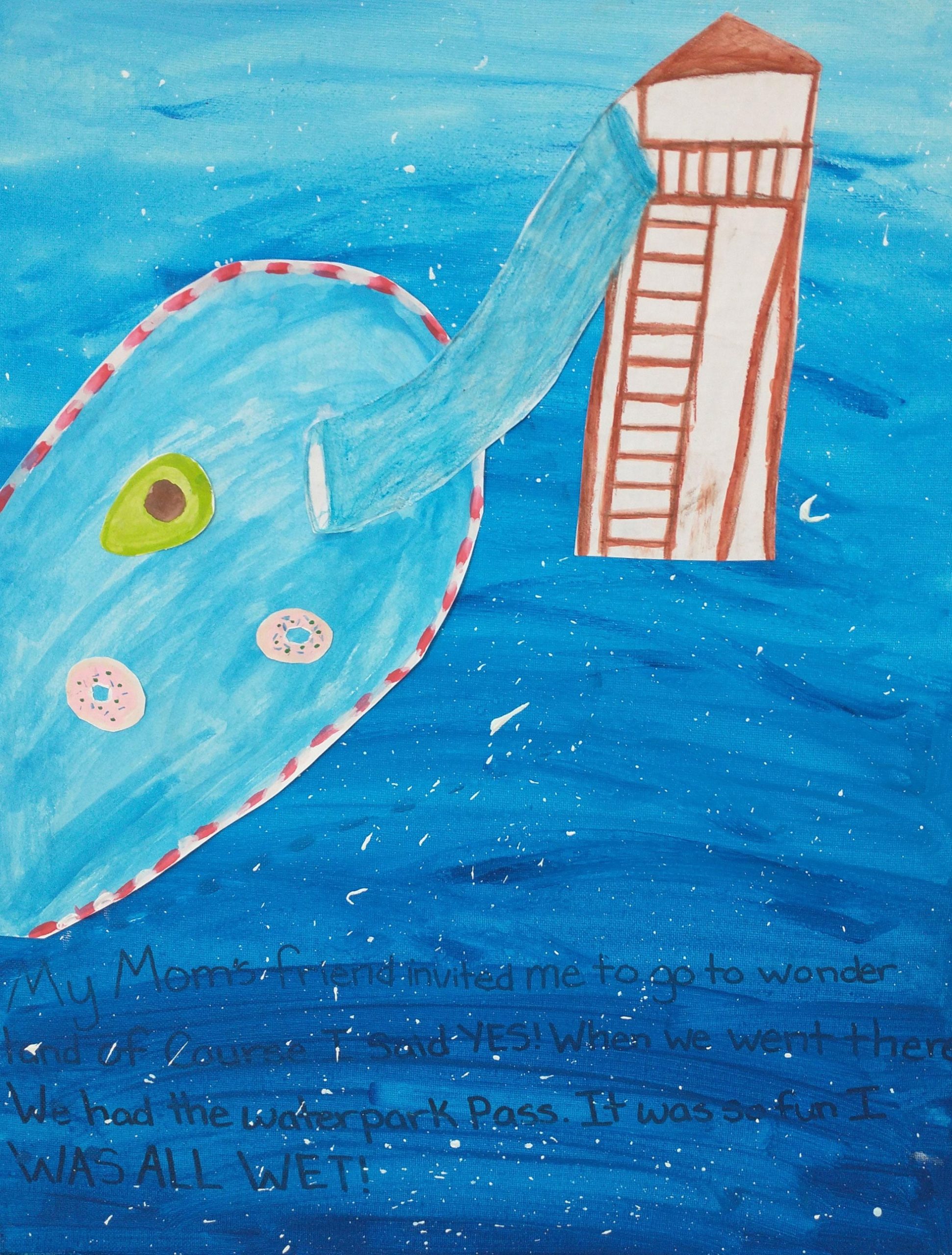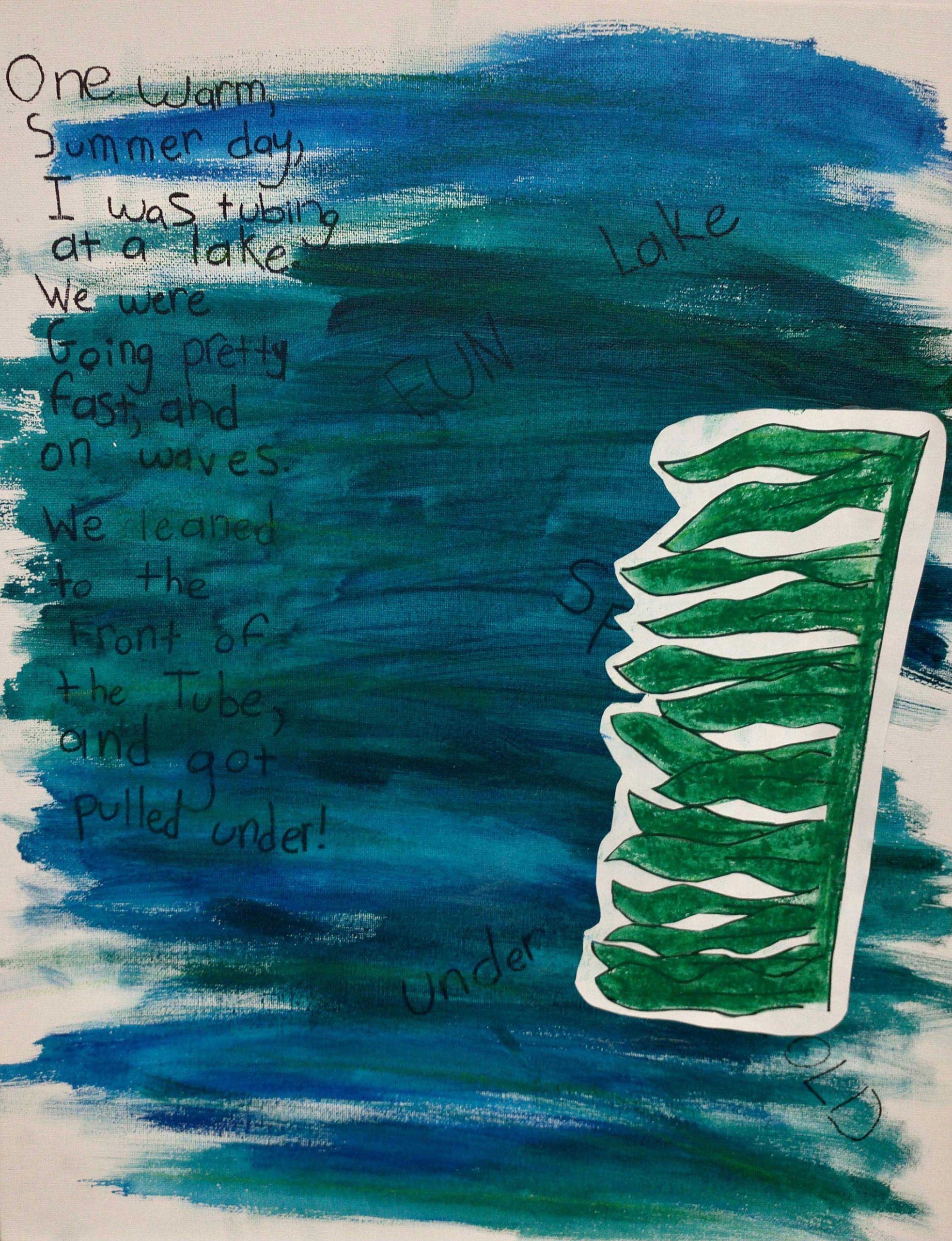 I made this art piece because I wanted viewers to remember to have fun, enjoy themselves, and enjoy the water. I got inspiration from a funny memory in a lake I was once in. I made this piece with paint and oil pastels.