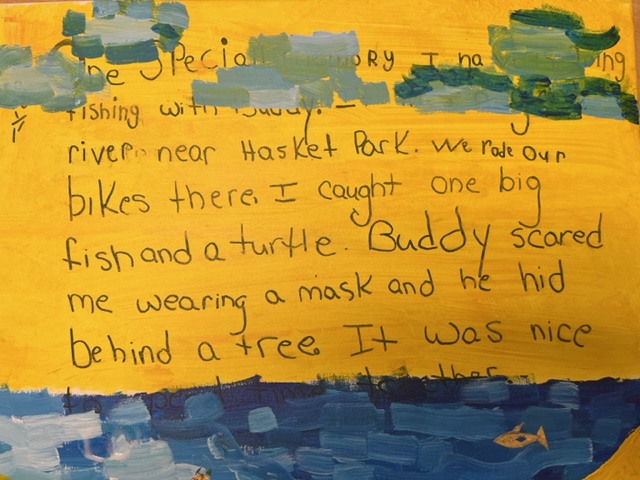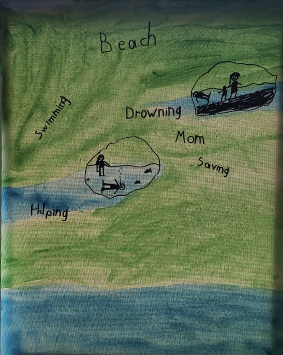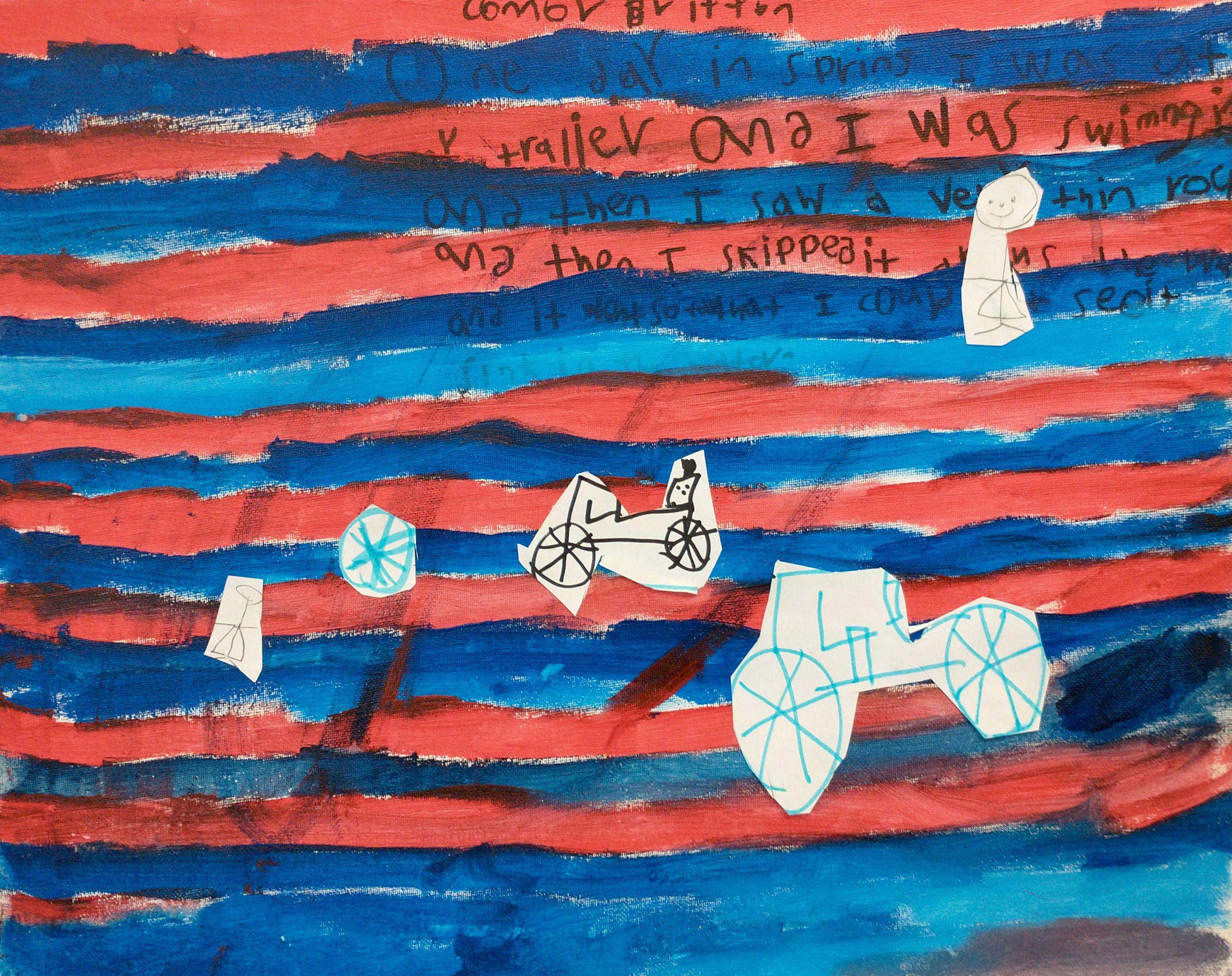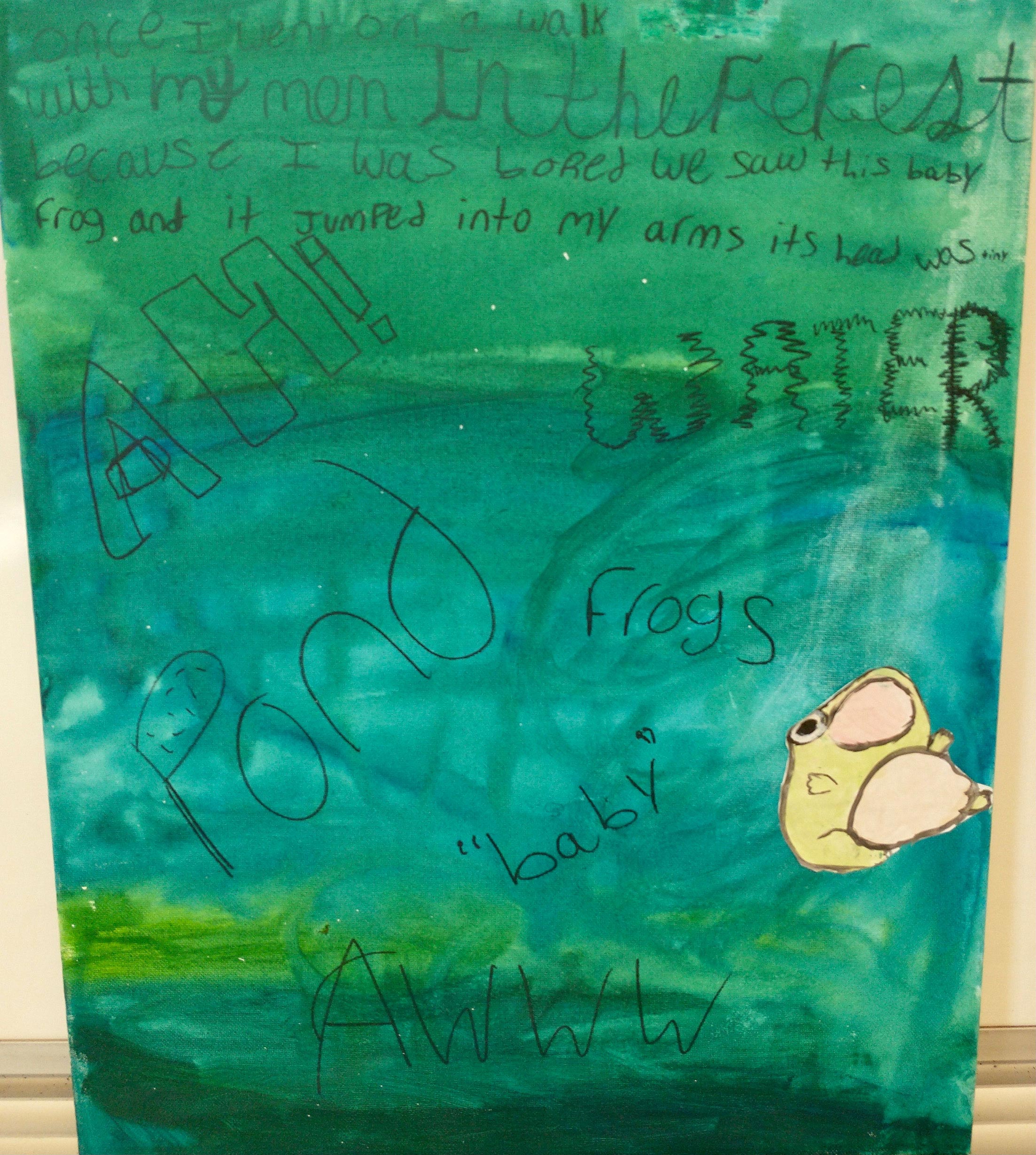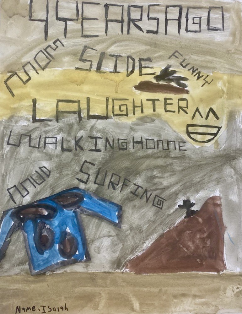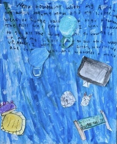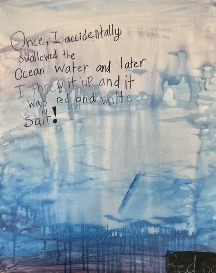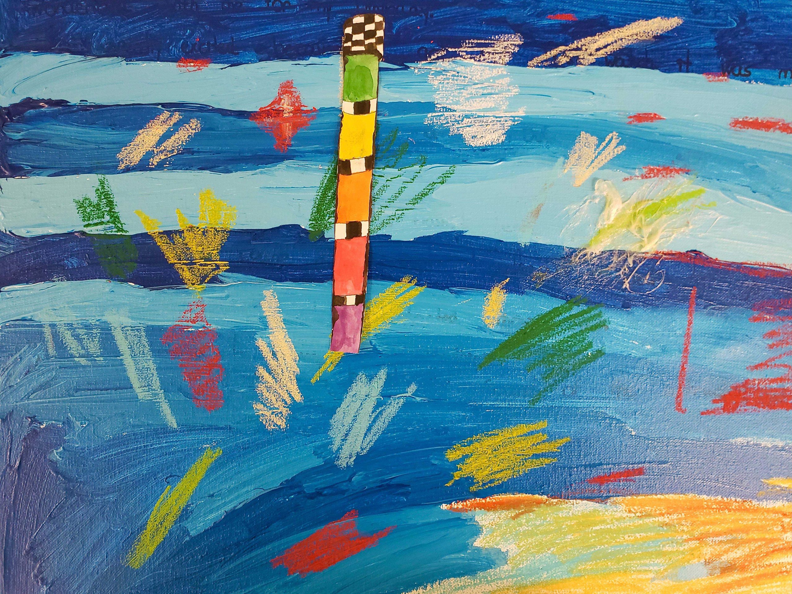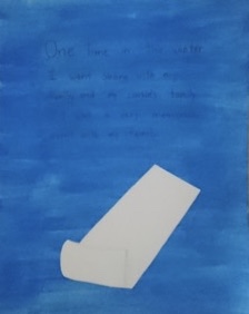 I made this art piece because I wanted viewers to remember to have fun, enjoy themselves, and enjoy the water. I got inspiration from a funny memory in a lake I was once in. I made this piece with paint and oil pastels.
