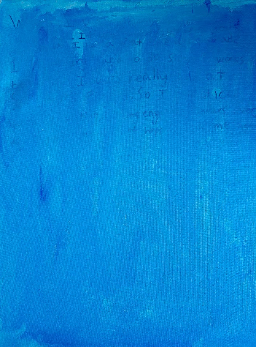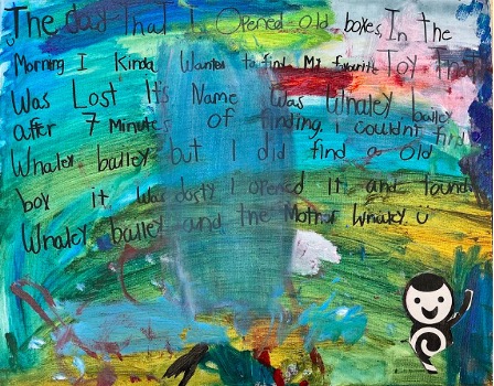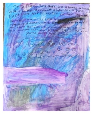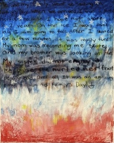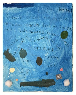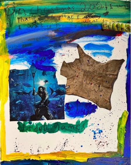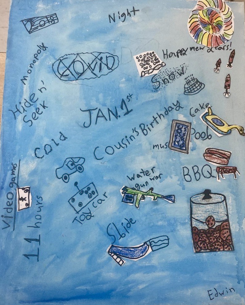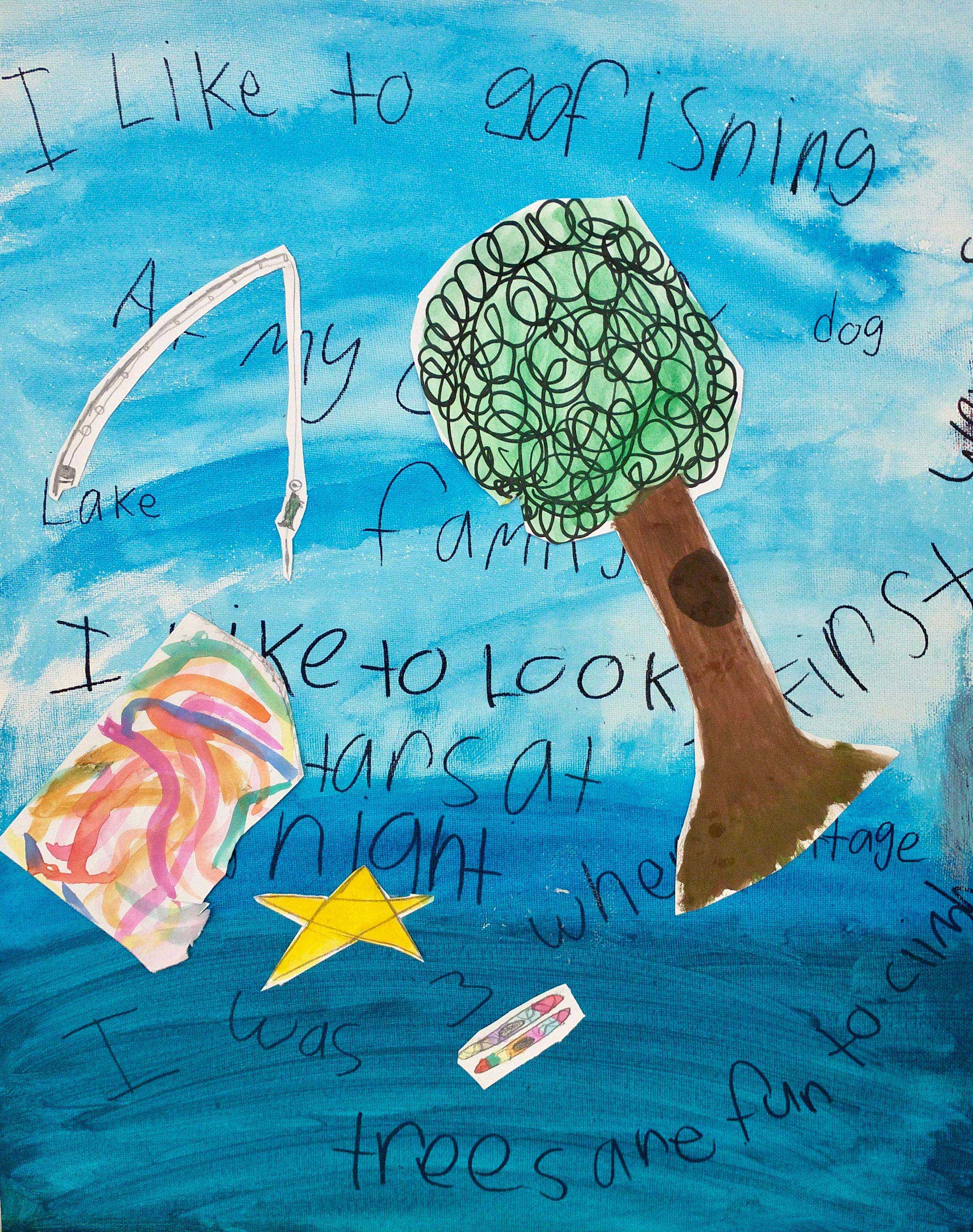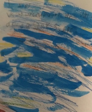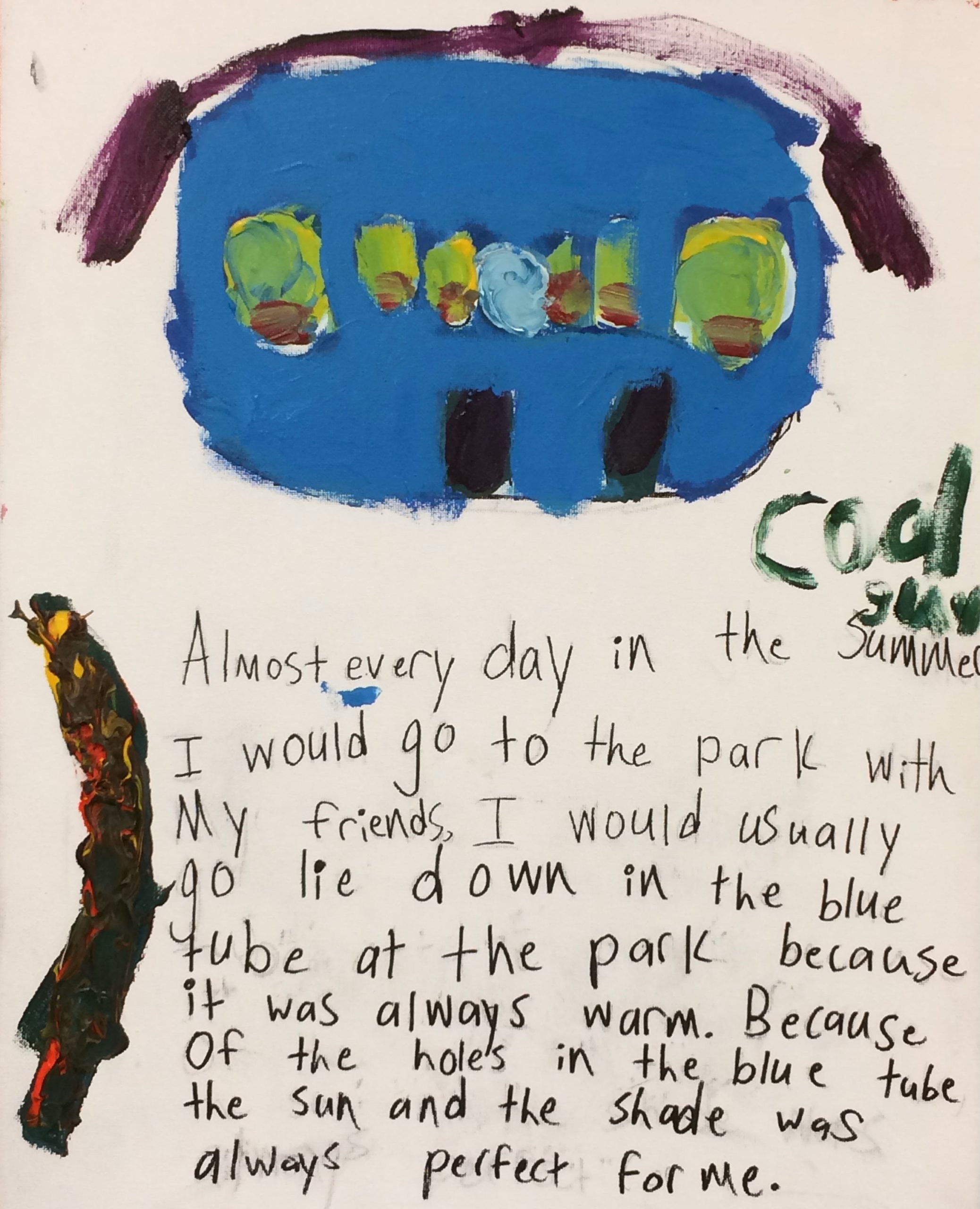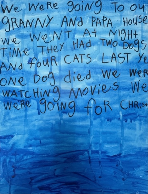 I want people to be able to see my artwork. I want my artwork to be seen, not hidden. My grandpa inspired me. I chose blue because my grandpa died before Christmas.