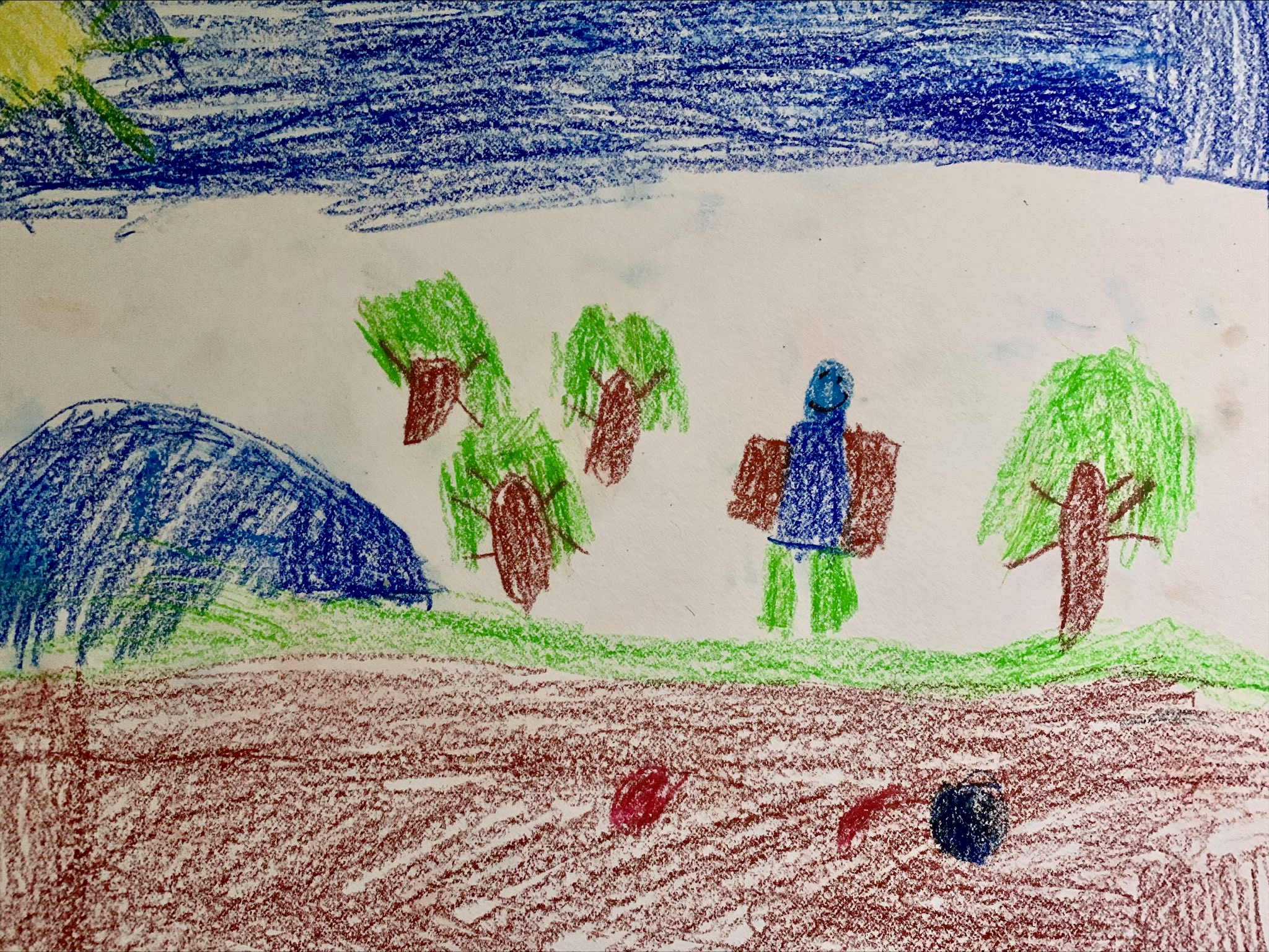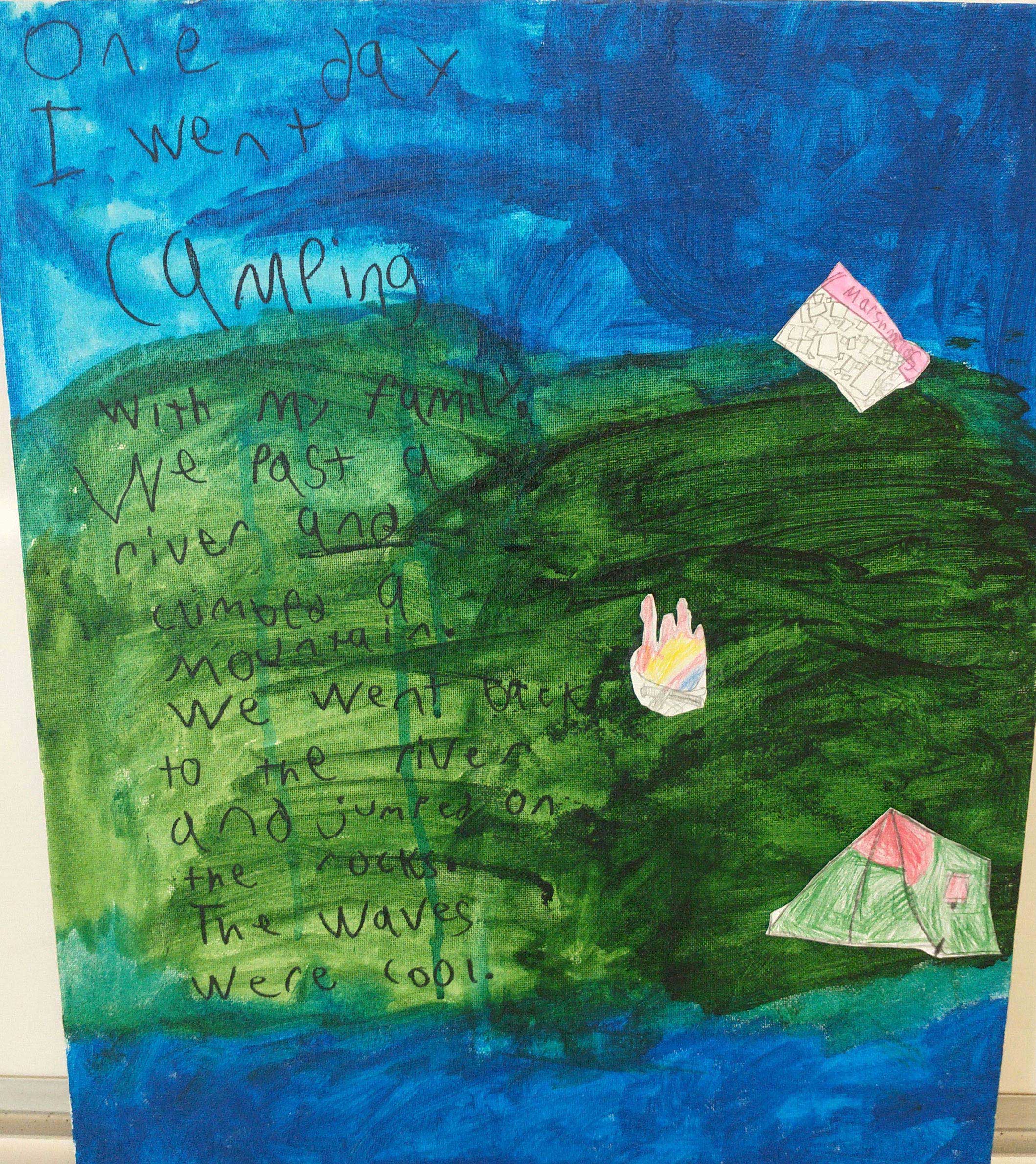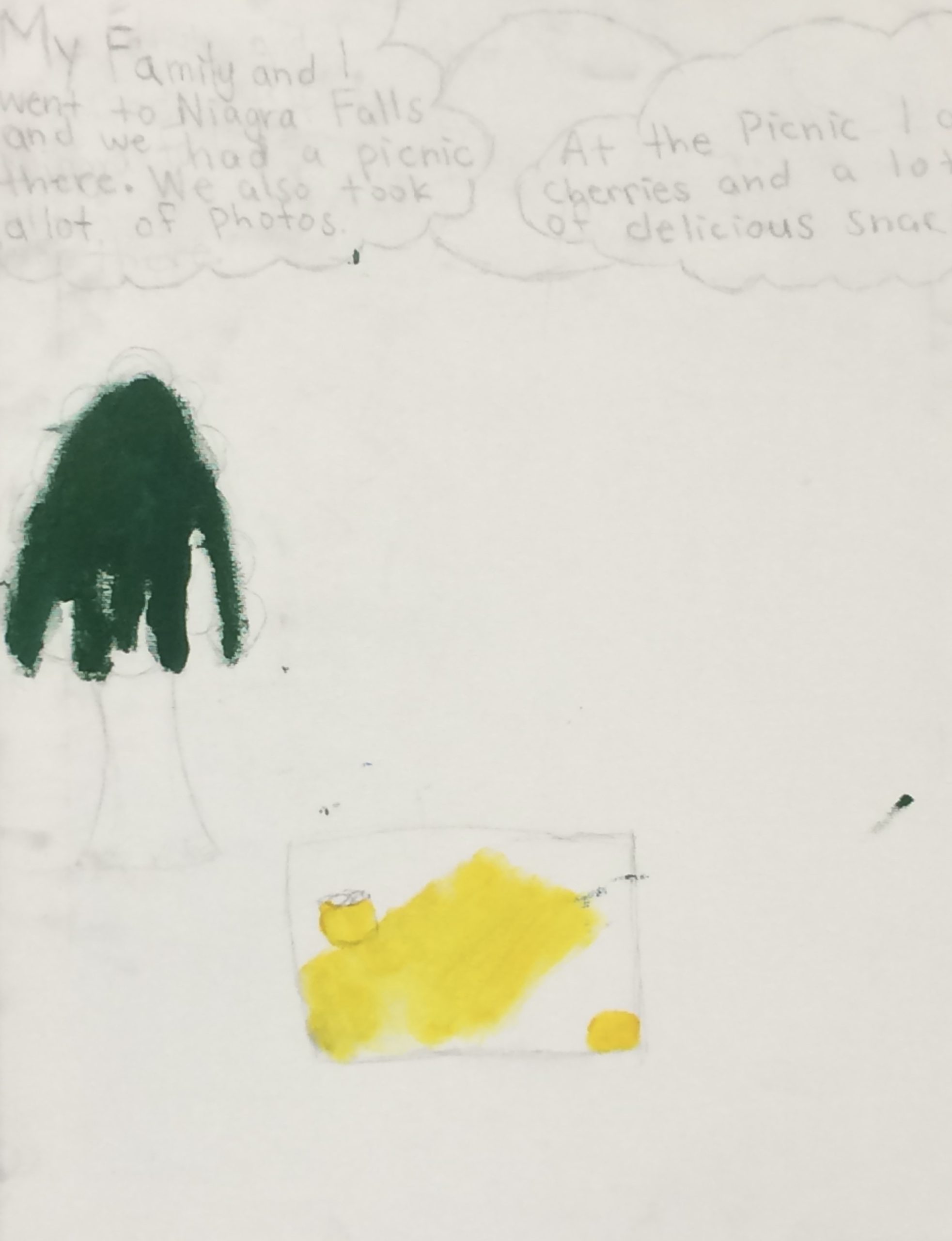 My artwork is about me and my family on a picnic. I want people who see my artwork to feel nice and welcomed.