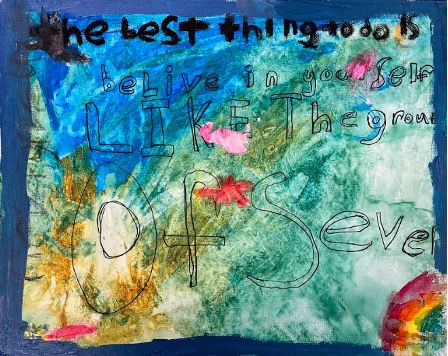 I made mine about the group of seven and a bit about my family. My family was all together until 2017 one year before my little sister Logan was born. Now my dad no longer lives with us and it has been difficult, because I miss him. My painting is about believing in yourself.