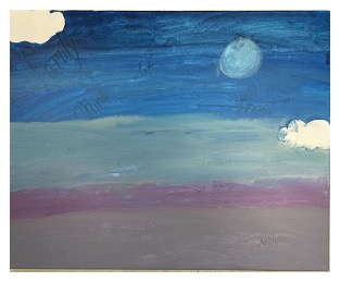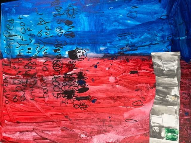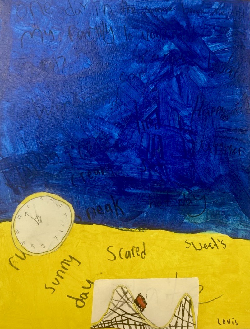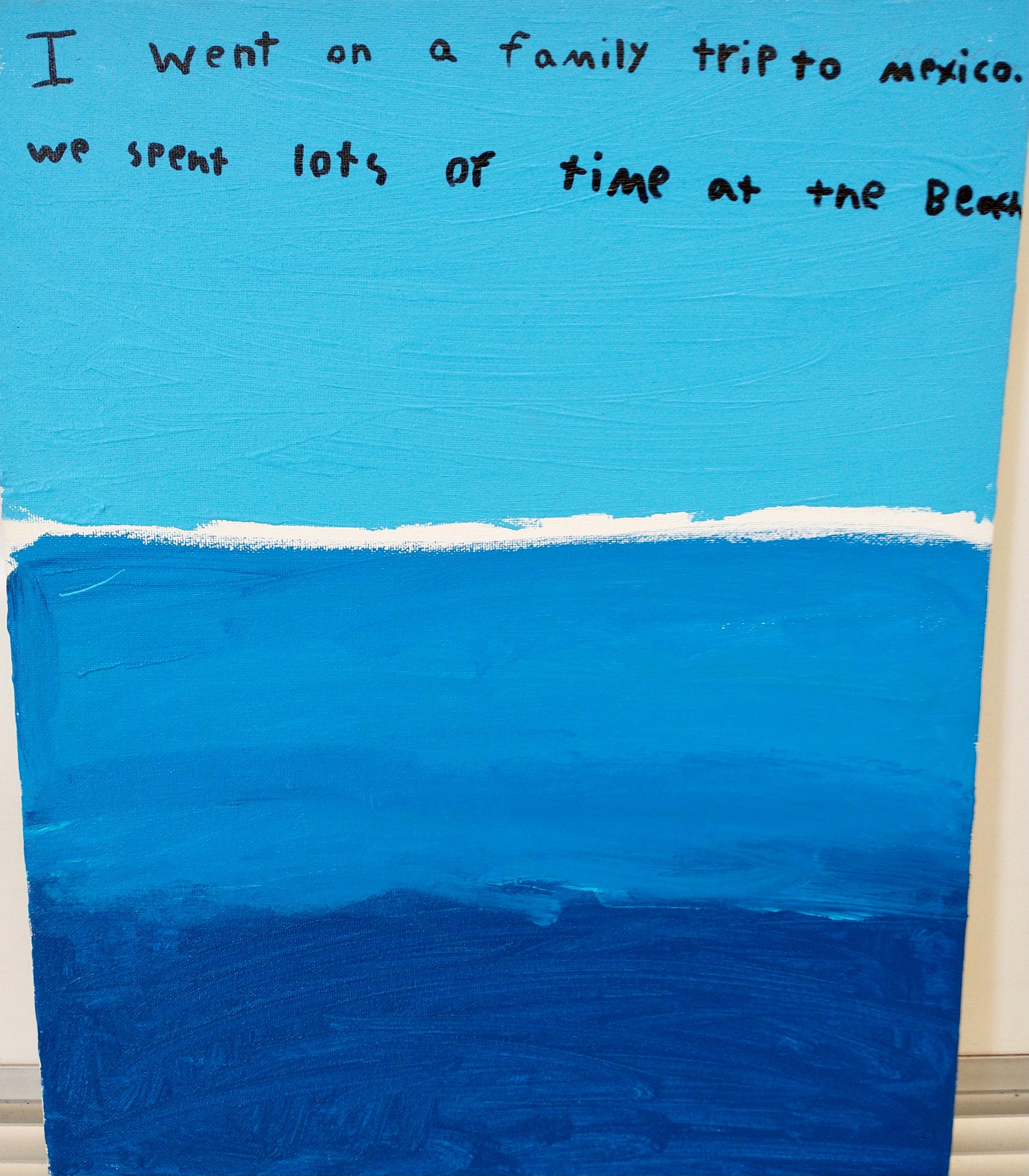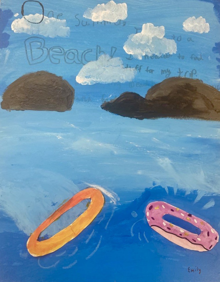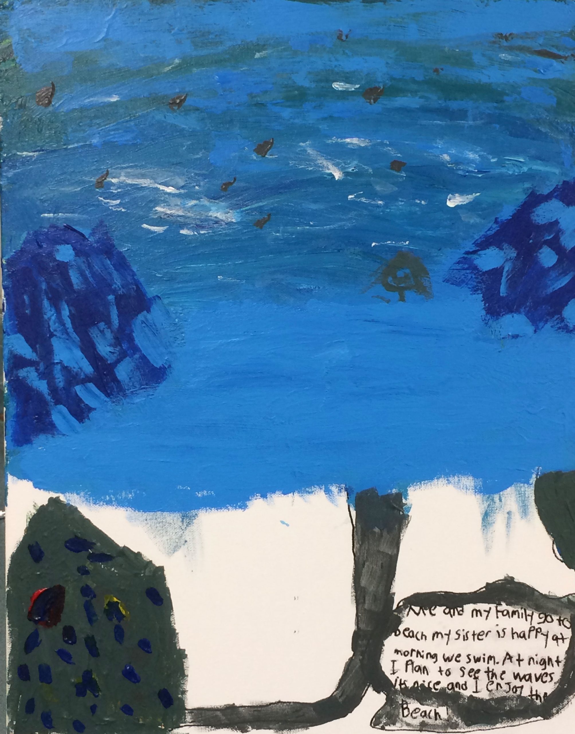 I made my painting about me going to the beach with my family and we were looking at the water.