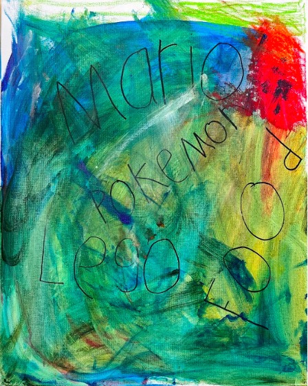 My painting is about when I started liking these things like Pokemon, Lego and Mario. The colours I chose are my favourite colours. I want people who look at my painting to feel interested.