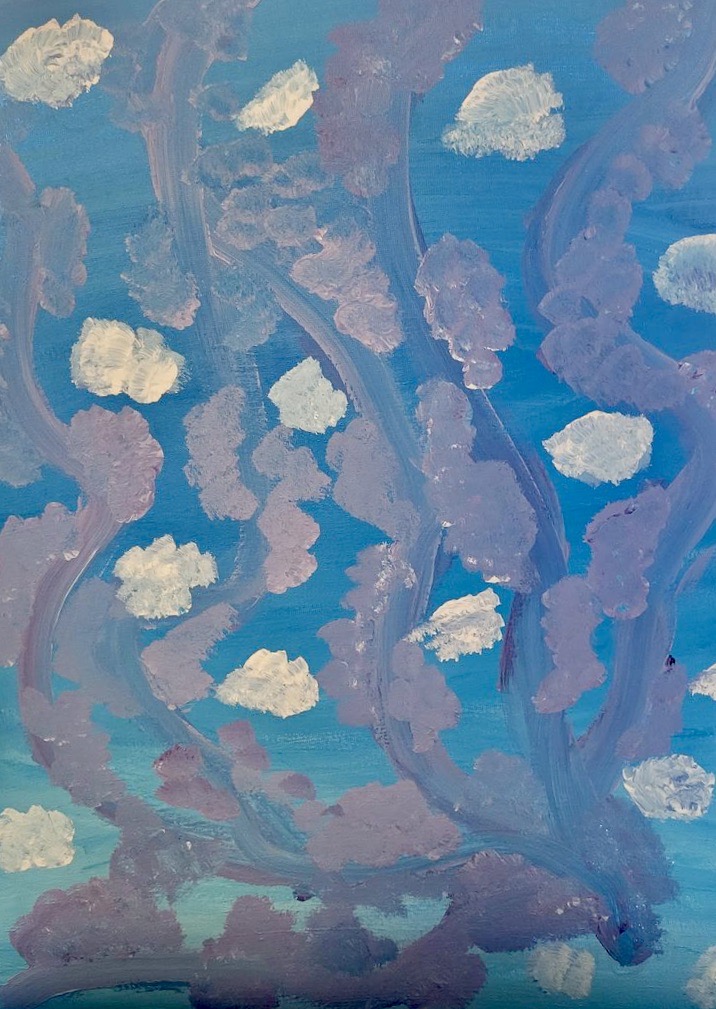 What inspired me to make this art piece was when me and my mum went to Japan and saw blossom trees so I took the mixture of purple and blue to make a beautiful color and it also represents when I had eaten the freshest and most colorful peach. It was tasty and treasureful. I had so and I wanted so much more but it was just samples and I want people to think that it’s ugly but it takes time so in a bad way it’s a piece of art.