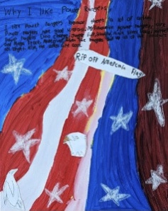 This painting is a fake American flag. I painted this because it is easy to paint. This is important to me because i like the colour red and this means why I like power rangers.
