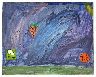 I made this art project to show everybody who looks at my art will understand how much I like to play basketball. I want everybody to understand that basketball can be a good game. I played basketball with my cousin for him to show me how fun basketball can be, because I didn’t like the game basketball, because it was hard for me.