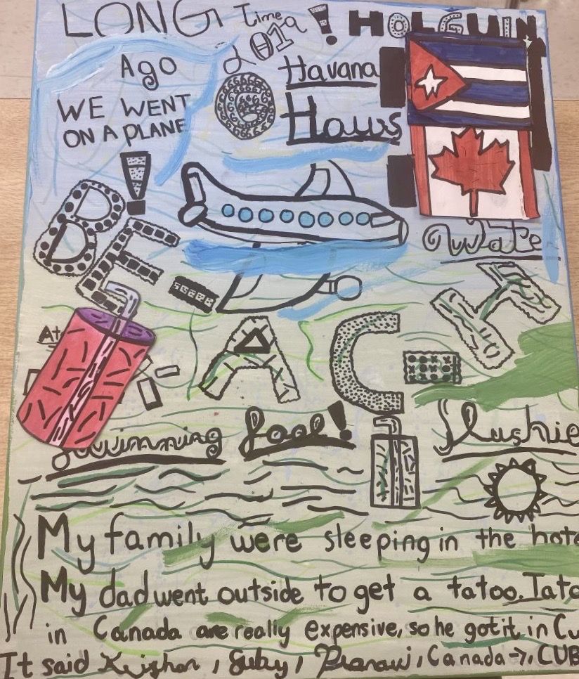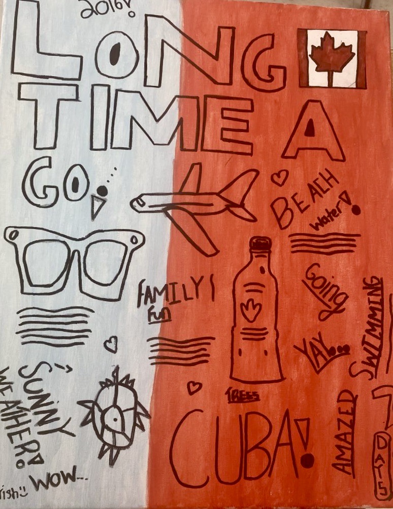 This painting shows my trip to Cuba. What I am trying to show the audience who see this piece if sof them to see what I did in Cuba and how my trip was. It is my favourite place I’ve ever gone to in my life, which is very meaningful.