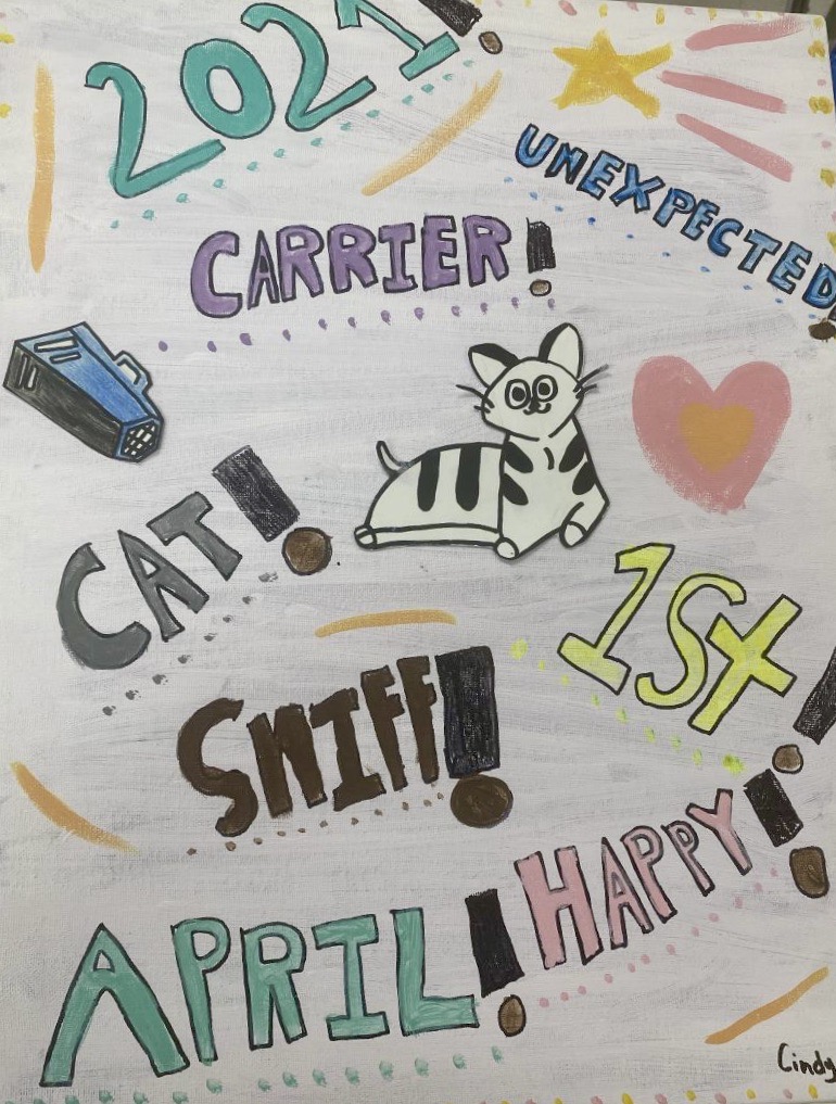 Artwork shows my love for my cat (Marshmallow) and the day I got her.