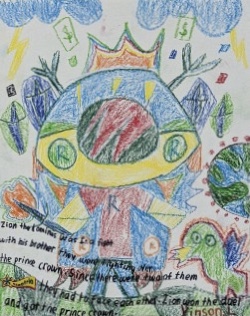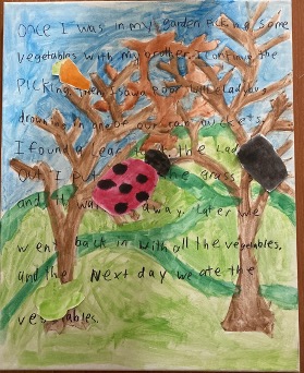My art piece had a message about the vegetables I picked in my garden. The story is about my favourite vegetable picking with my brother in my garden. My intention for the viewer was that they would see how you can save animals like the ladybug from drowning. I also painted it because it was about me saving a ladybug from drowning in a bucket of water. My art piece also had a message that you can be a lifesaver of animals and other creatures that live with us. I think it was very cool.
