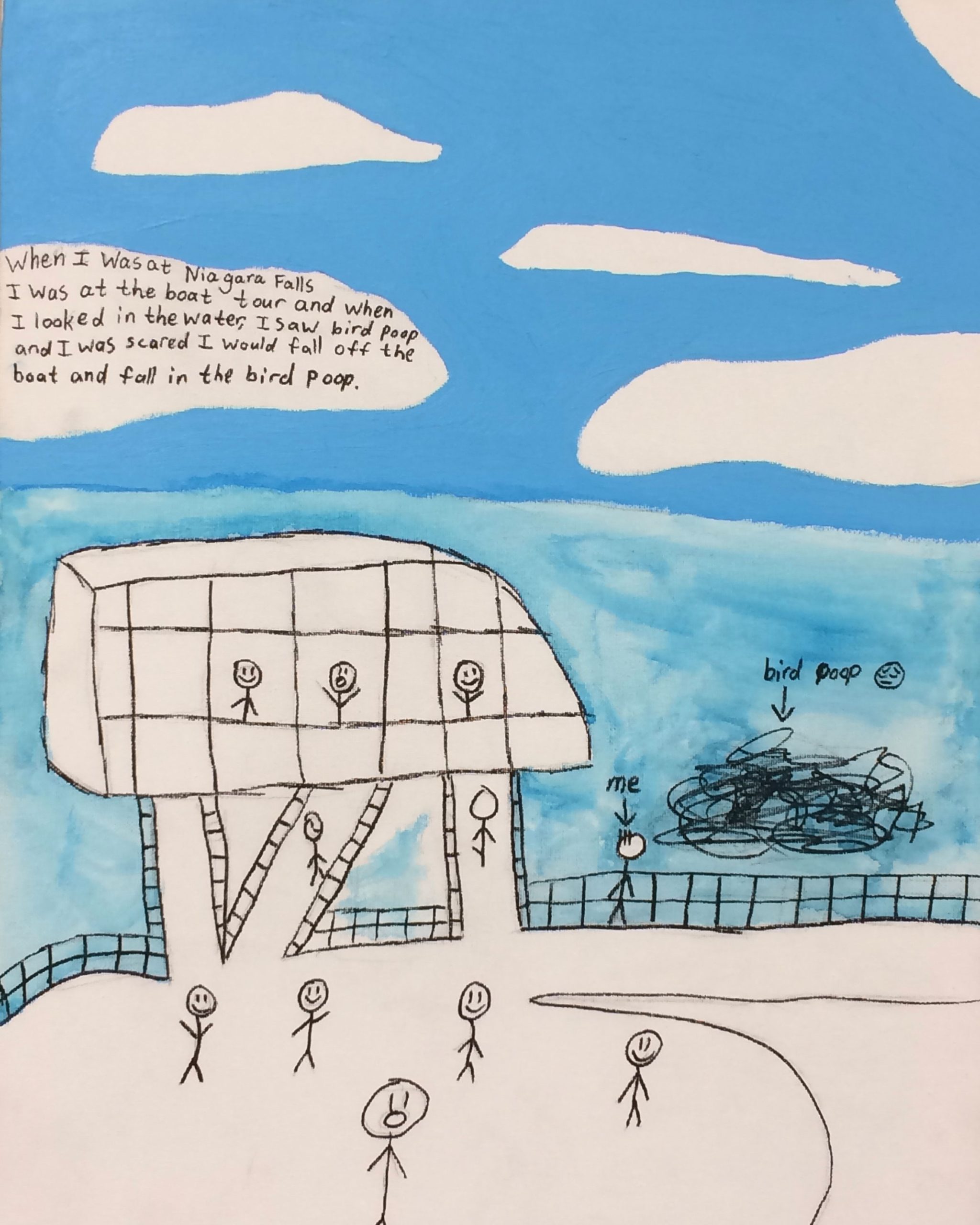 My artwork is about my trip to Niagara Falls. I want people to feel happy and feel good and maybe just remind themselves if they go on the boat tour, to avoid the bird poop.