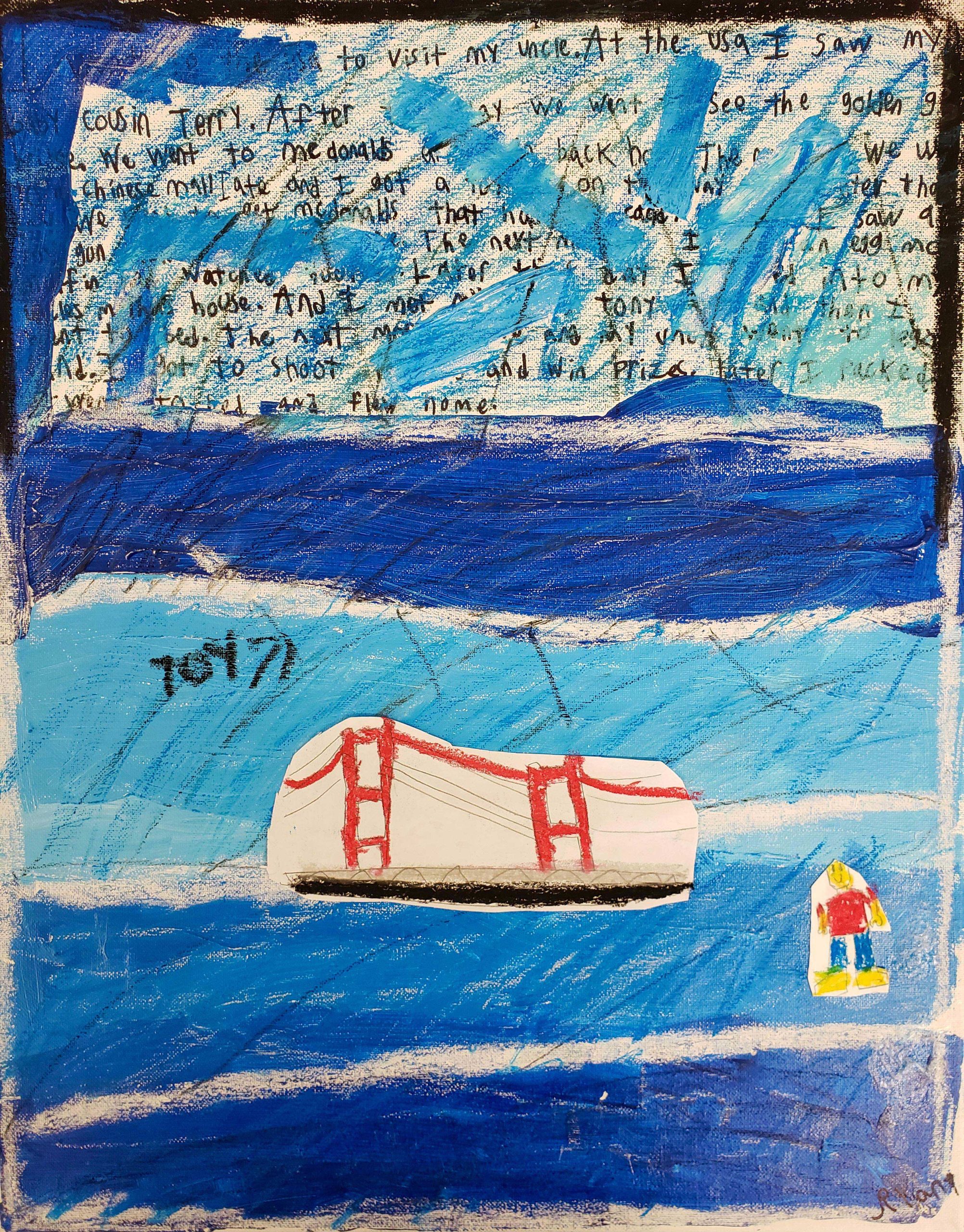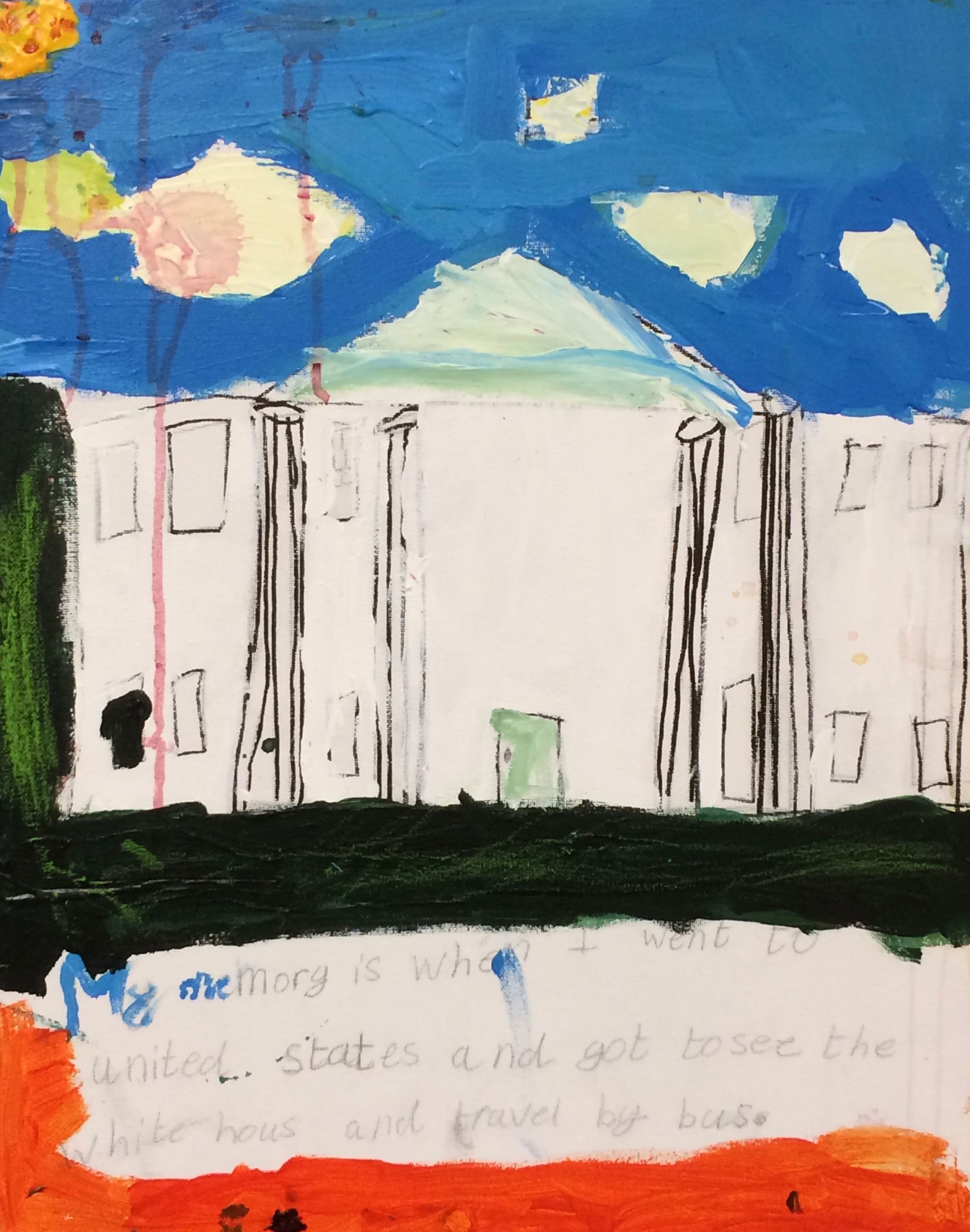 My painting is about when I went to America with my mom, dad and my aunt and uncle. I want people who see my painting to appreciate how amazing America is.