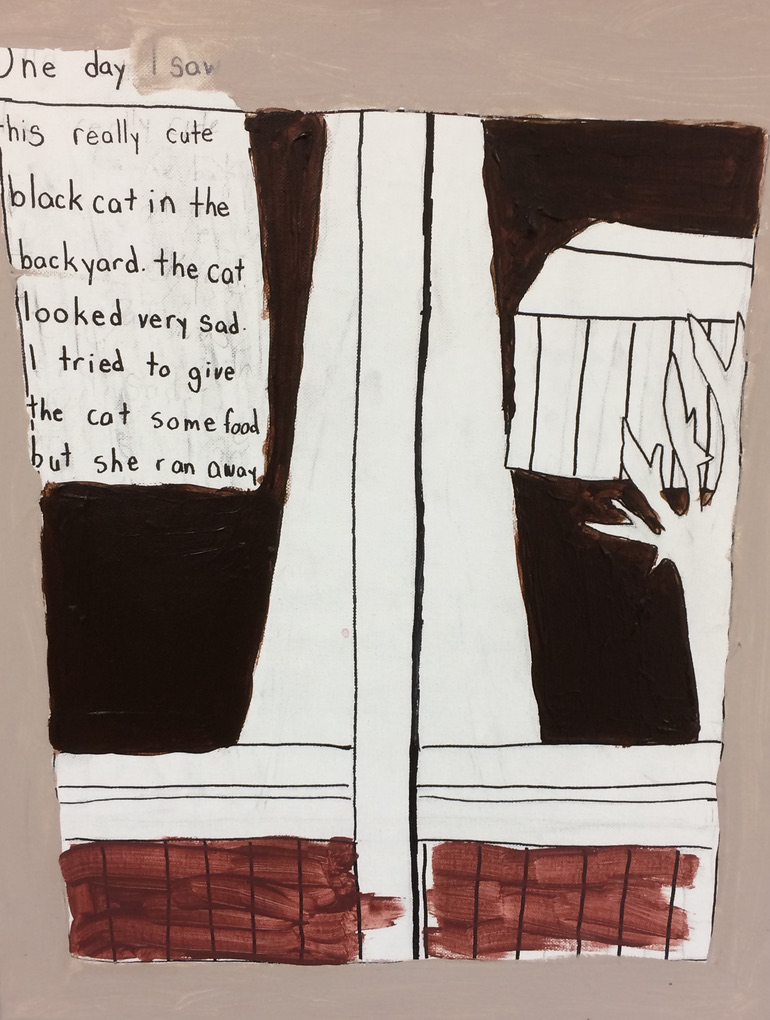 My art is about a cat that I found in my backyard. I want people who see my artwork to feel kinda sad and maybe kinda happy because I got to see the cat again.