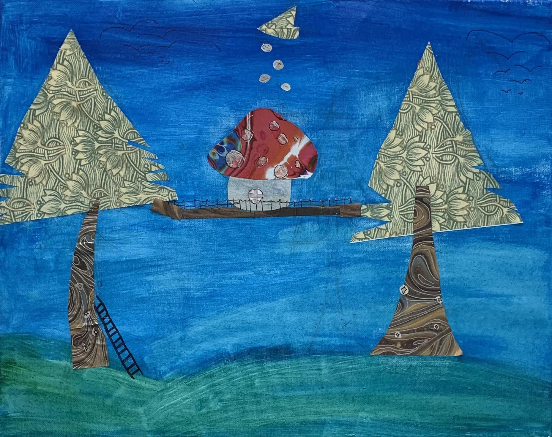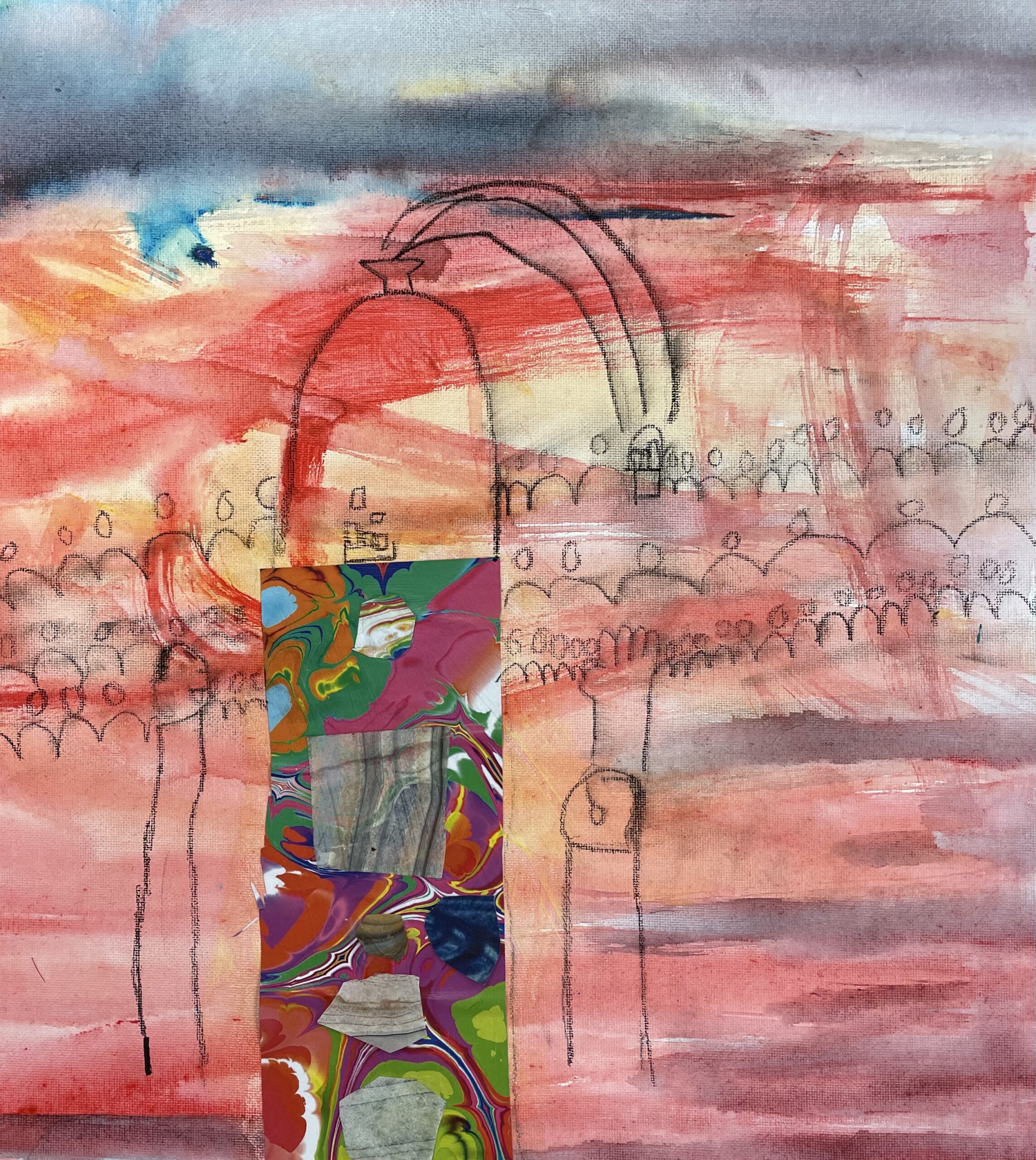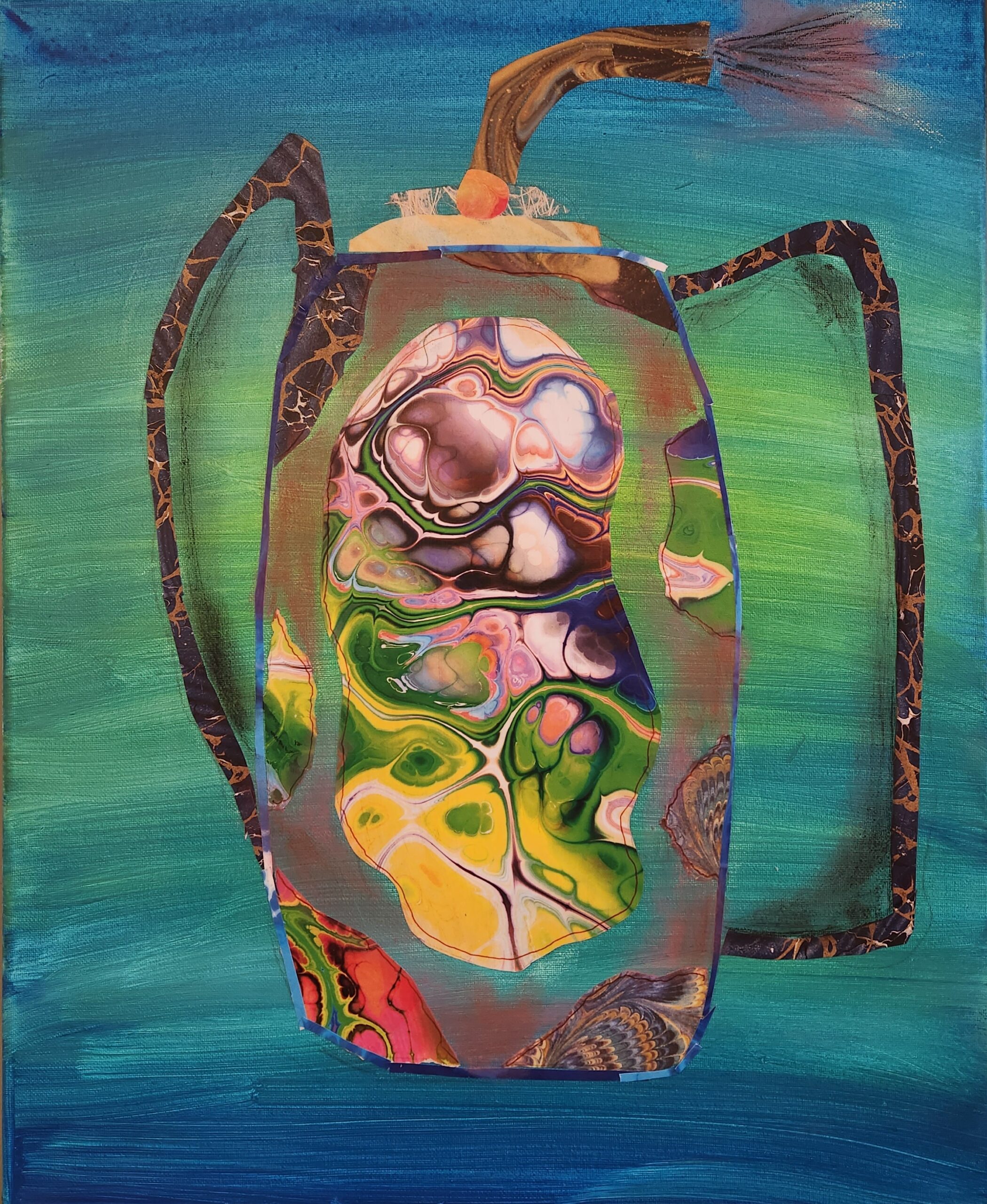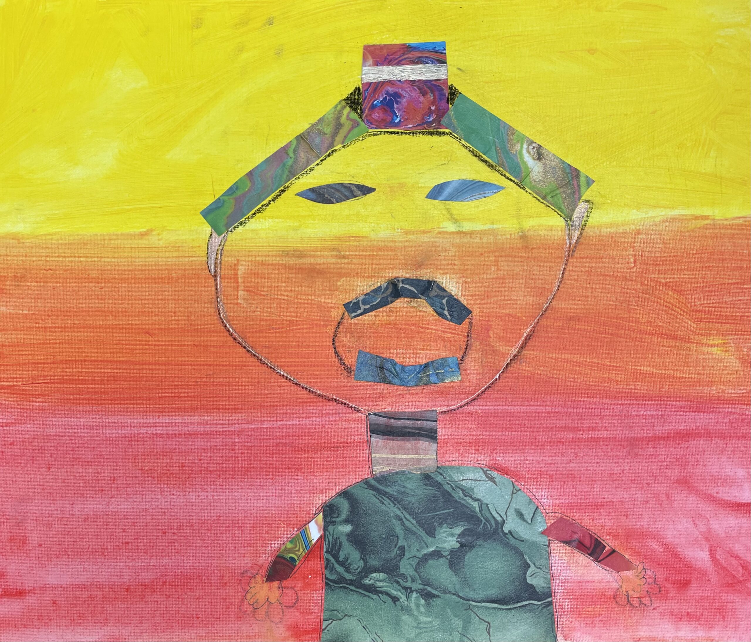 This painting is called “The Space Vase” created on February 14, 2023. The problem shown in my painting is overpopulation. To fix this problem, we created these “spaceships” that travel at the speed of light from one planet to another. My device carries humans from one planet to another with efficiency. It does not run on gas. Instead it runs on wind, kind of like a kite that can travel large distances without a rope