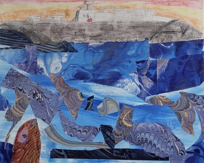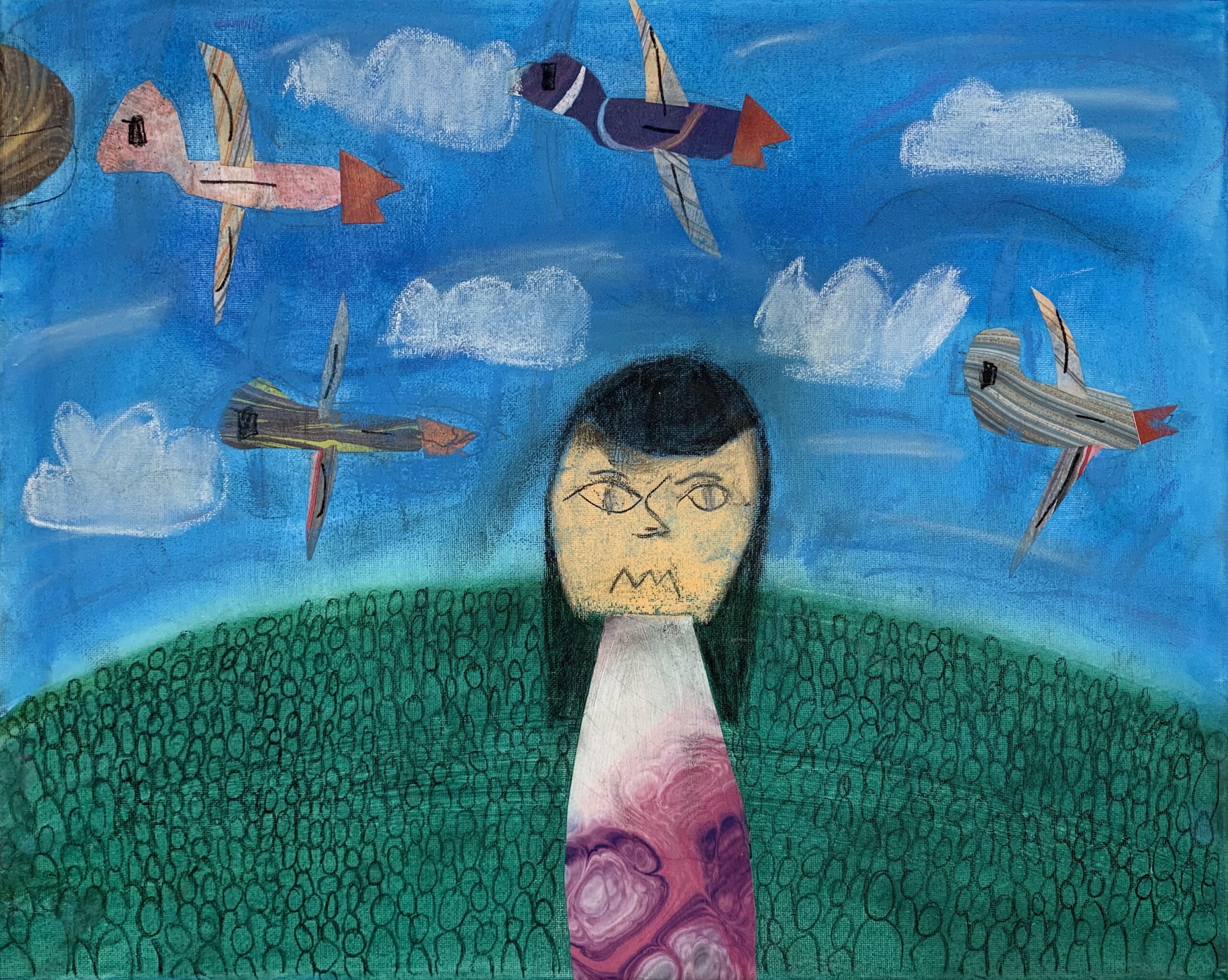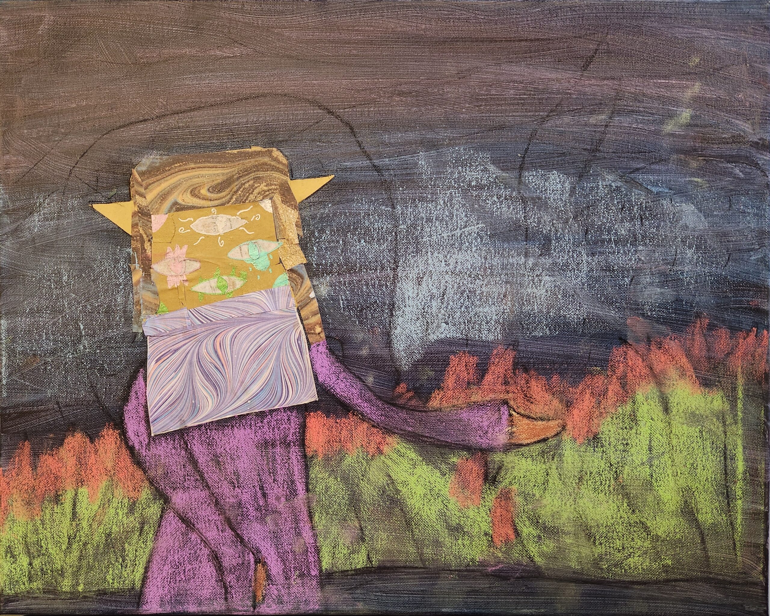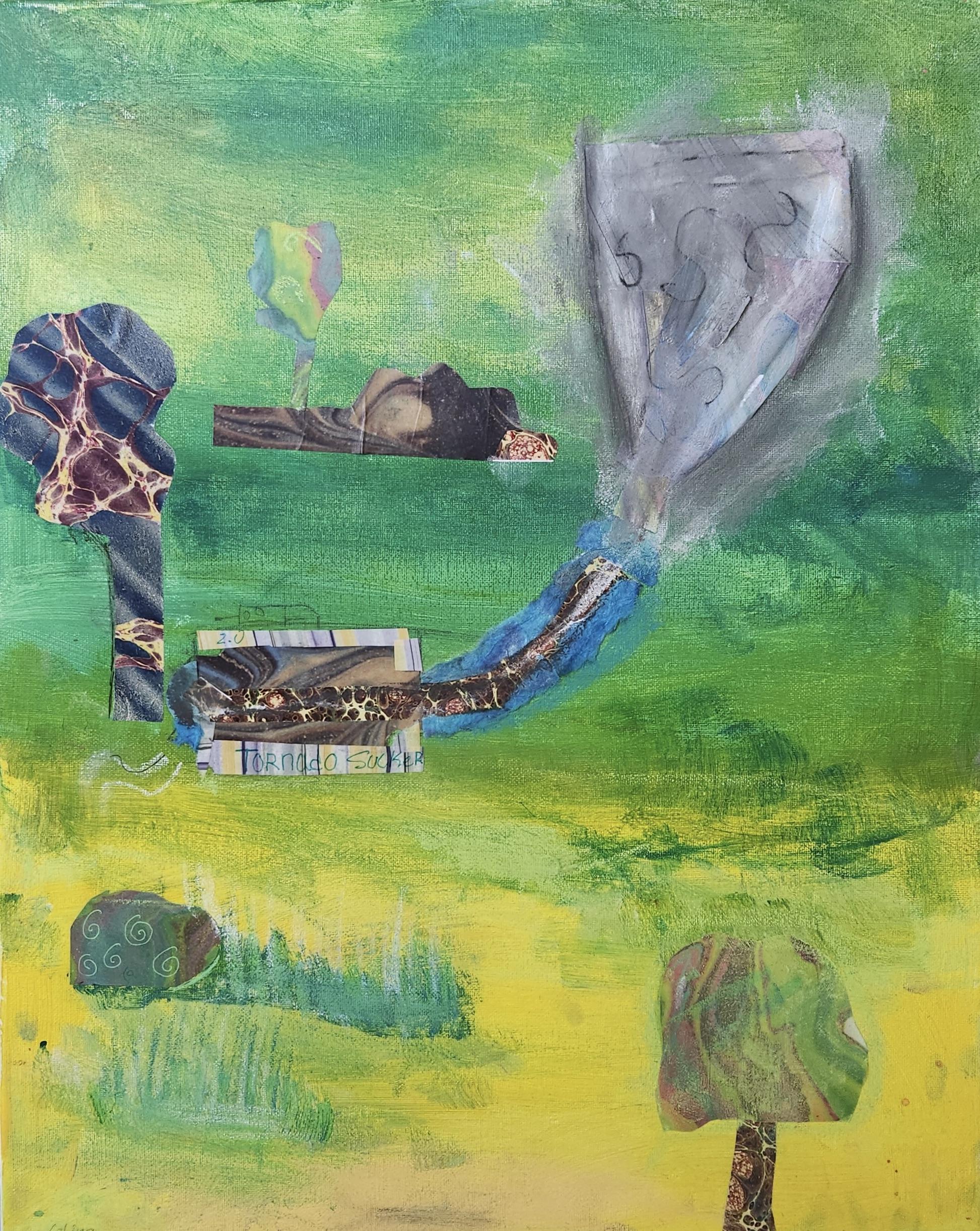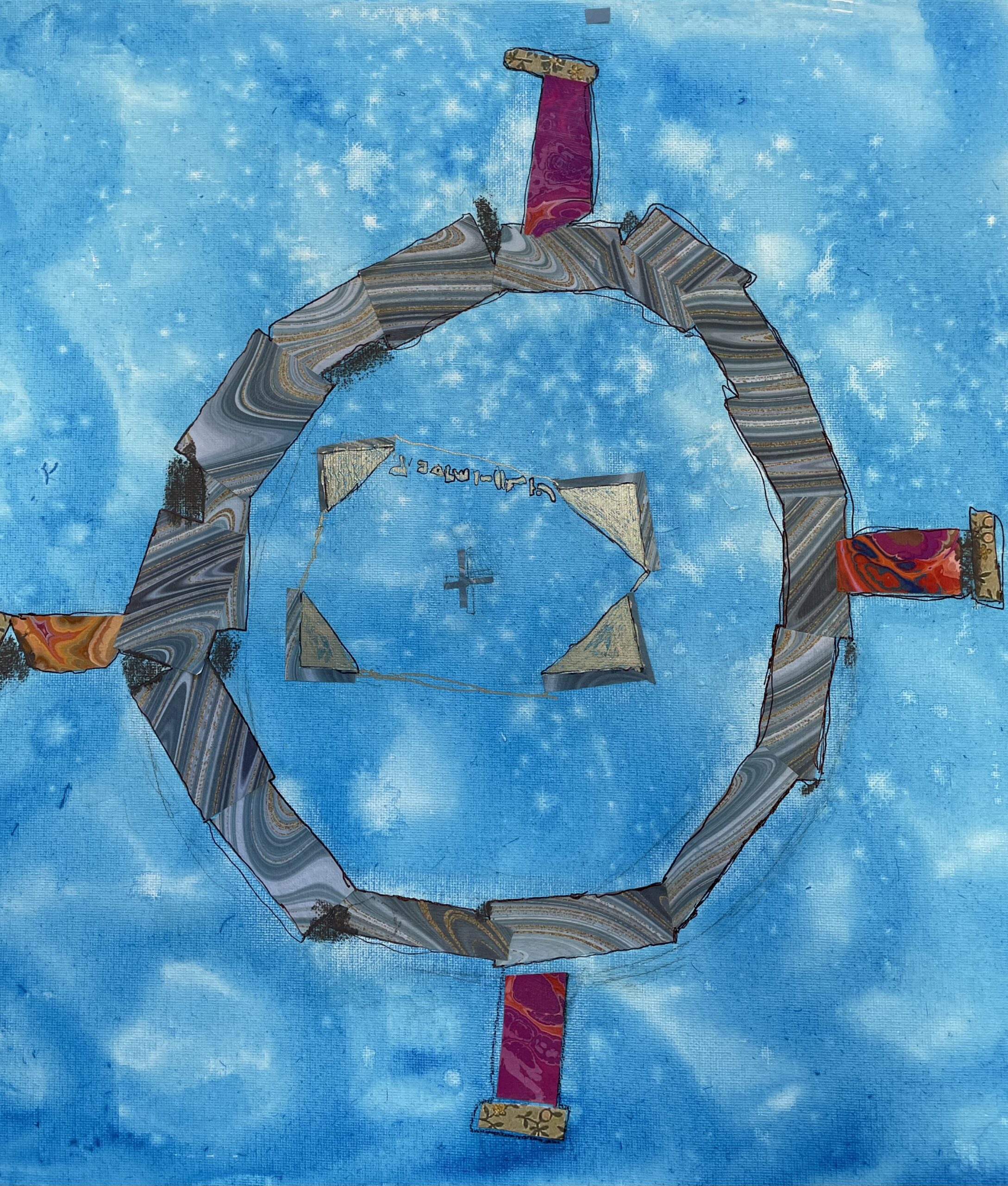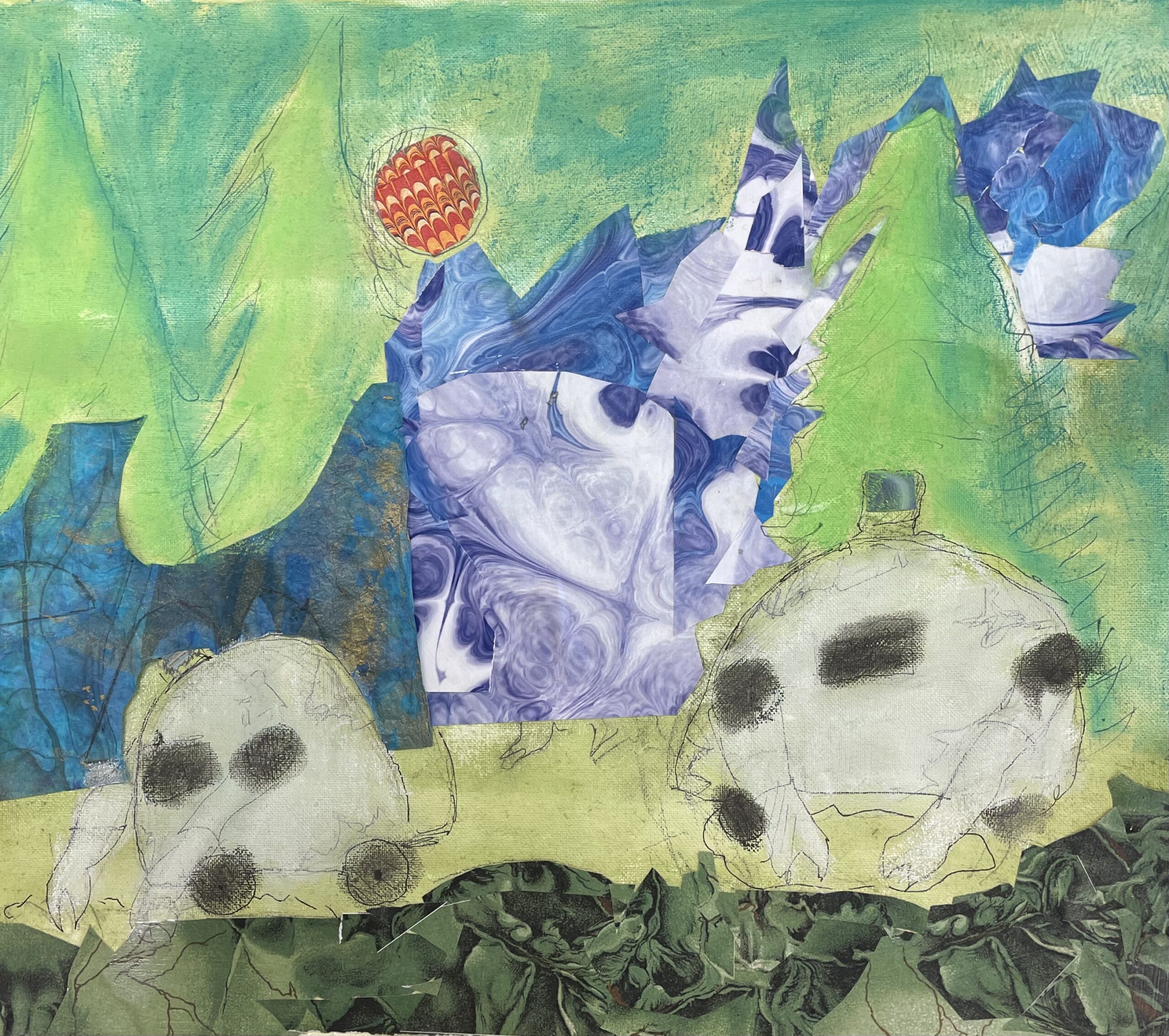 This painting is called “The Space Vase” created on February 14, 2023. The problem shown in my painting is overpopulation. To fix this problem, we created these “spaceships” that travel at the speed of light from one planet to another. My device carries humans from one planet to another with efficiency. It does not run on gas. Instead it runs on wind, kind of like a kite that can travel large distances without a rope