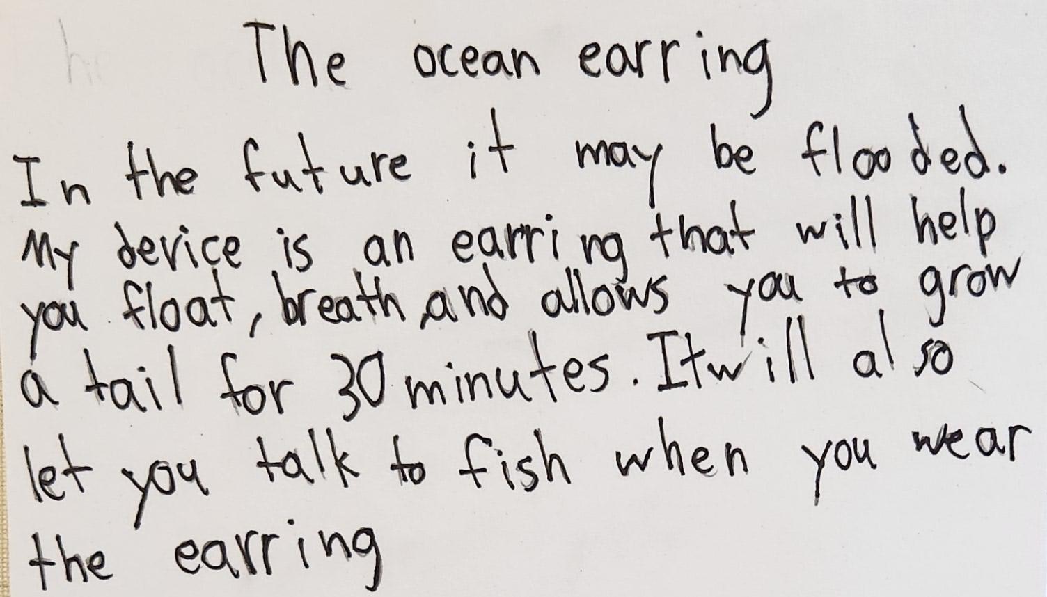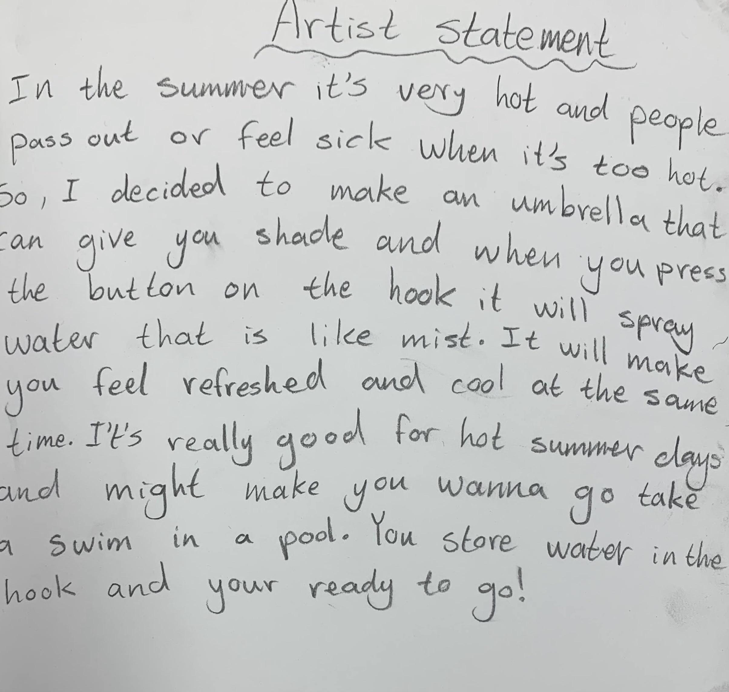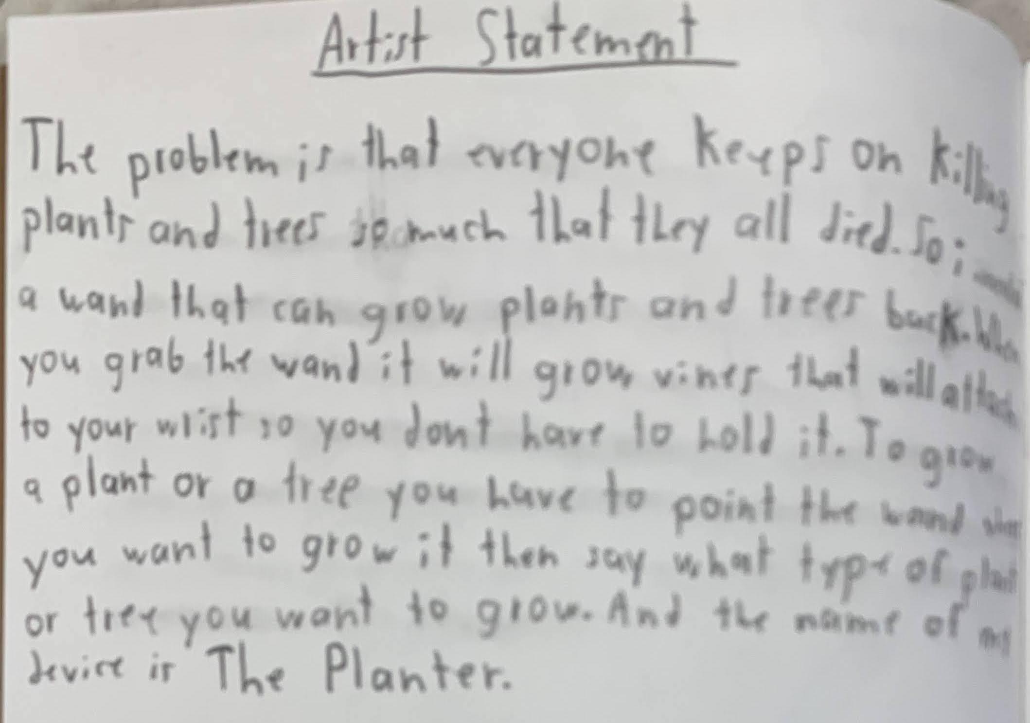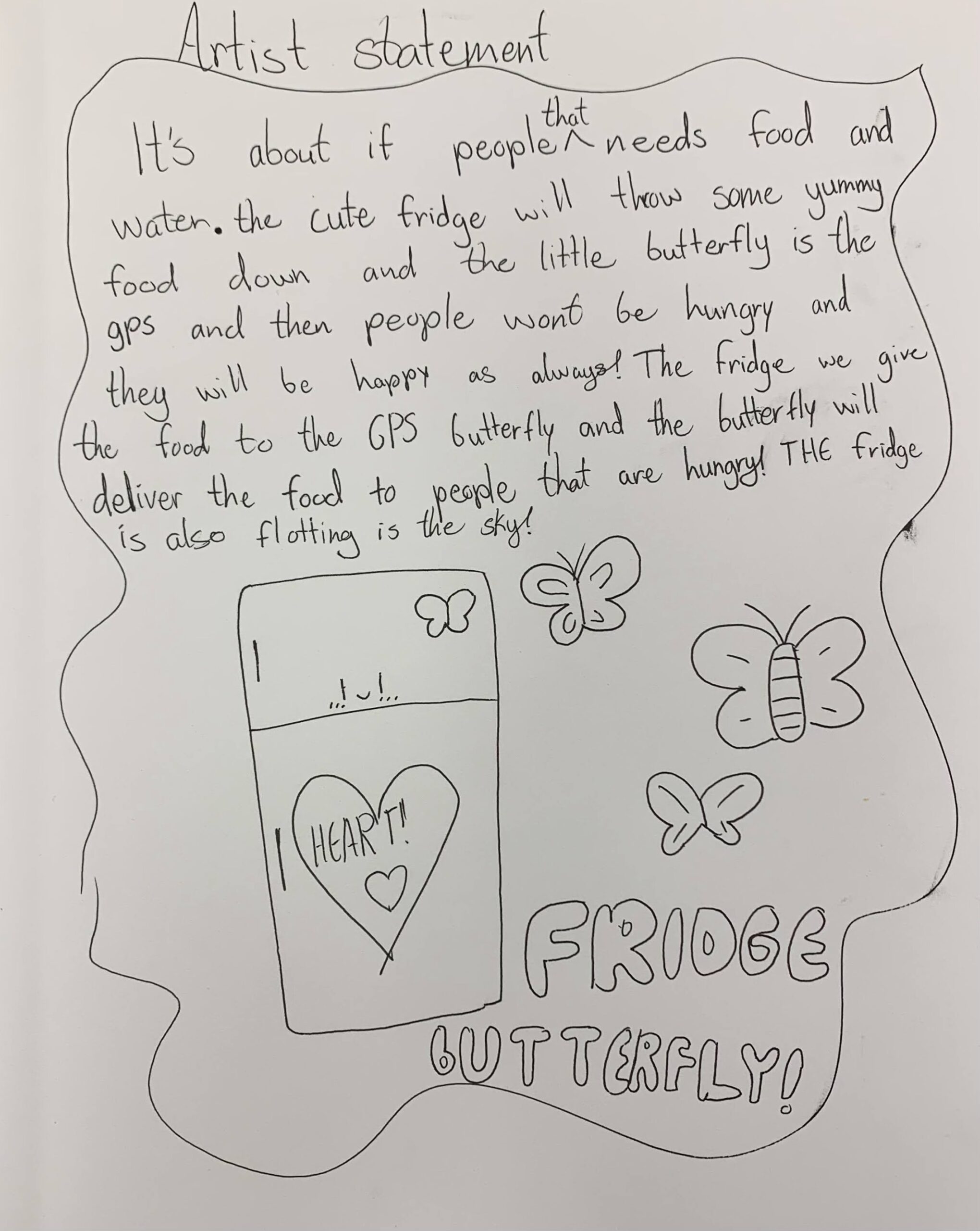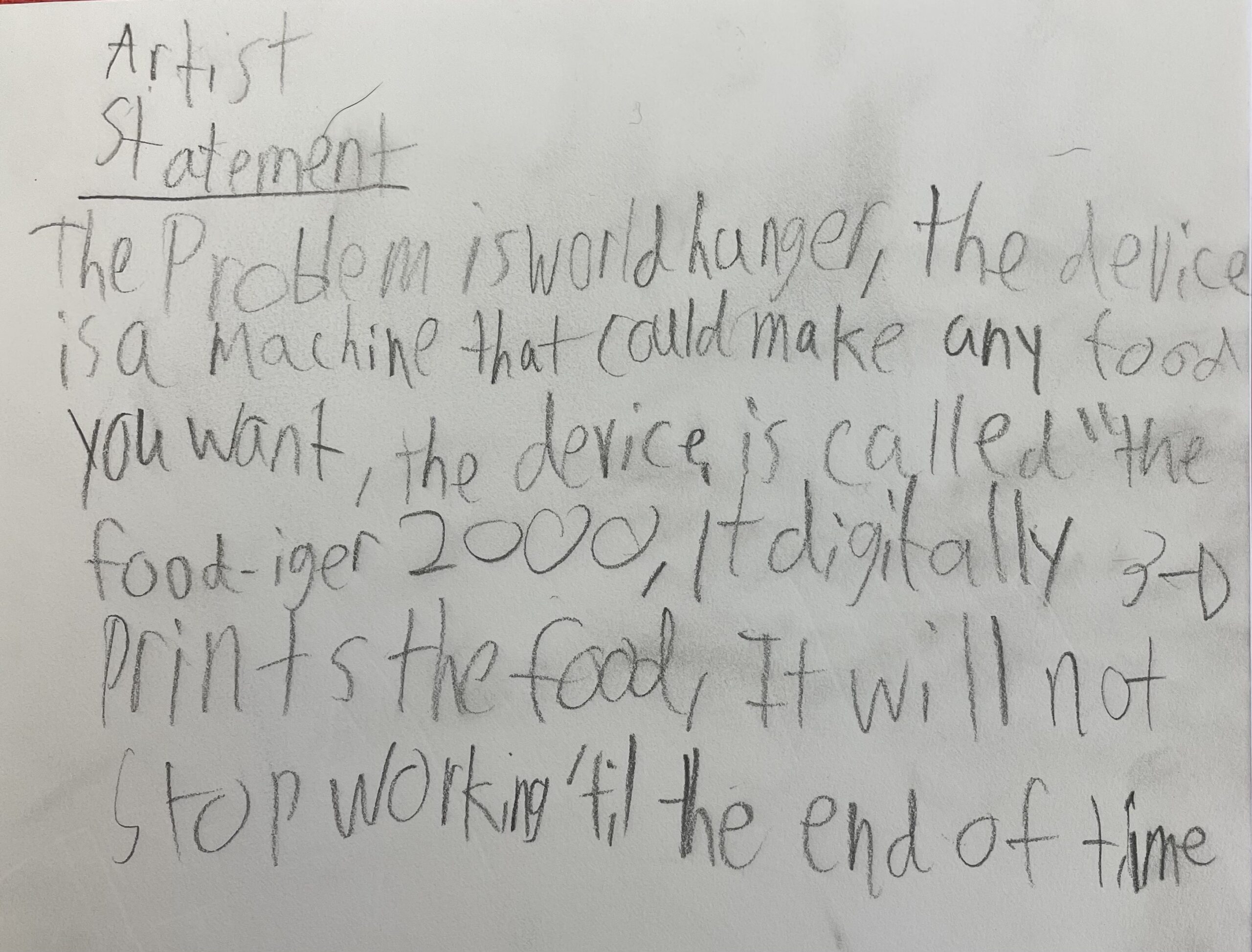 Artwork created by participants during the program can be seen below. The project encouraged students to look closely at the artwork of contemporary artist Rajni Perera and reflect on her visions of imagined futures. Students were asked to create a device that could help humanity thrive in a future or place facing environmental challenges. Some students have included an artist’s statement to accompany their work, guiding the viewer to a greater understanding of the process behind their creation.
