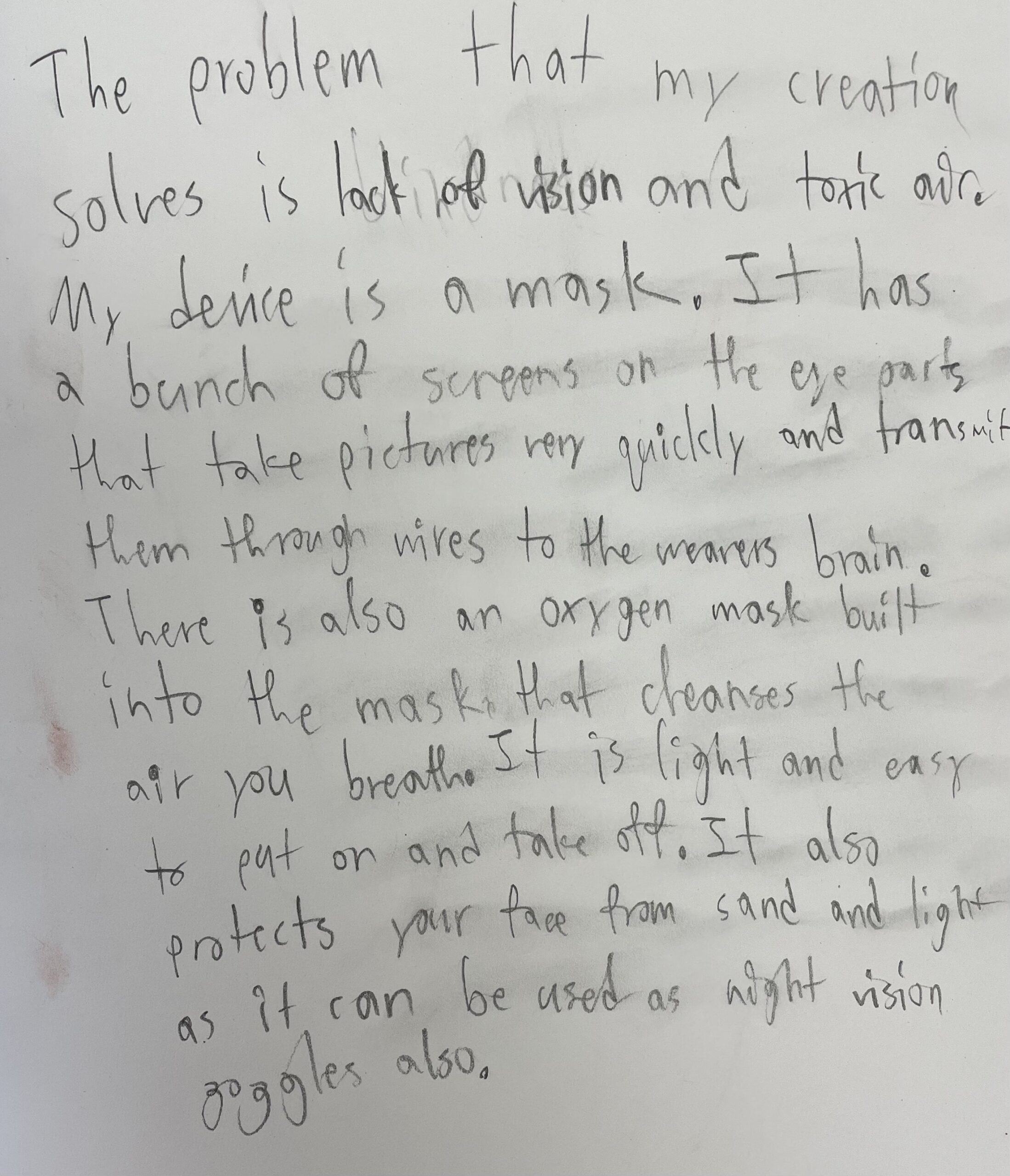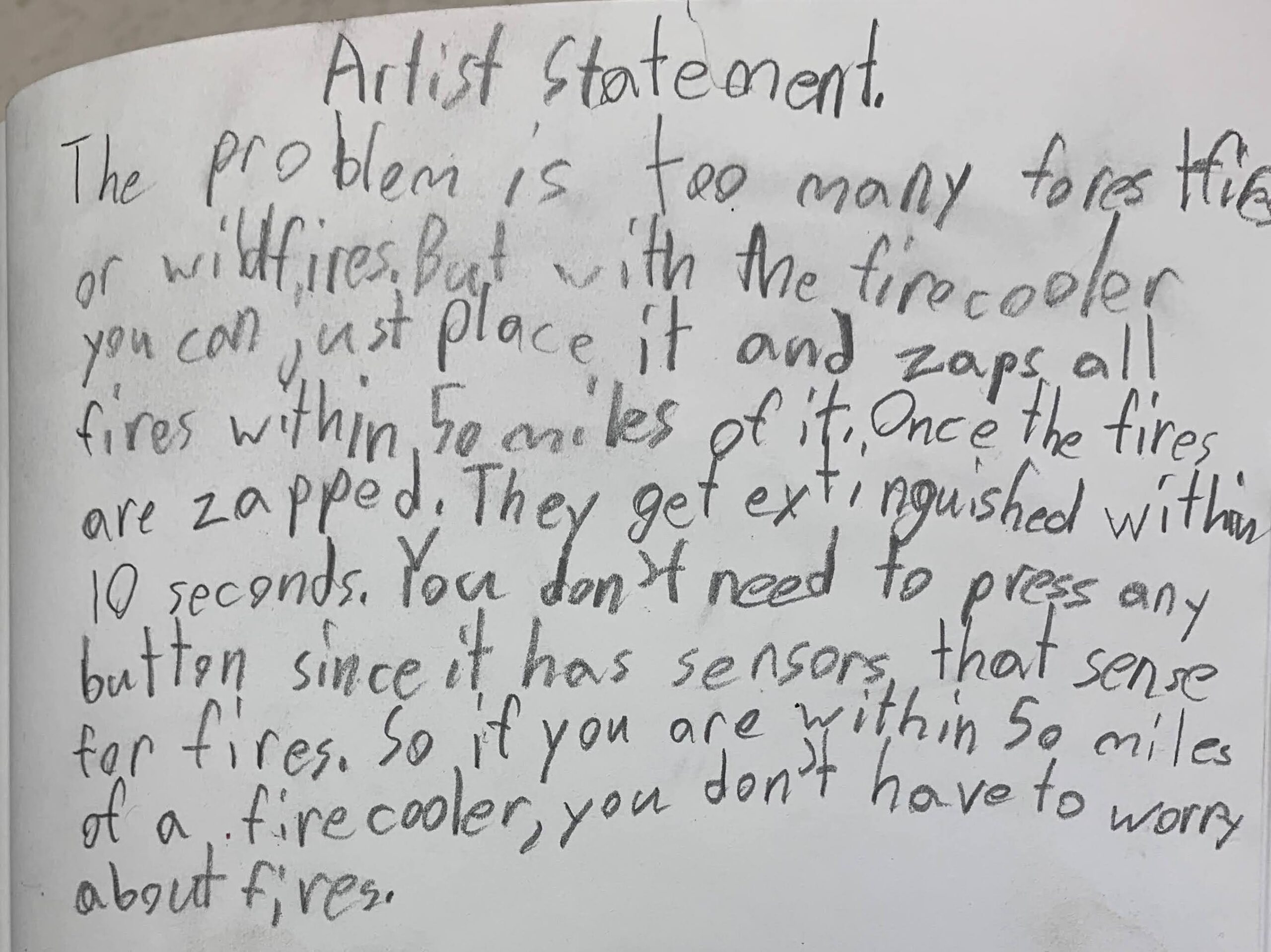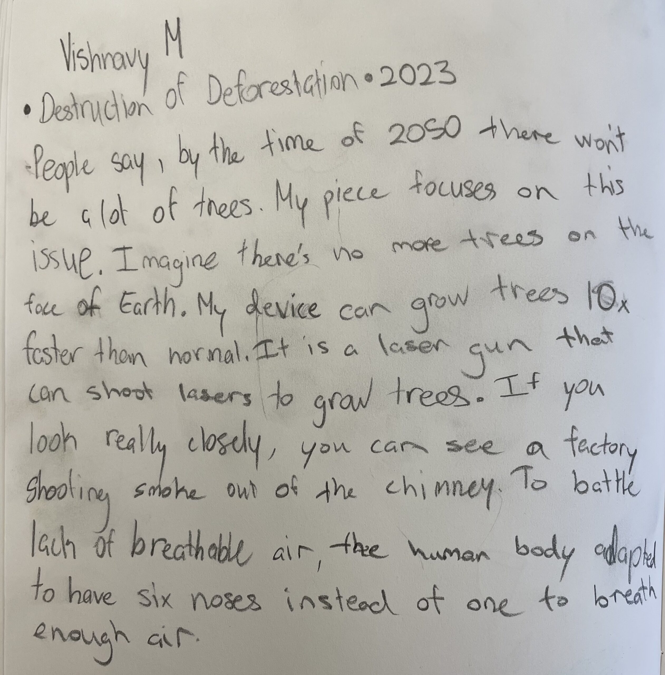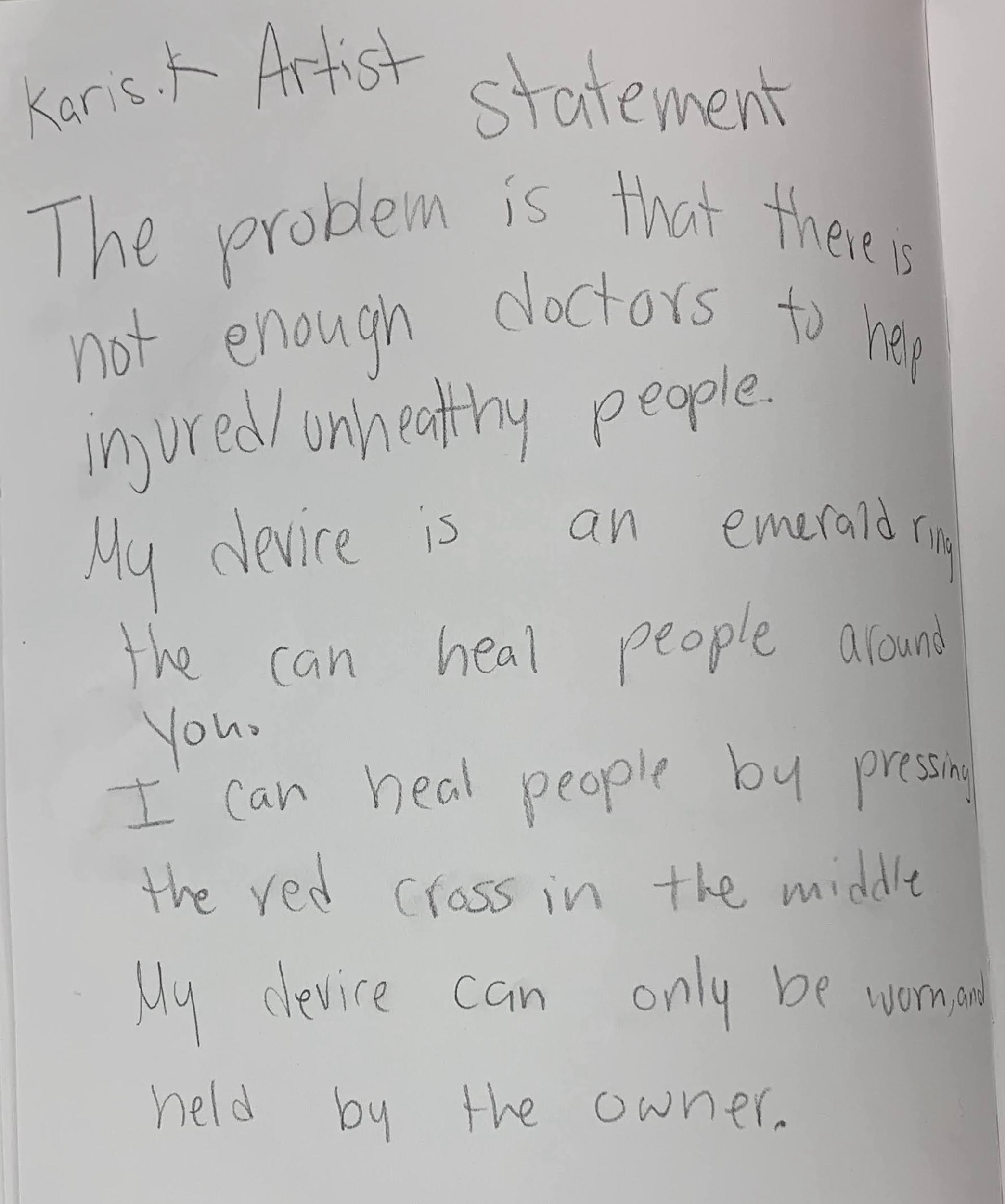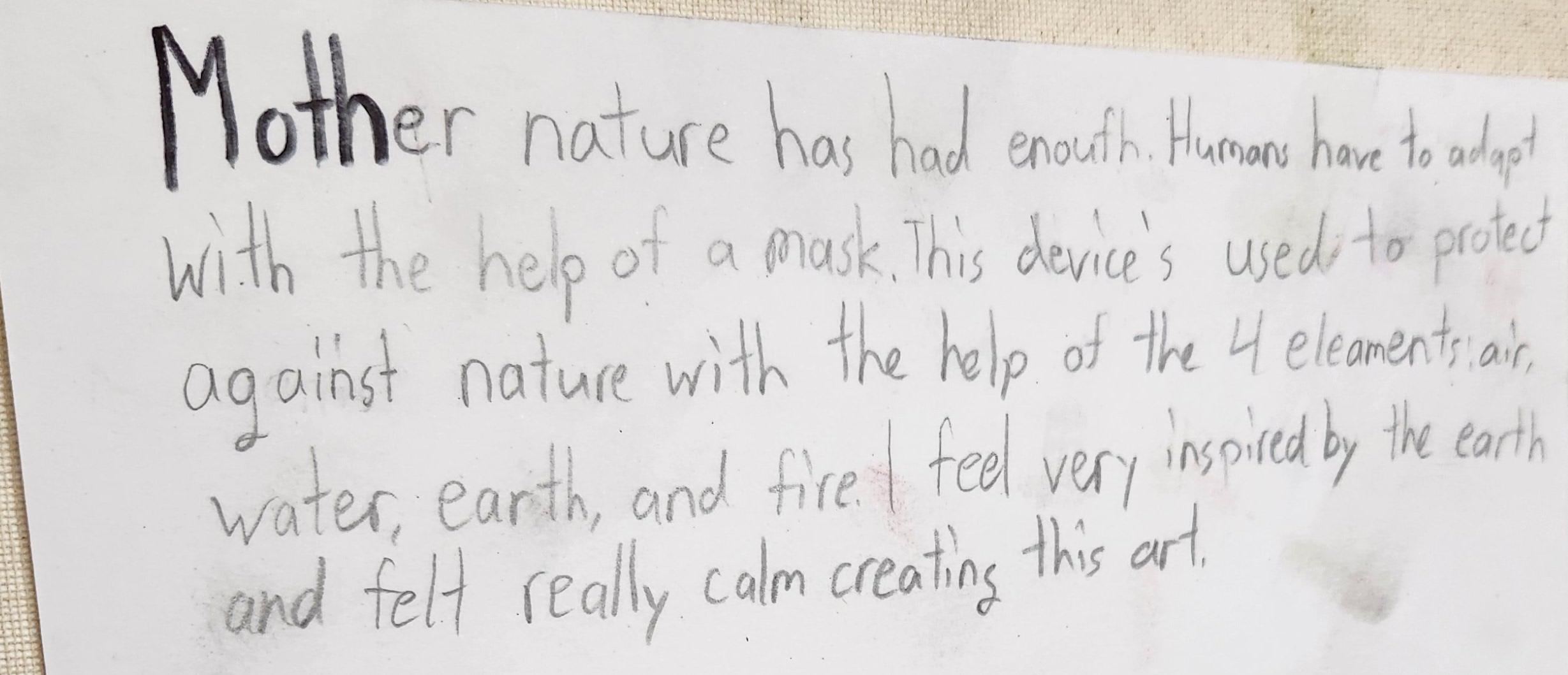 Artwork created by participants during the program can be seen below. The project encouraged students to look closely at the artwork of contemporary artist Rajni Perera and reflect on her visions of imagined futures. Students were asked to create a device that could help humanity thrive in a future or place facing environmental challenges. Some students have included an artist’s statement to accompany their work, guiding the viewer to a greater understanding of the process behind their creation.