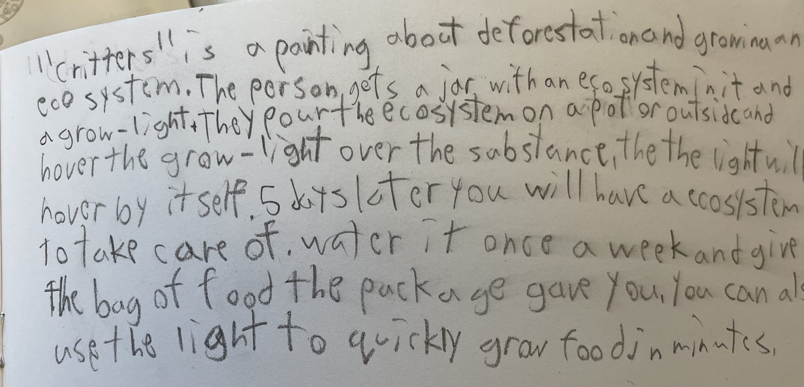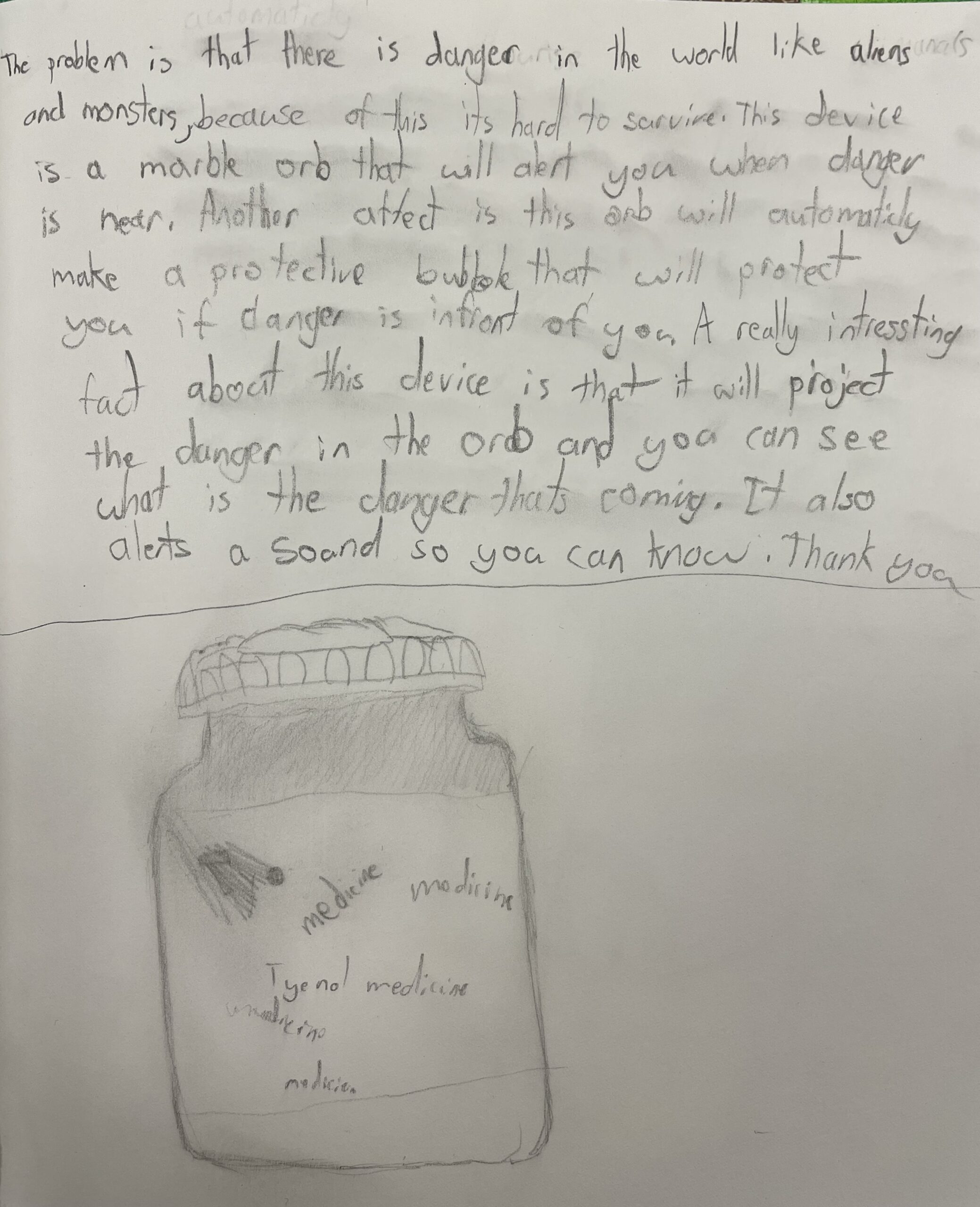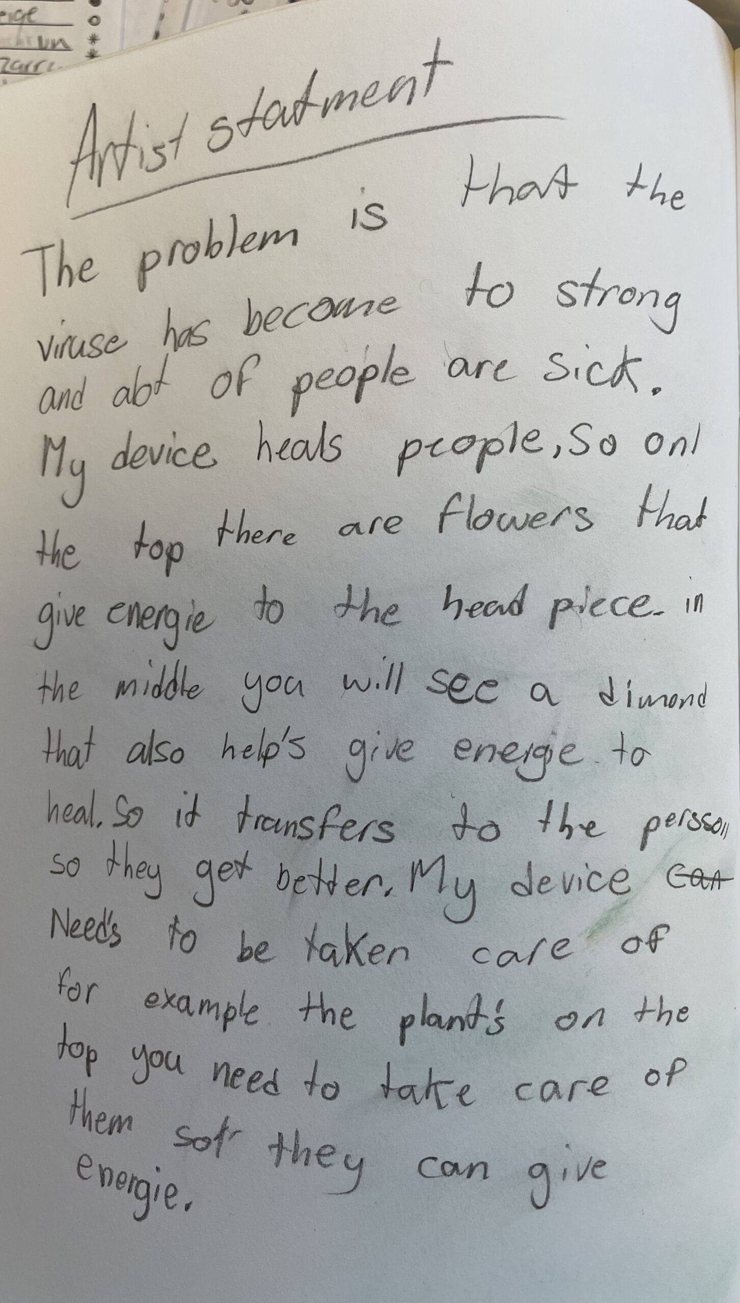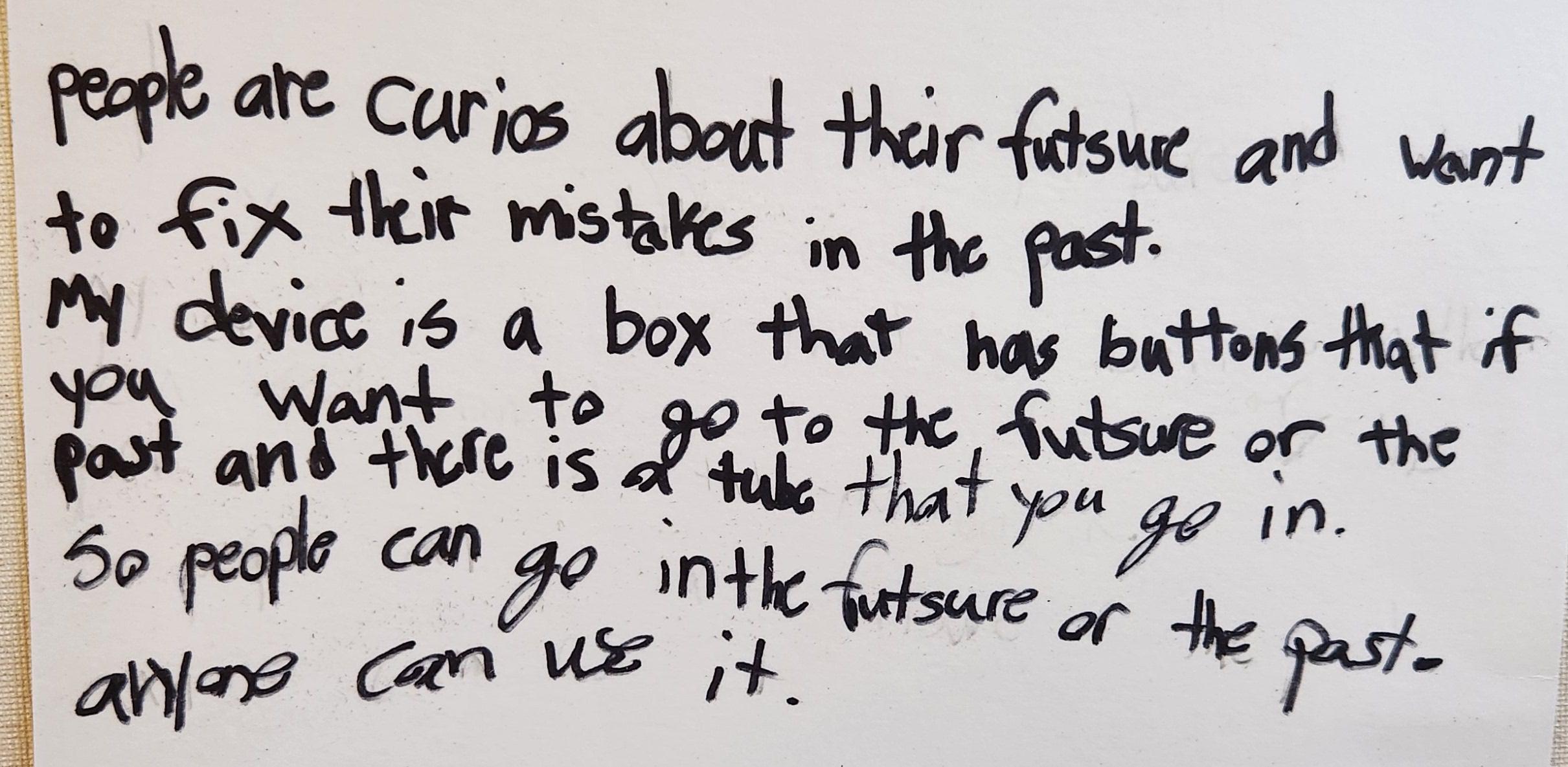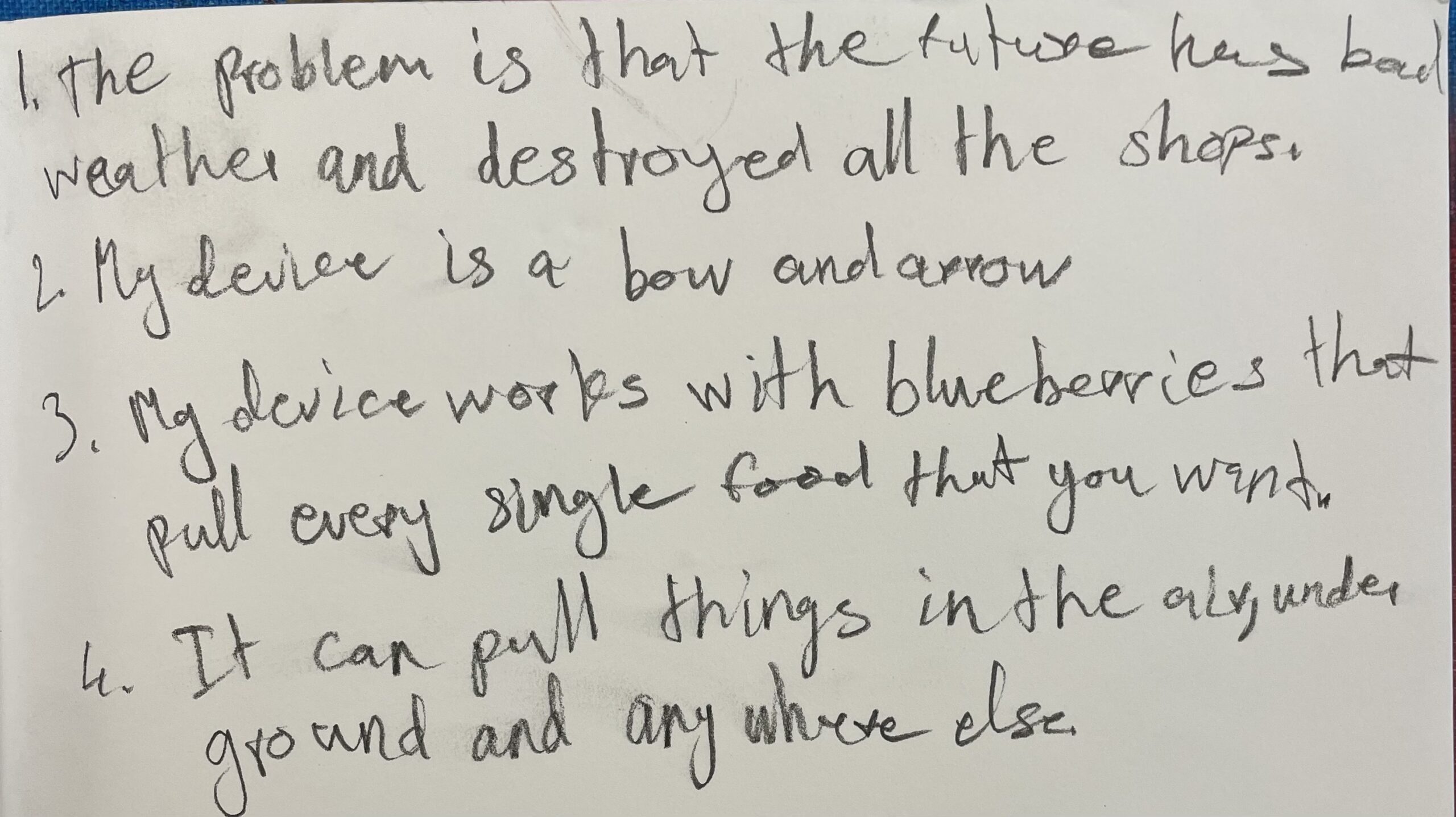 Artwork created by participants during the program can be seen below. The project encouraged students to look closely at the artwork of contemporary artist Rajni Perera and reflect on her visions of imagined futures. Students were asked to create a device that could help humanity thrive in a future or place facing environmental challenges. Some students have included an artist’s statement to accompany their work, guiding the viewer to a greater understanding of the process behind their creation.