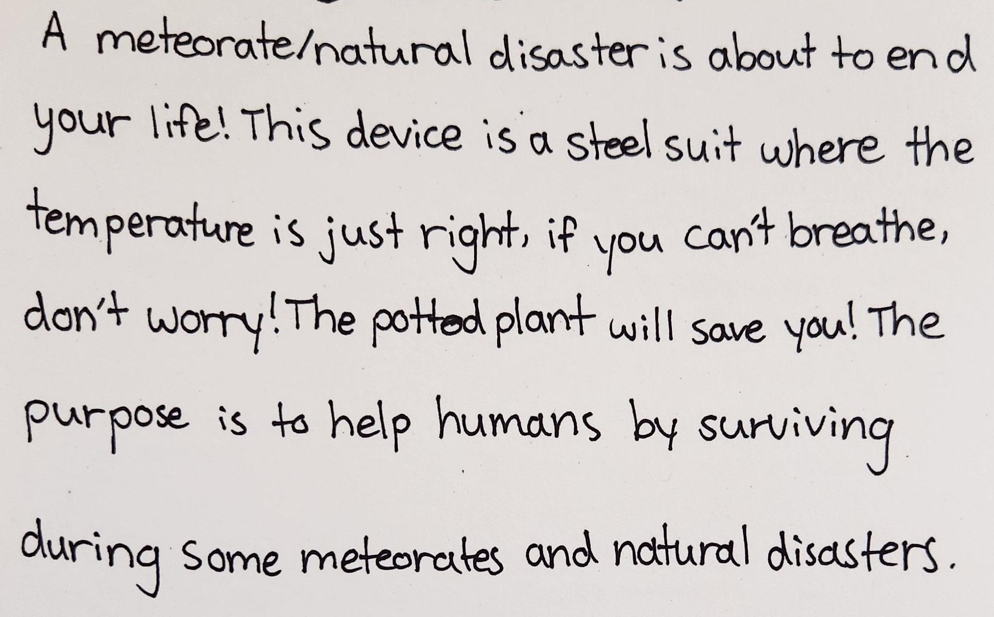 When it comes to heat, the earth is warming up at an alarming rate. Also if there was more volcanic eruptions, one day the earth might be covered in lava. Another problem is things are getting more expensive. My first solution is it can be used by firefighters to battle fires and rescue those who got trapped in volcanic eruptions. Also if things are getting expensive my piece of technology won’t get expensive. Since the earth is warming up you could use it to keep cool in the heat.