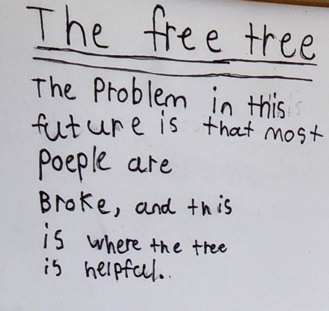 The problem is that some people are colour blind and never saw any colour. It helps colour blind people see colours. But anyone can wear it. It can show people colours and you can see the future and past. You press buttons to see the past, future, and colours.