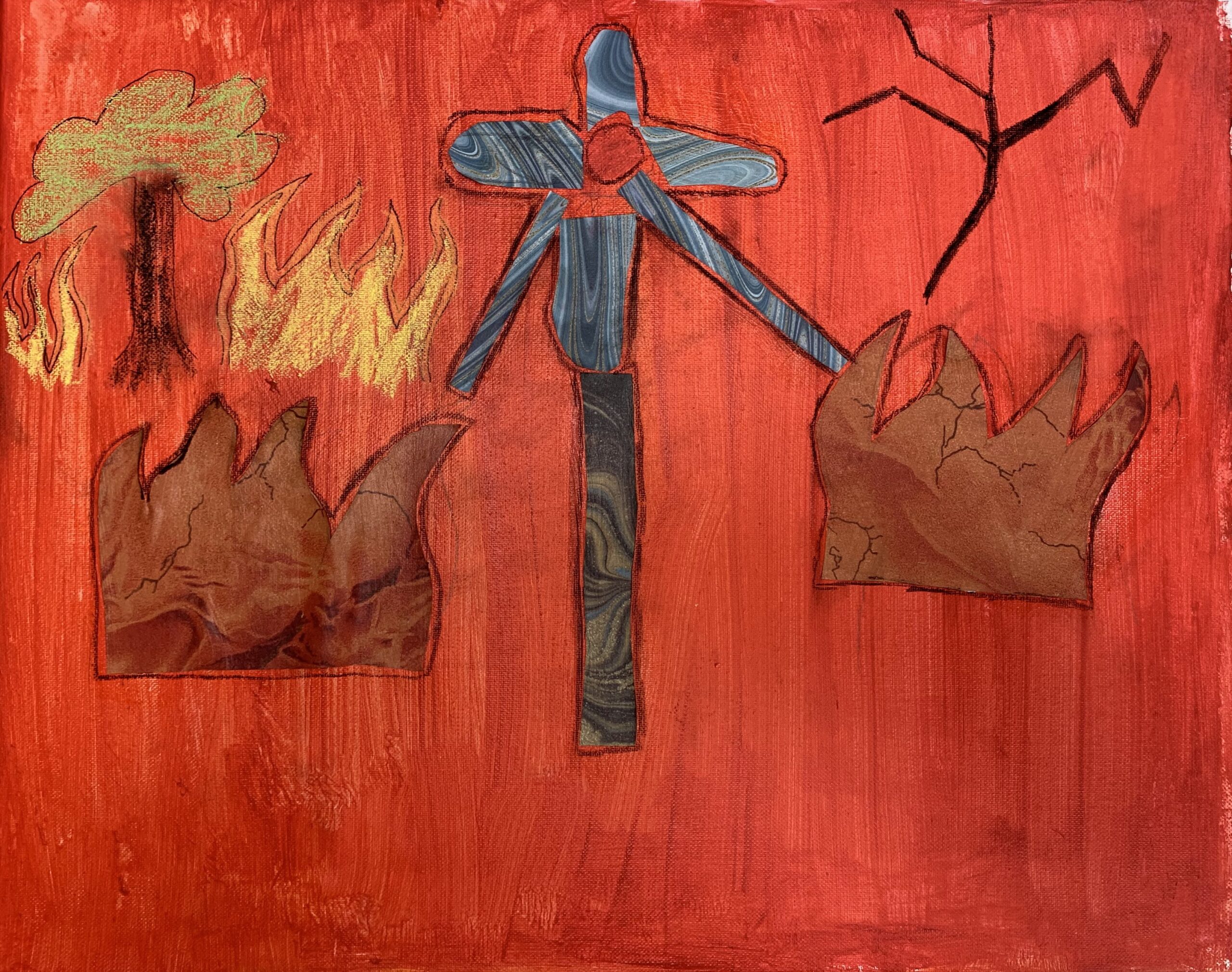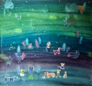 My Art is a shield, if you bang on it, firefly’s will appear and surrounded you to make light and protect you. The problem is that it is dark in the forest and wild creatures lurking around can attack you. You can bang it with anything, your hand or a stick.